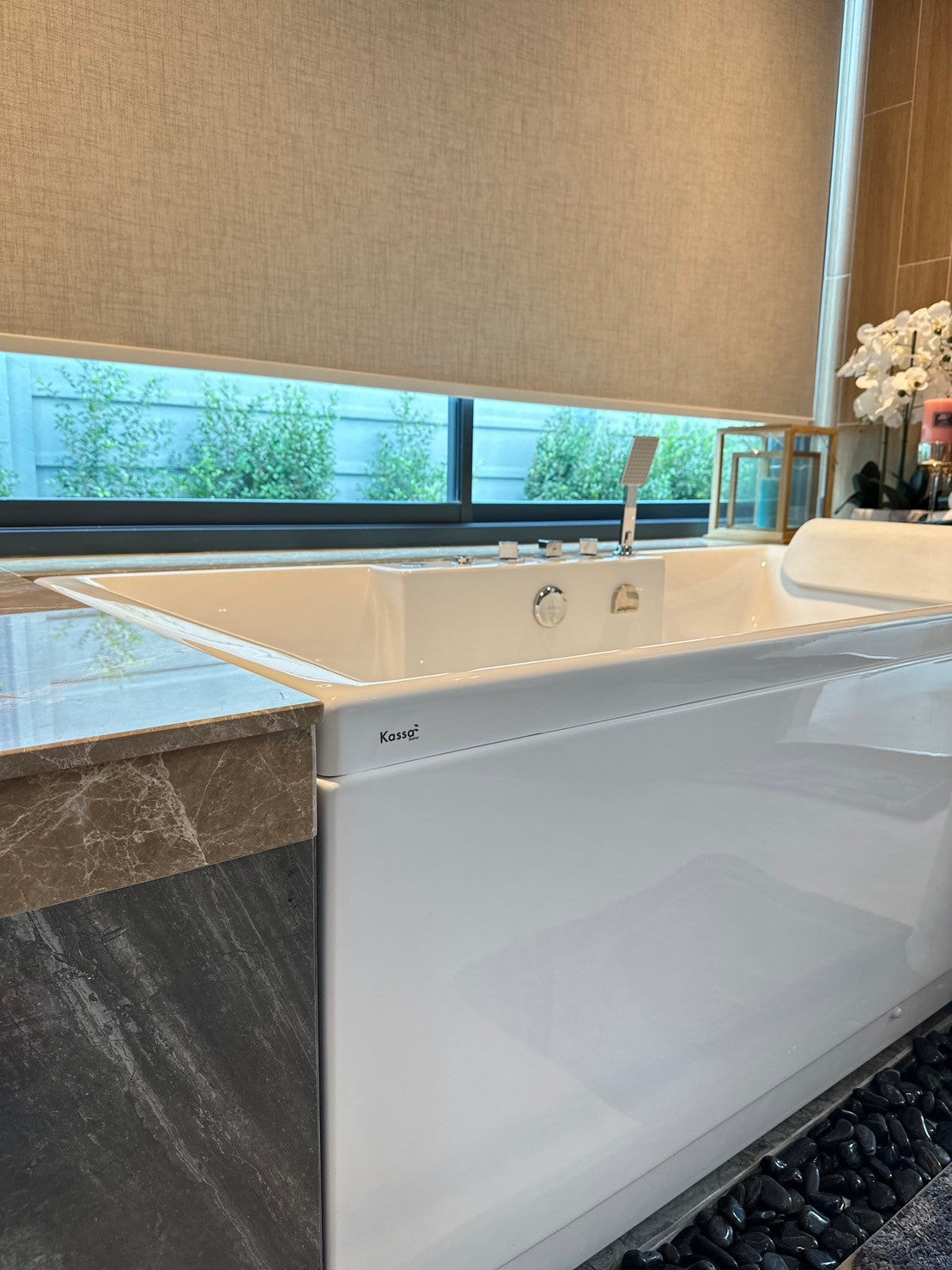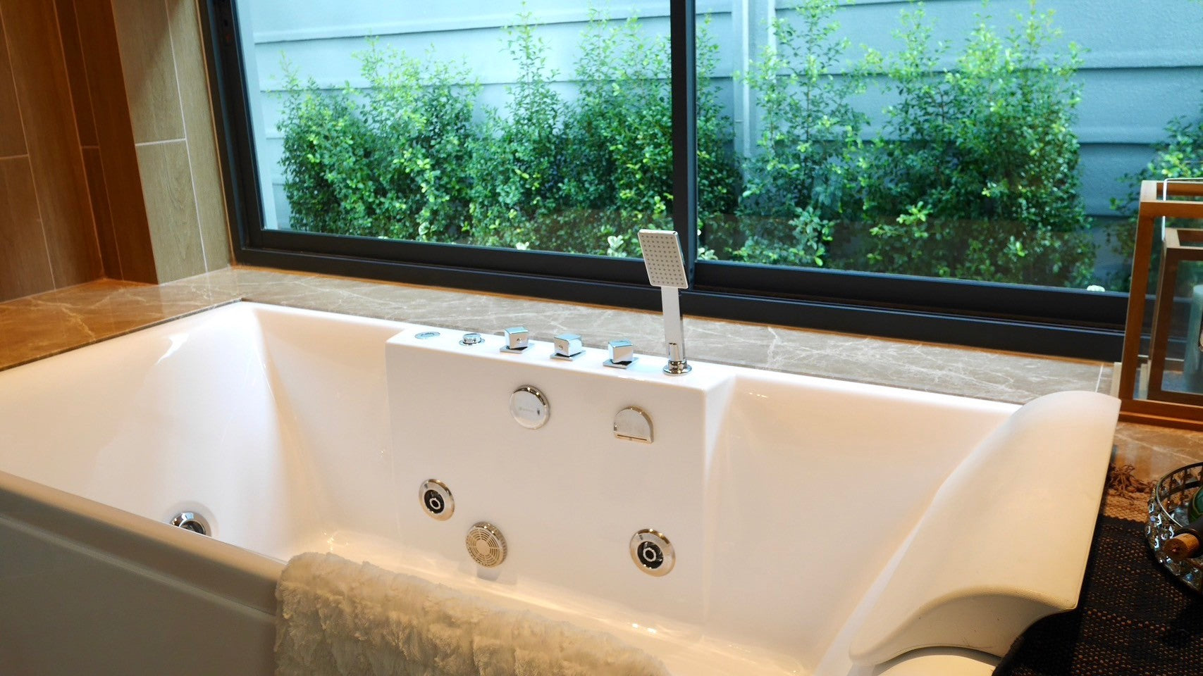 You can enjoy a private swimming pool with a Jacuzzi, air conditioning, and a balcony in every villa.