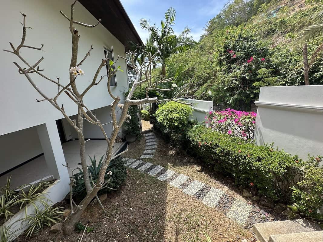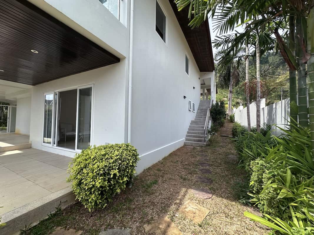 Additionally, the villa features two separate gates—one for the upper level with covered parking and another for the lower level, providing easy access and added security.