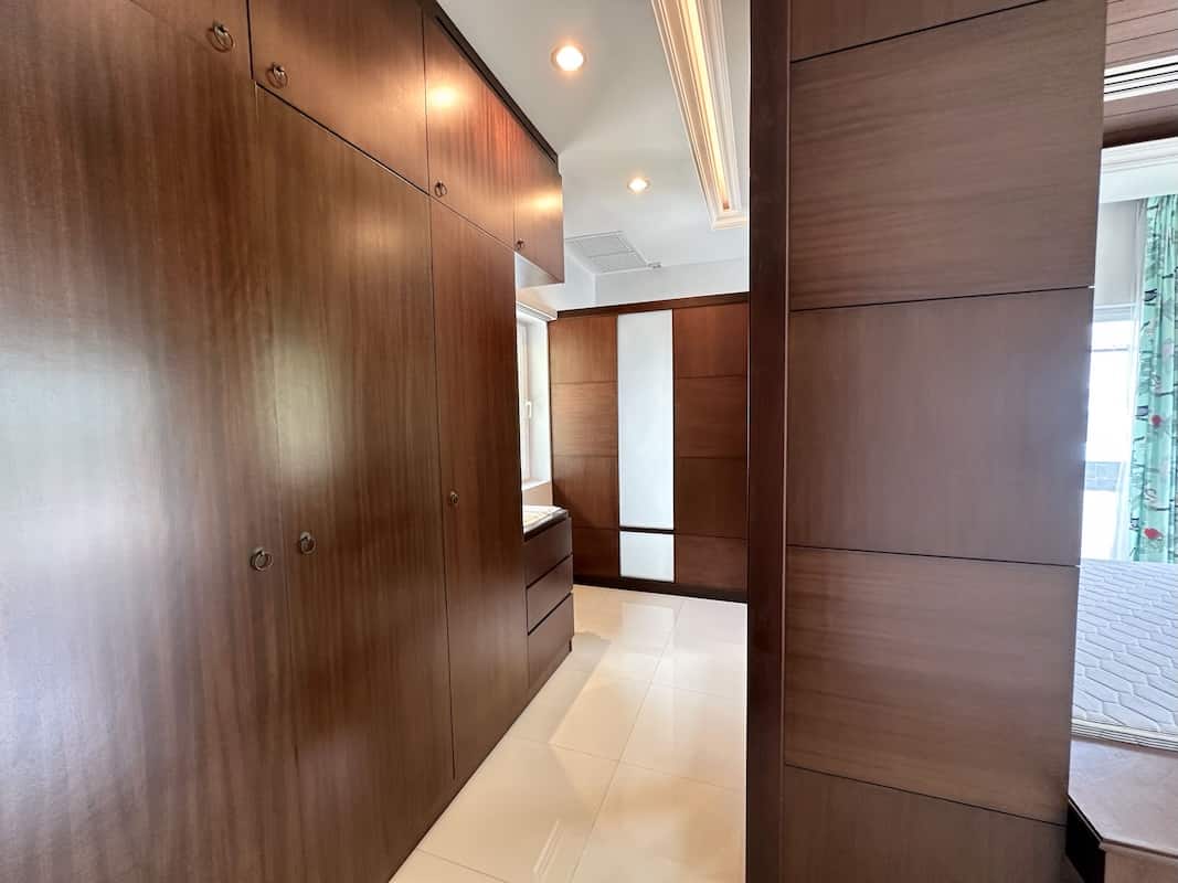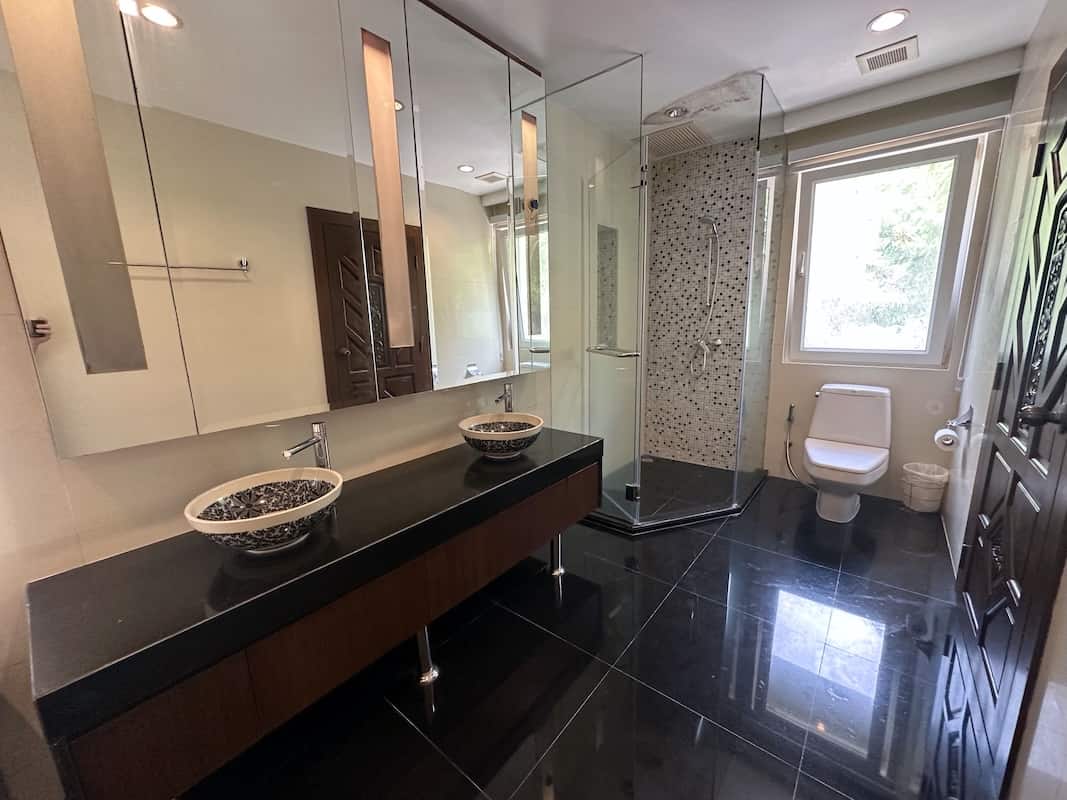 The lower level offers the second bedroom also features an ensuite bathroom a dedicated kitchen, the third bedroom with captivating sea views, a guest bedroom ensuite, and a maid’s bedroom with its own bathrooms. This level ensures privacy and functionality, making it ideal for guests or staff.