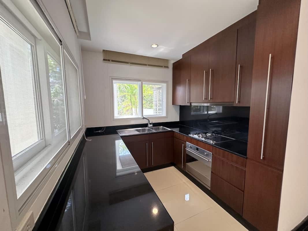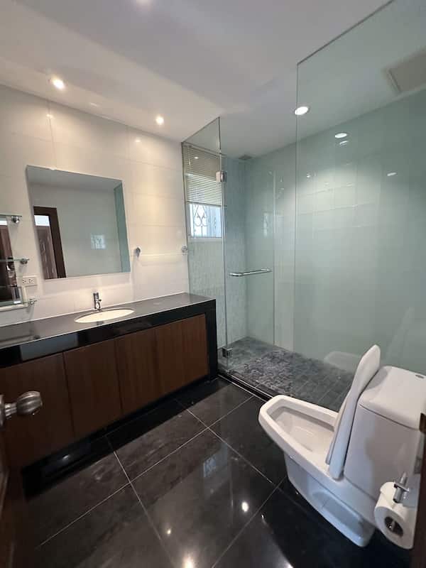 This exquisite villa sits on a spacious 175 square wah (700 square meters) land plot, with a generous 556 square meters of living space. Designed across two levels, the villa features 4+1 bedrooms and 5 bathrooms, ensuring ample space for families, guests, or even a home office.