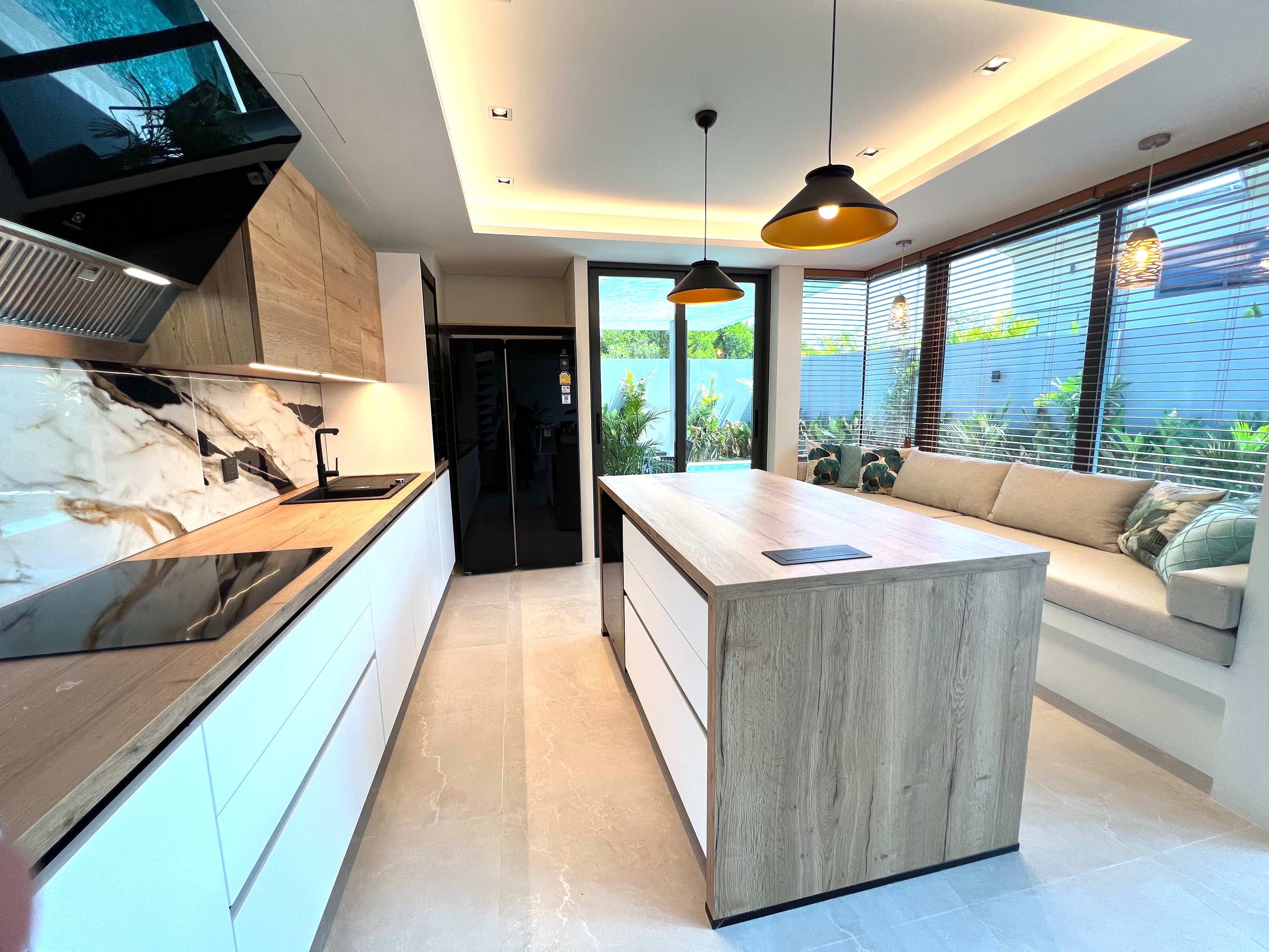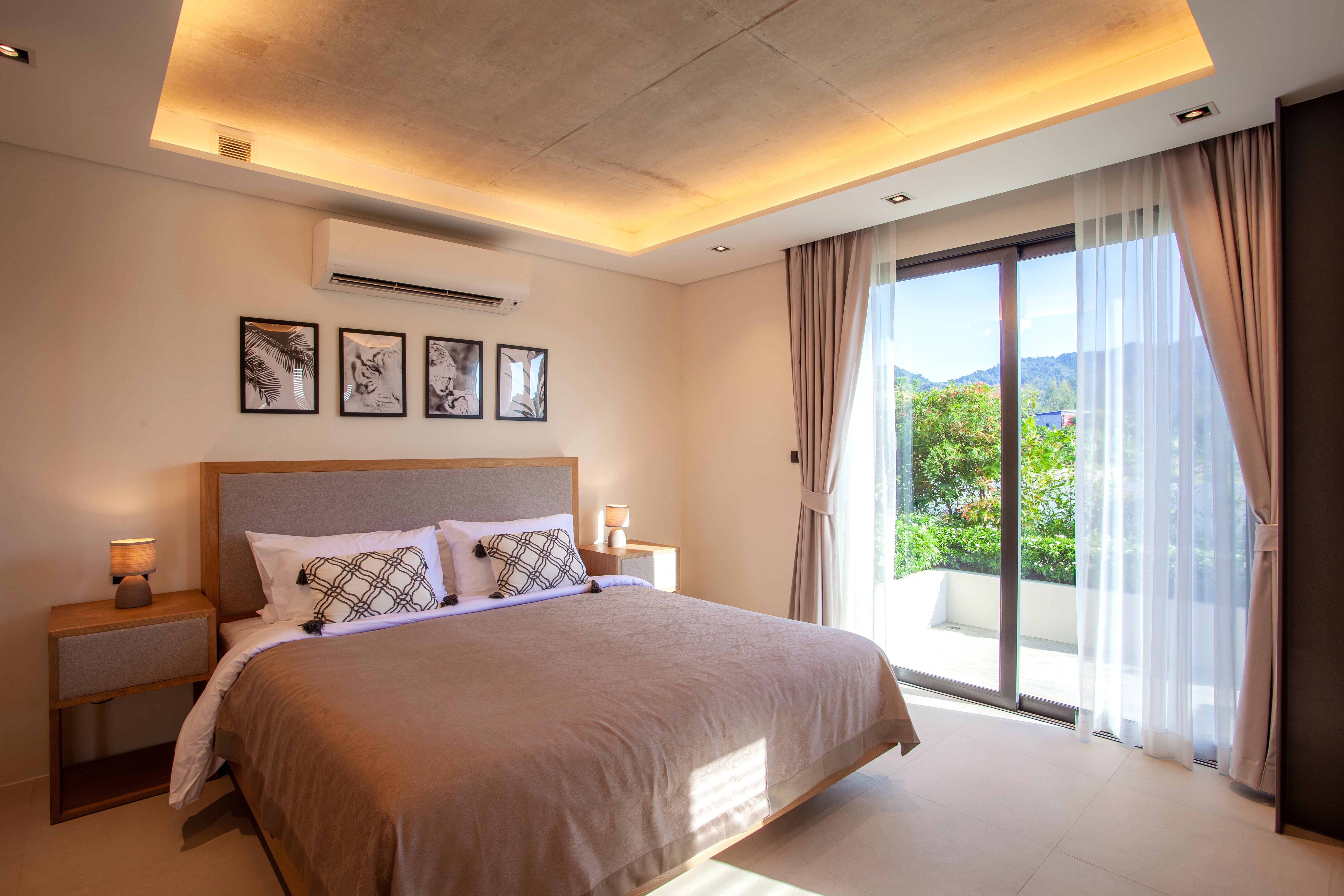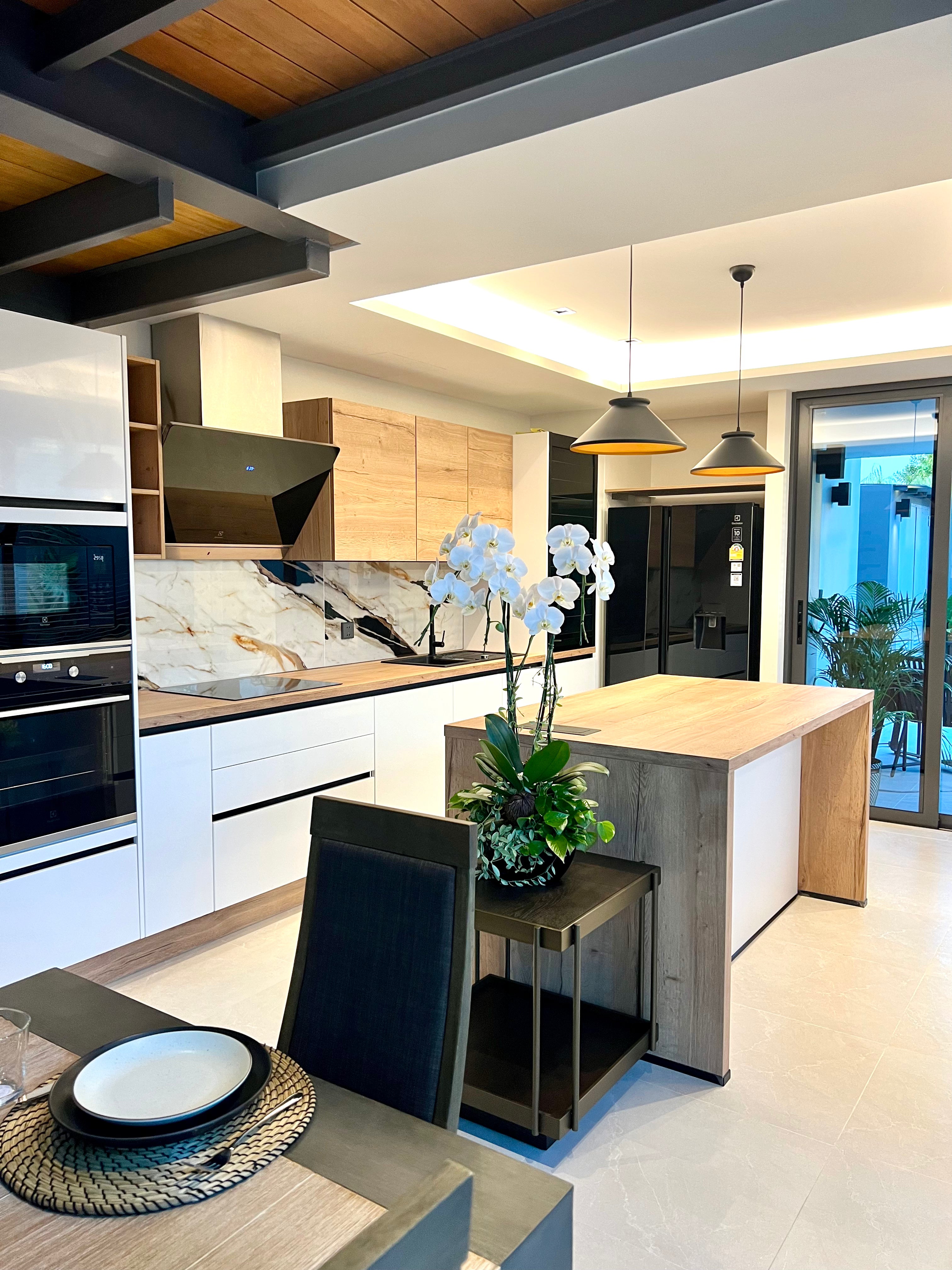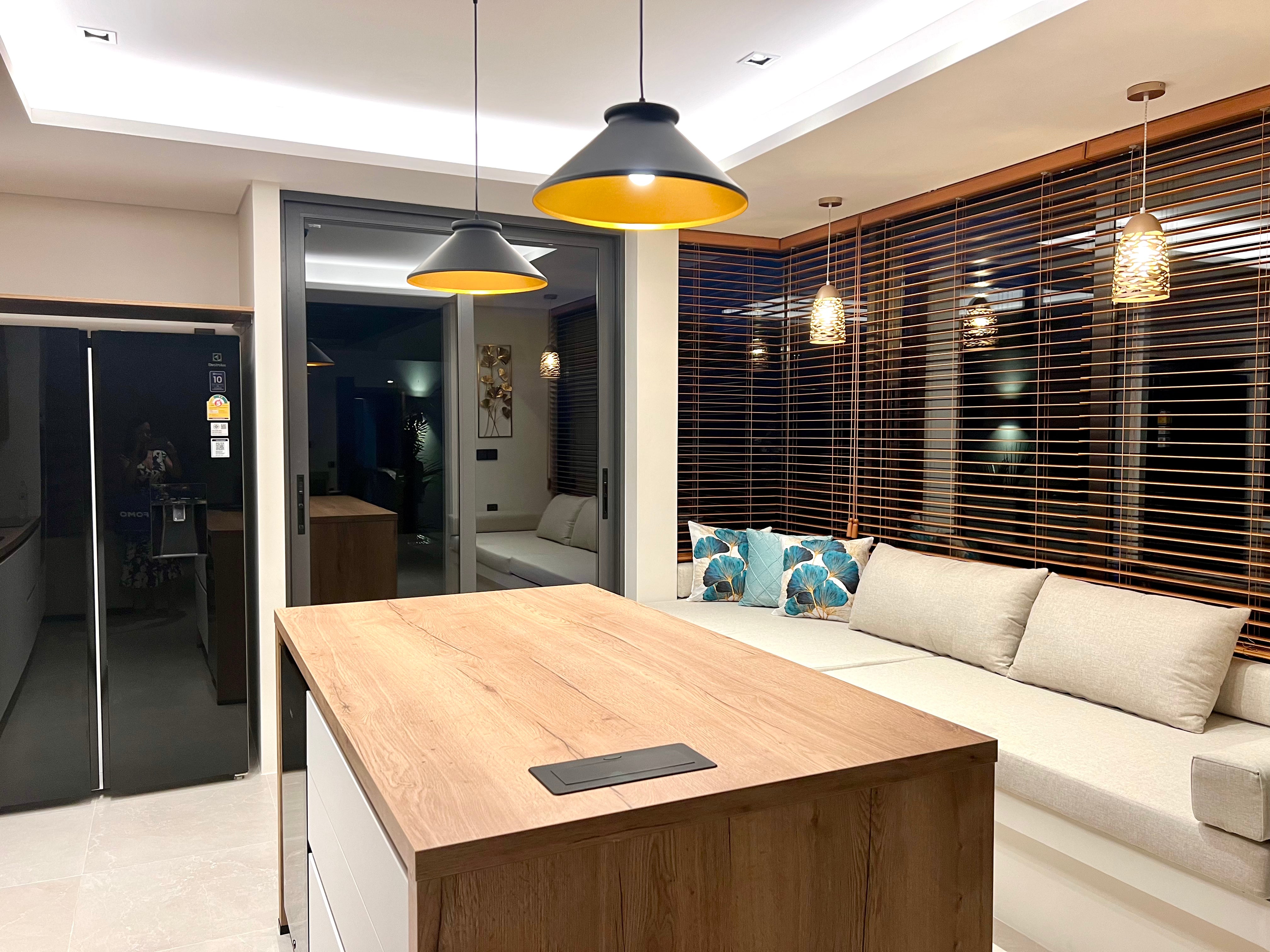 Luxury 2-bedroom private pool villas for sale in a tranquil neighborhood with mountain views in a prime location in Phuket. Each villa is 100% solar powered and uses smart grid technology for energy efficiency.