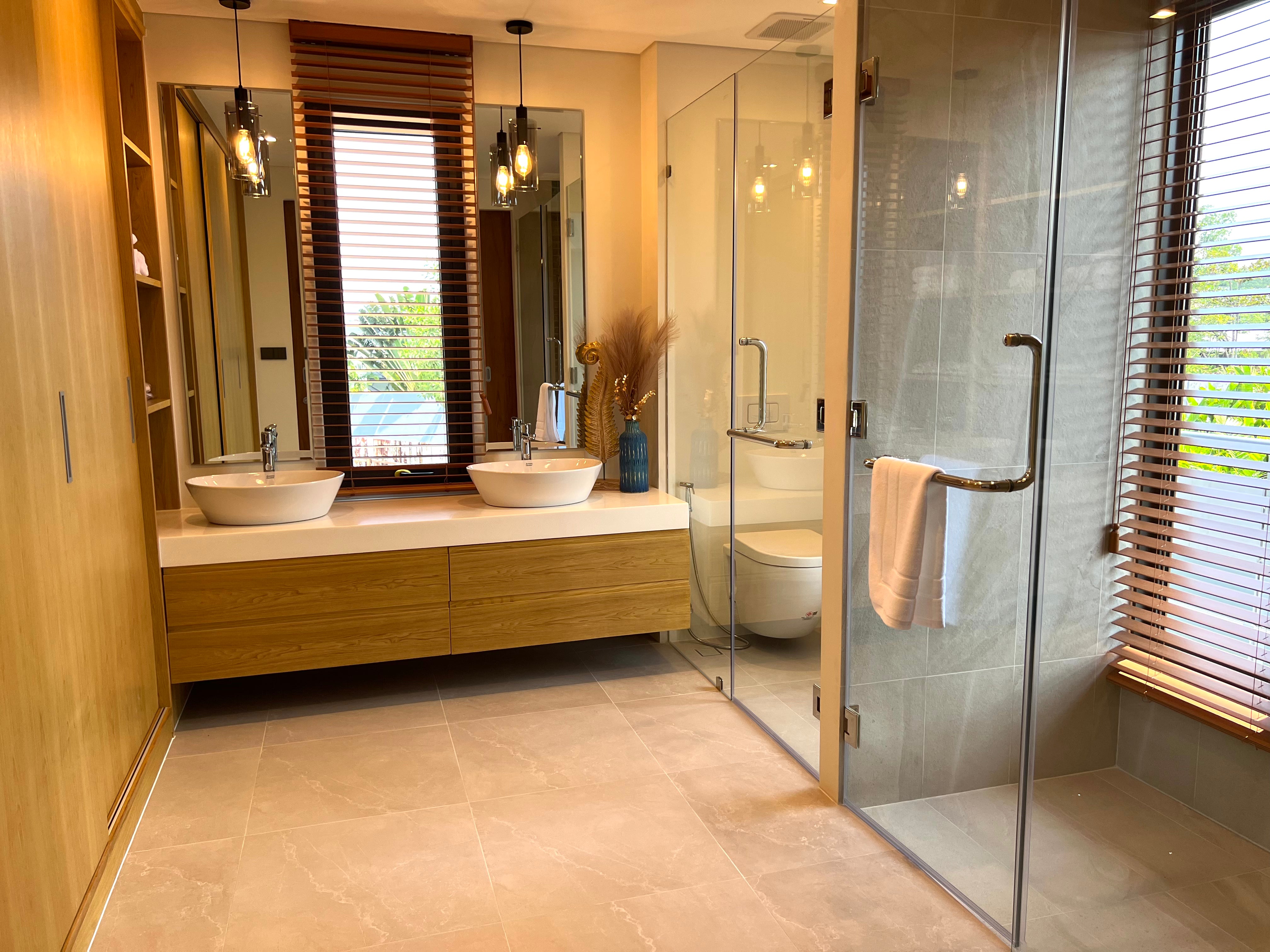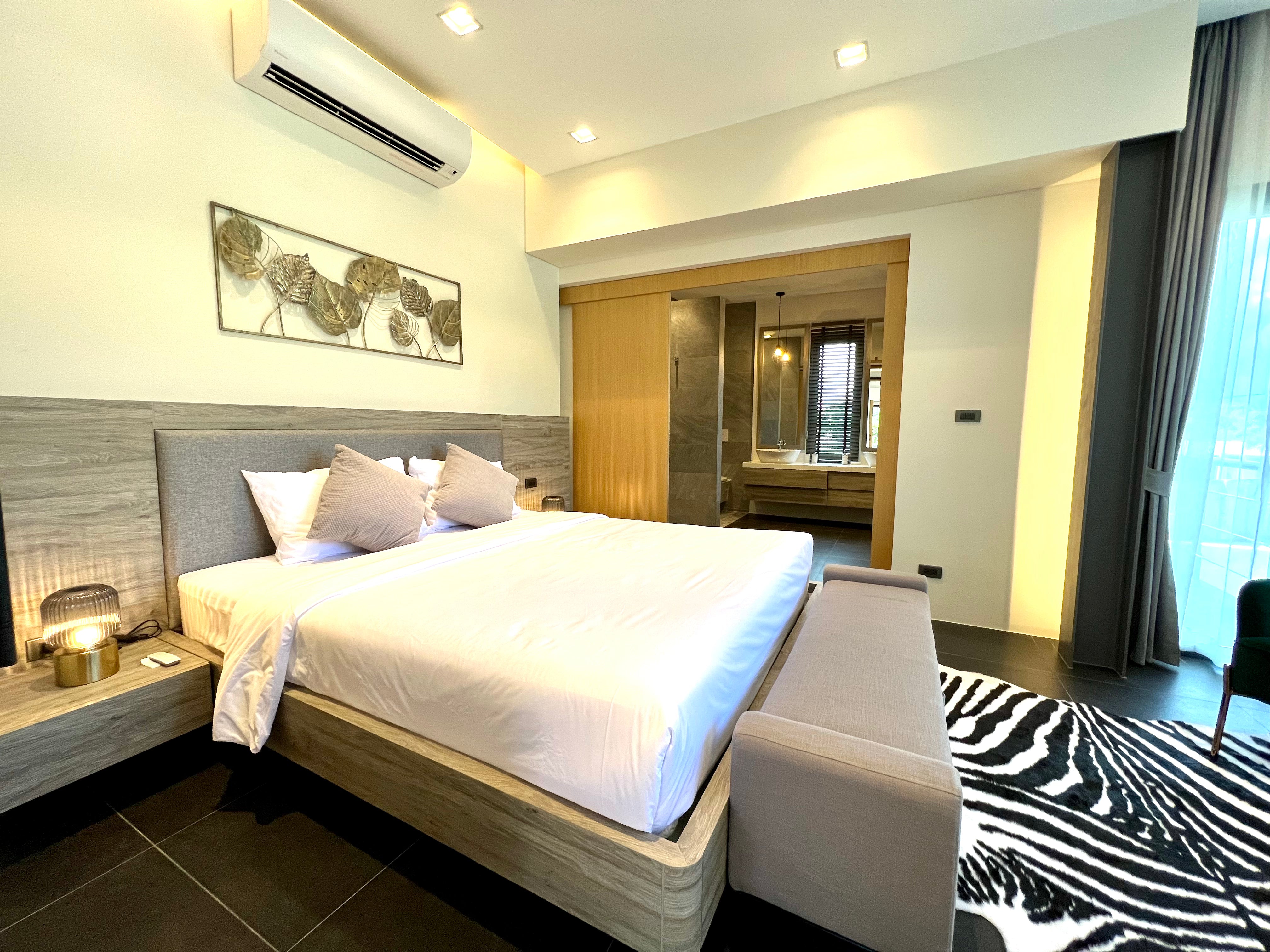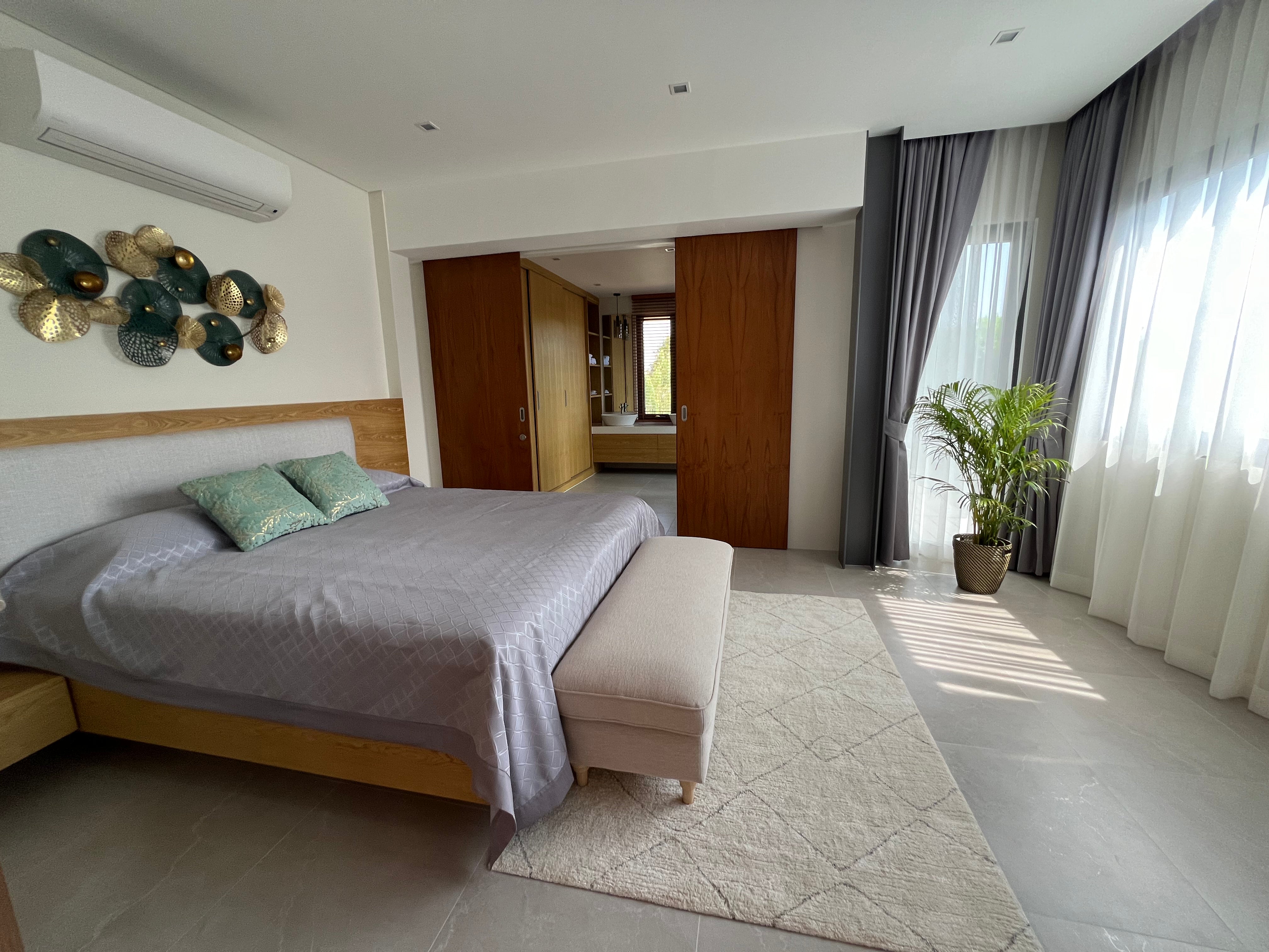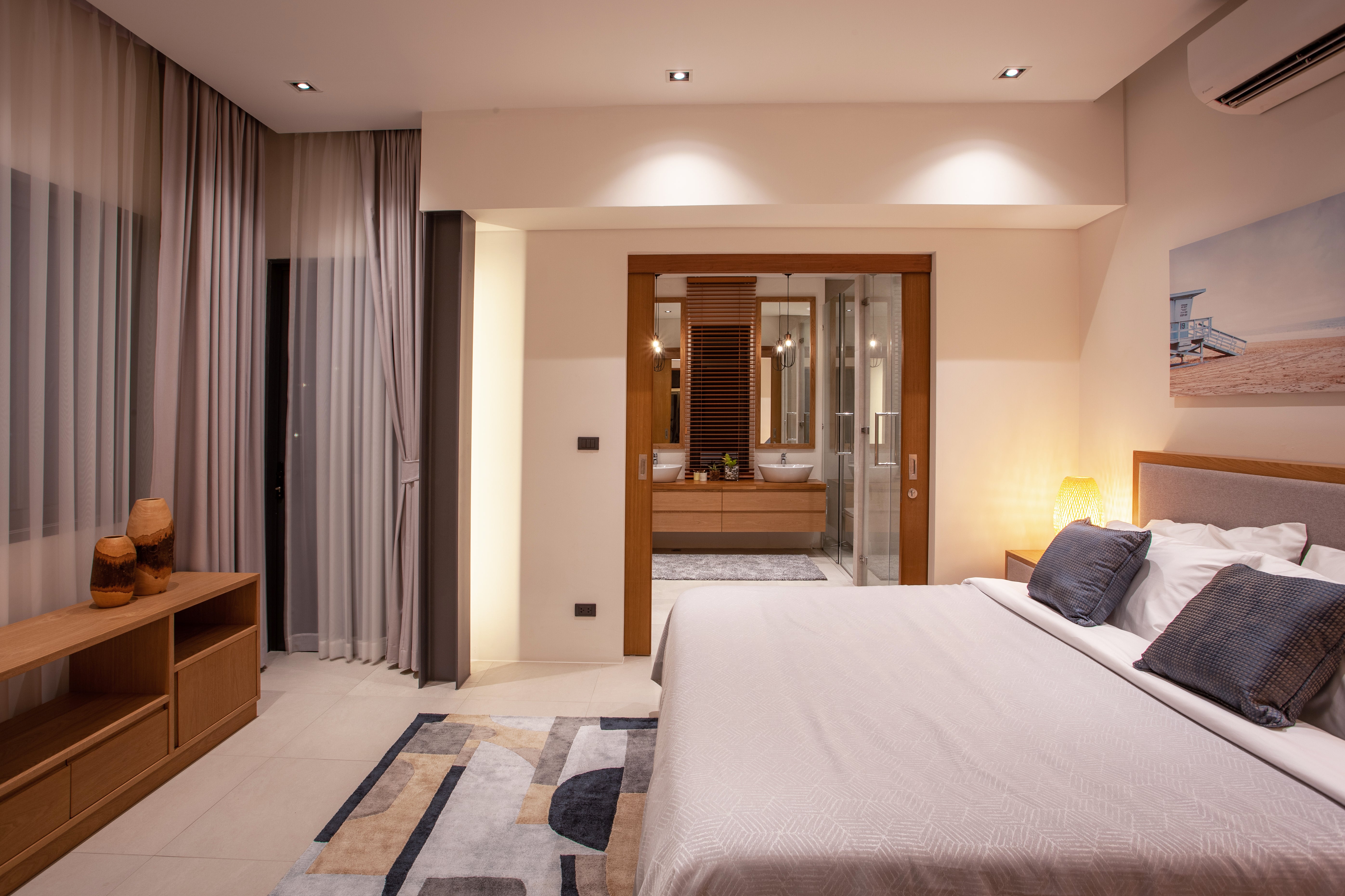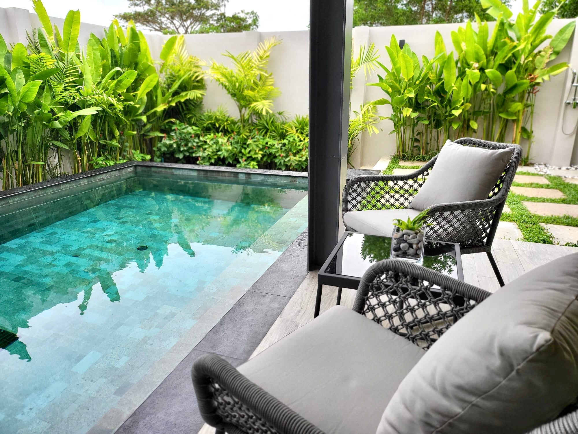Luxury 2-bedroom private pool villas for sale in a tranquil neighborhood with mountain views in a prime location in Phuket. Each villa is 100% solar powered and uses smart grid technology for energy efficiency.