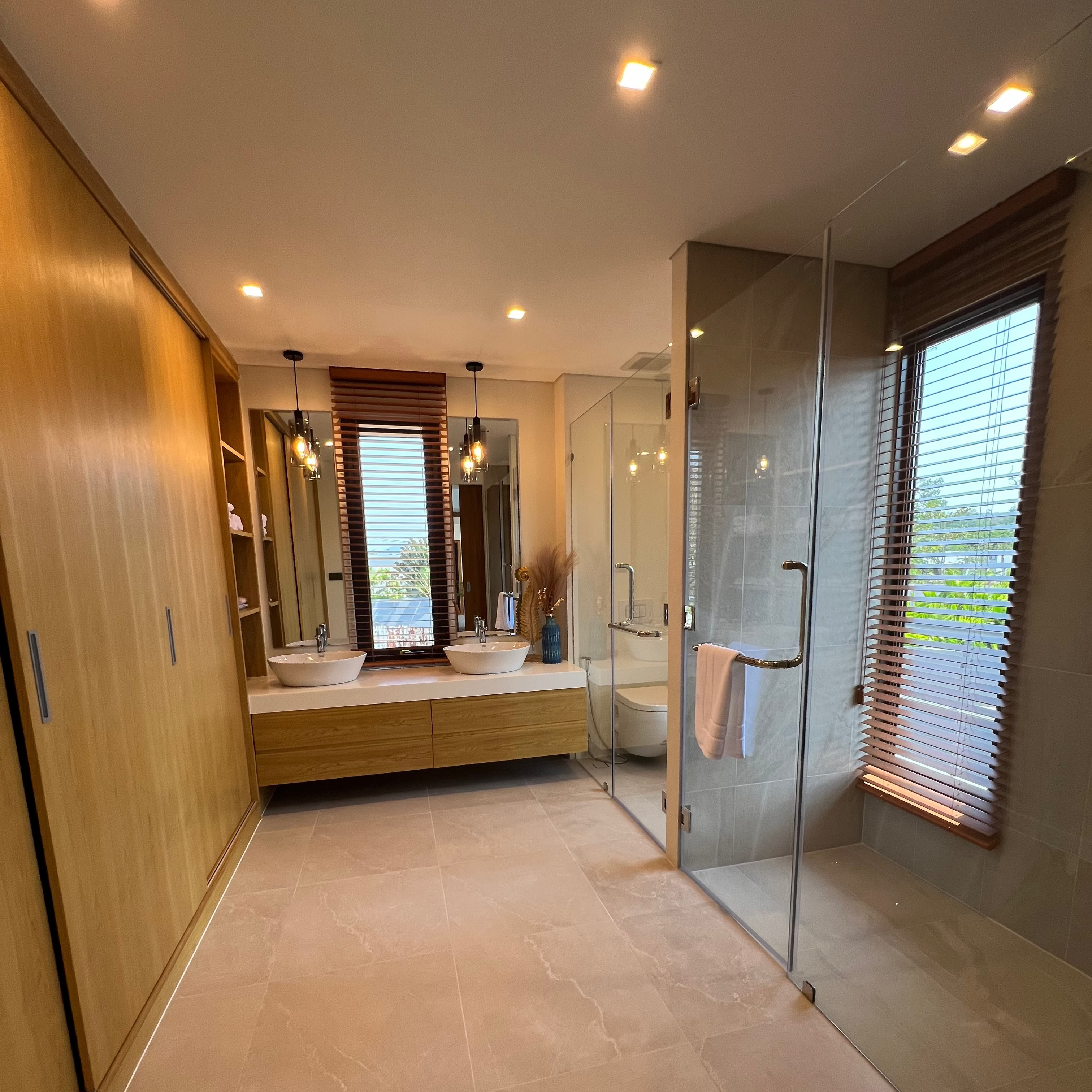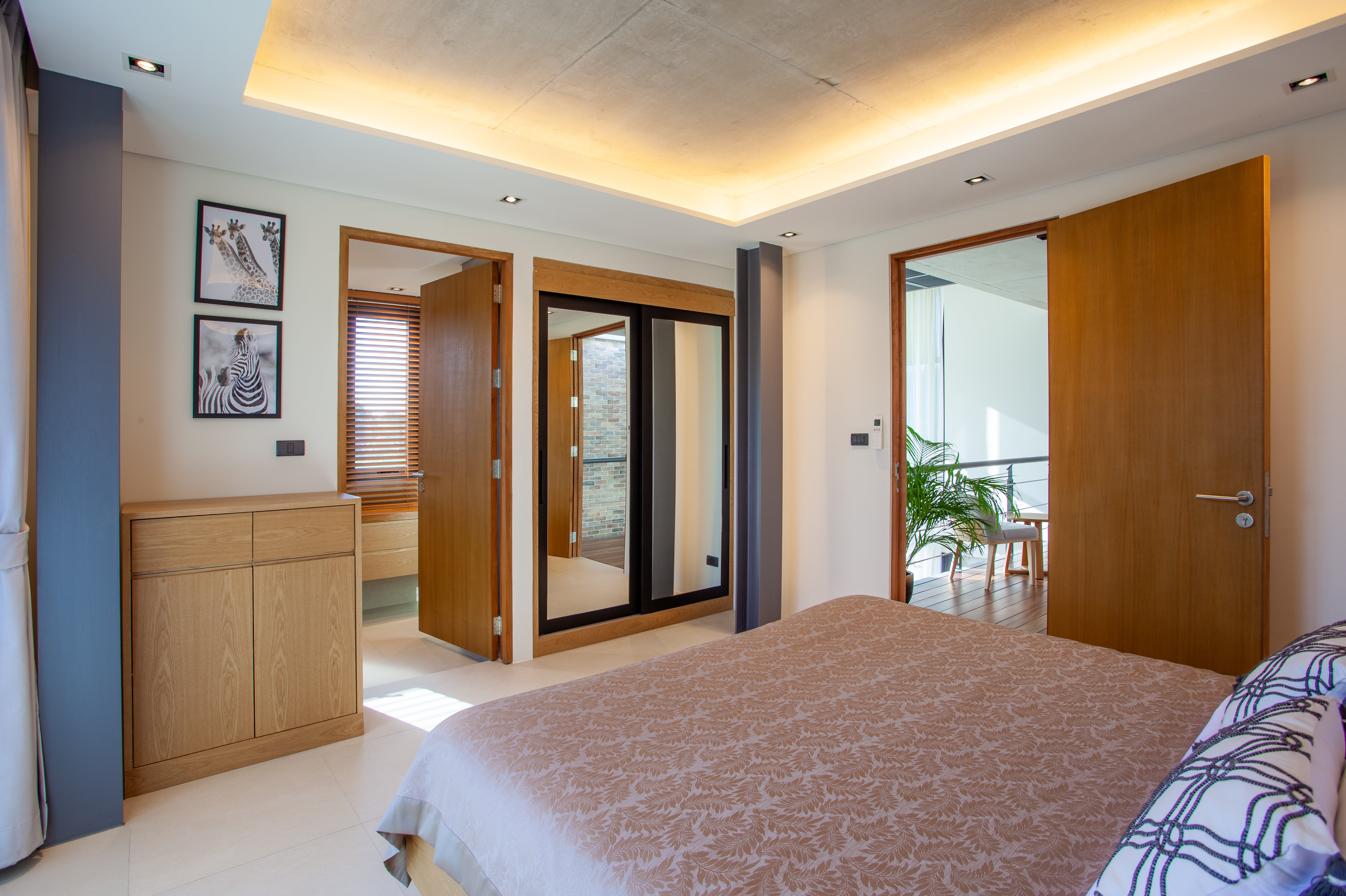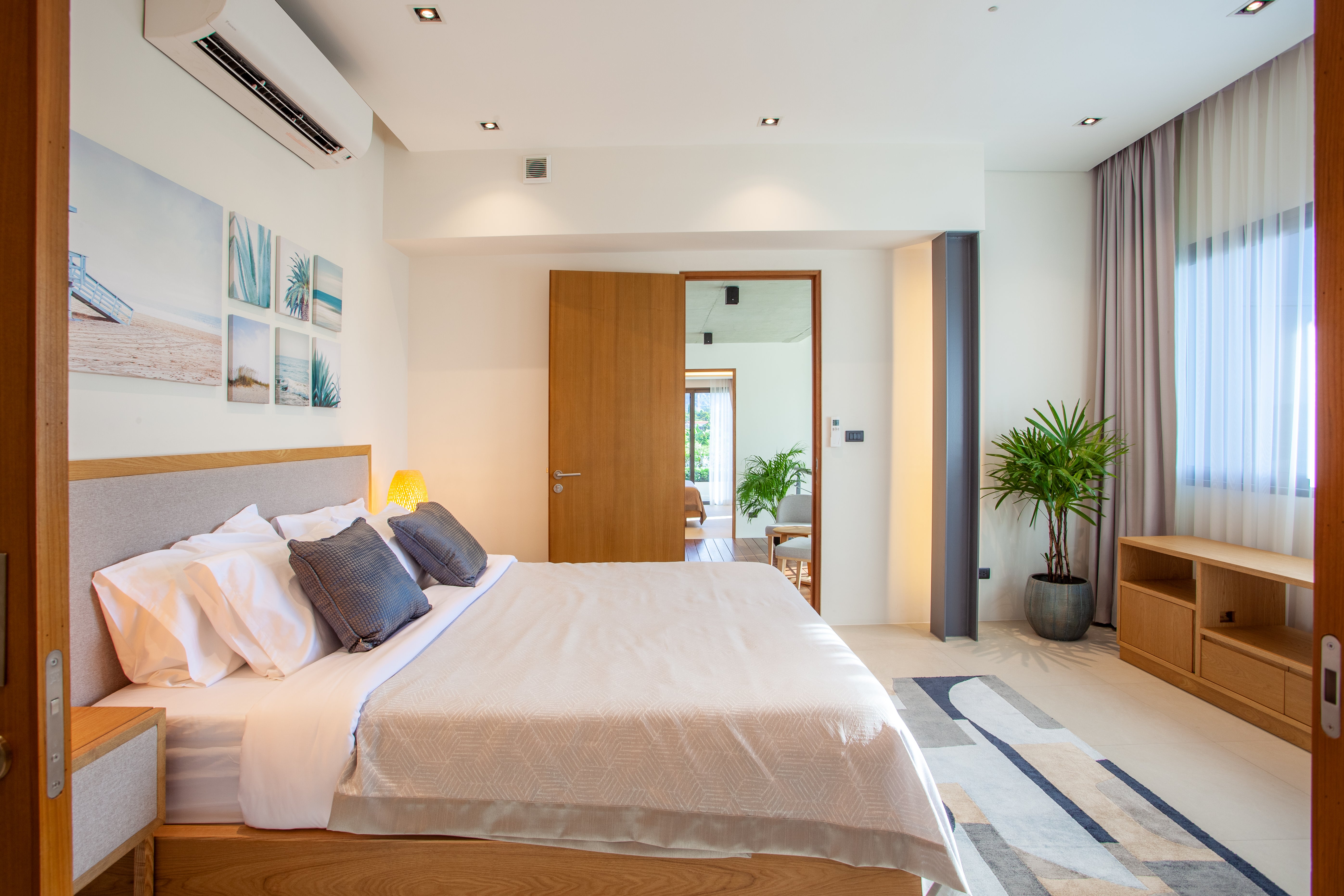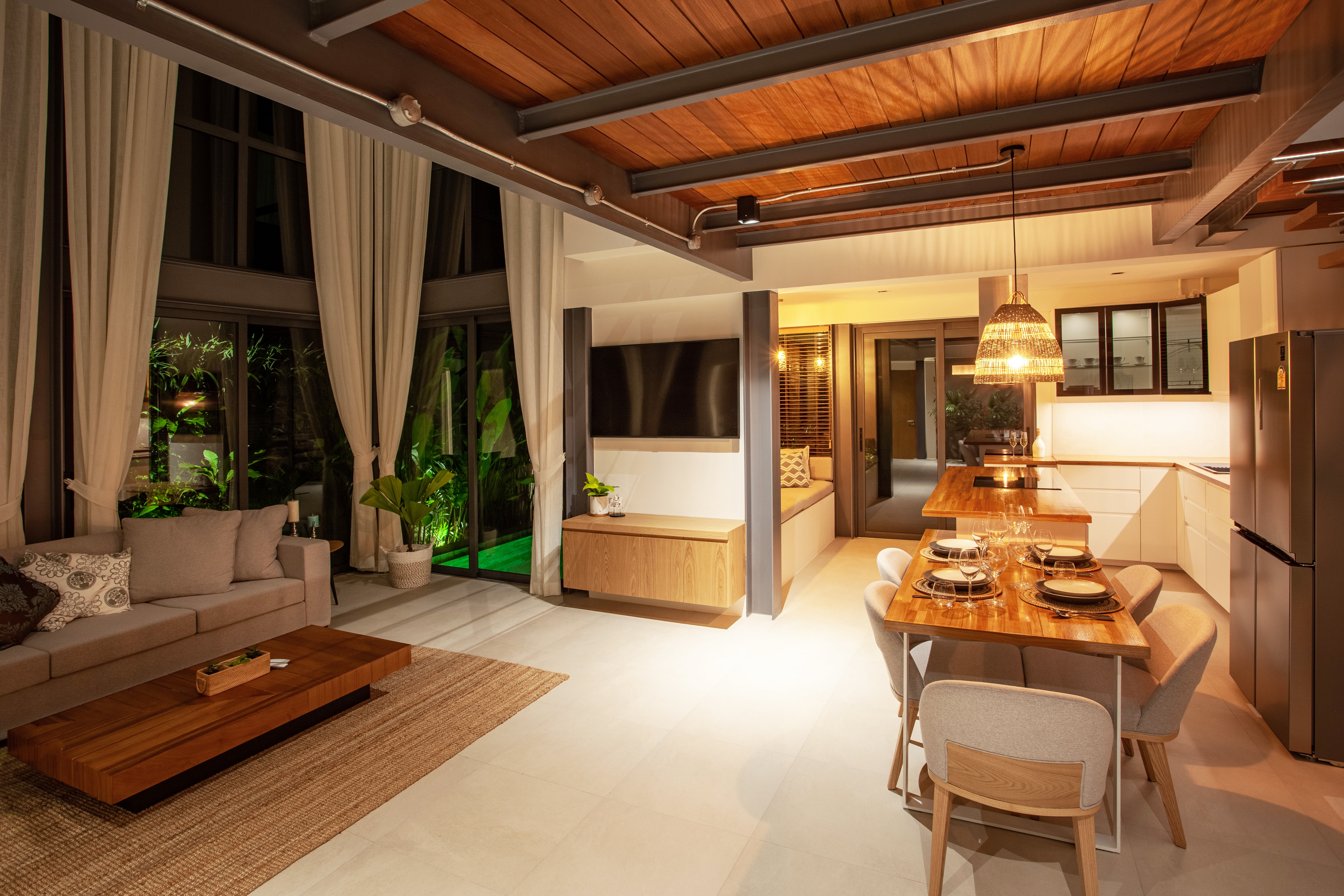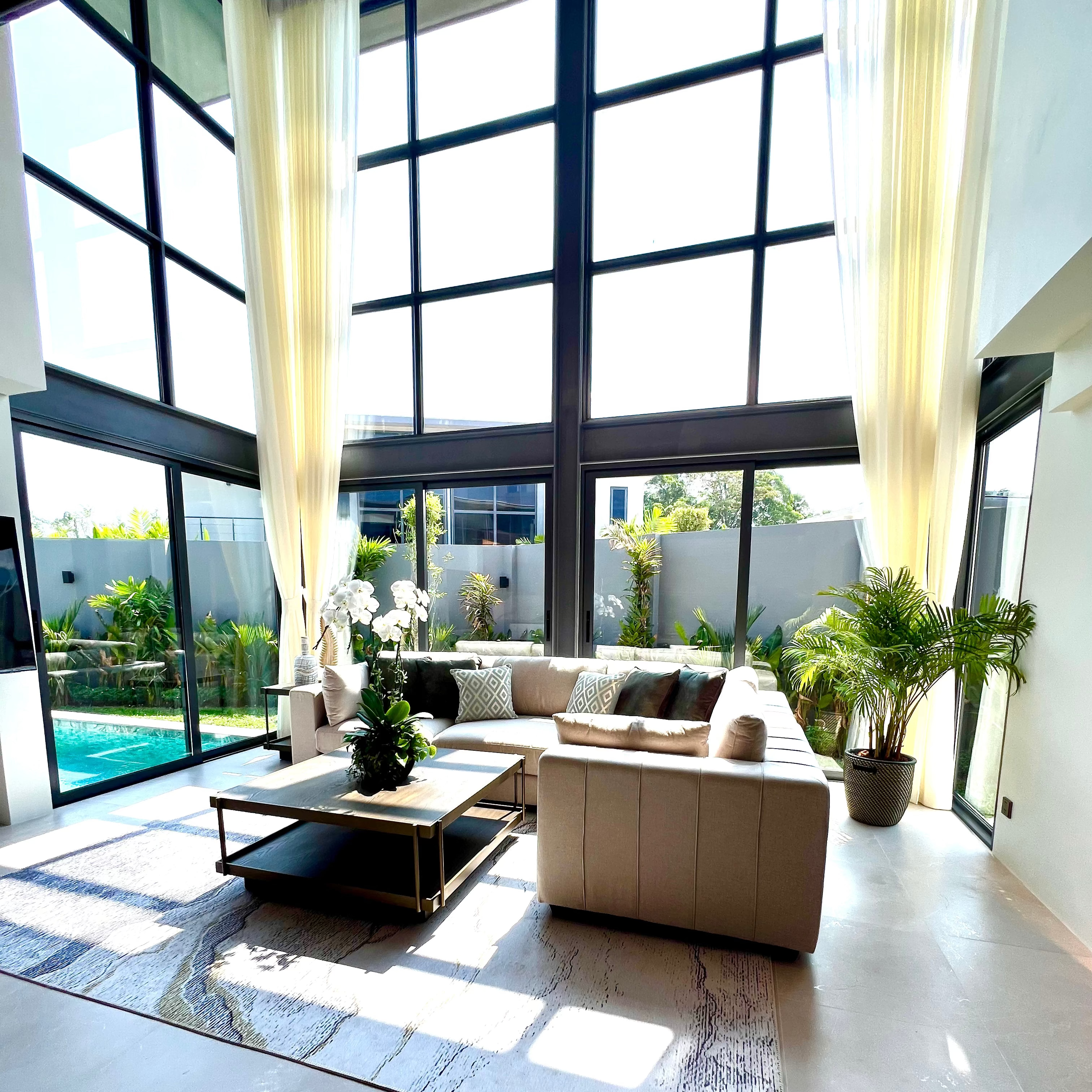 Luxury 2-bedroom private pool villas for sale in a tranquil neighborhood with mountain views in a prime location in Phuket. Each villa is 100% solar powered and uses smart grid technology for energy efficiency.