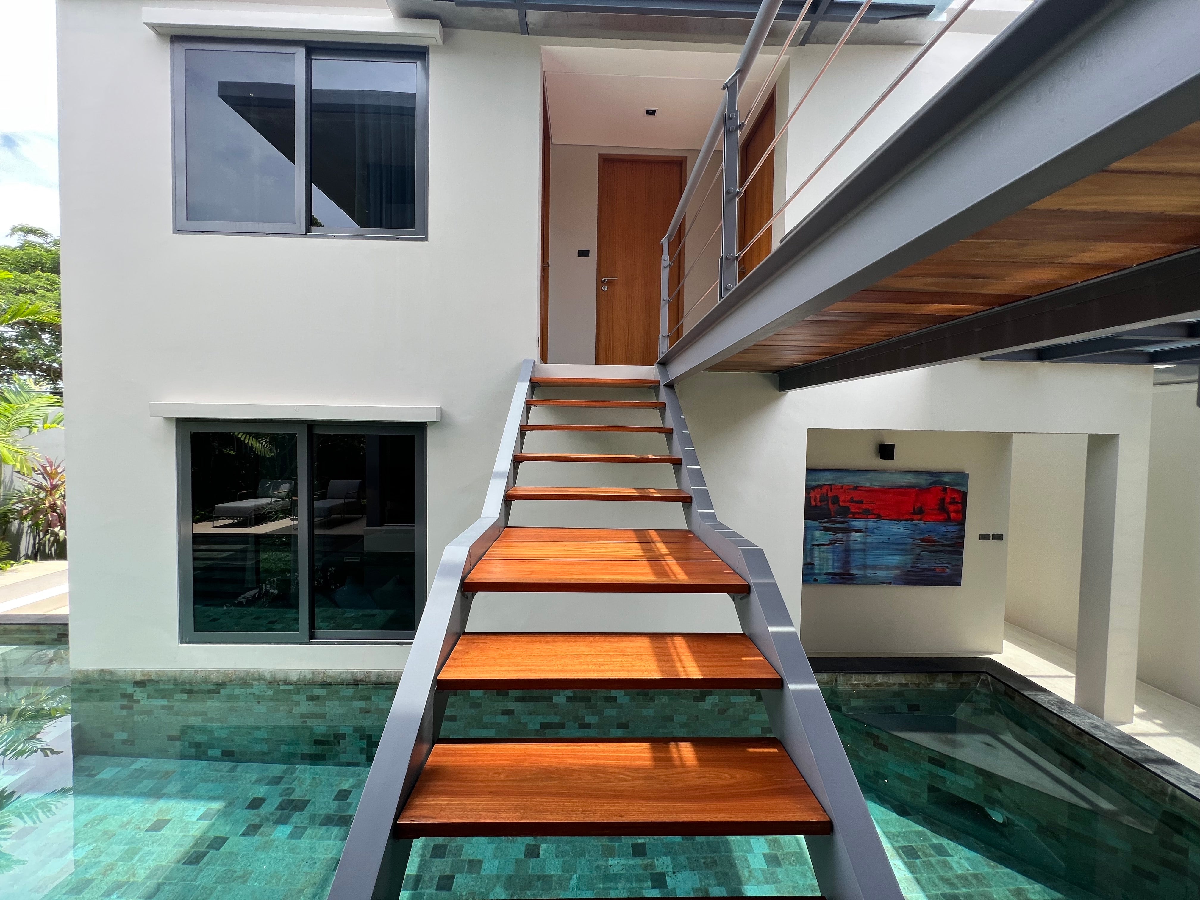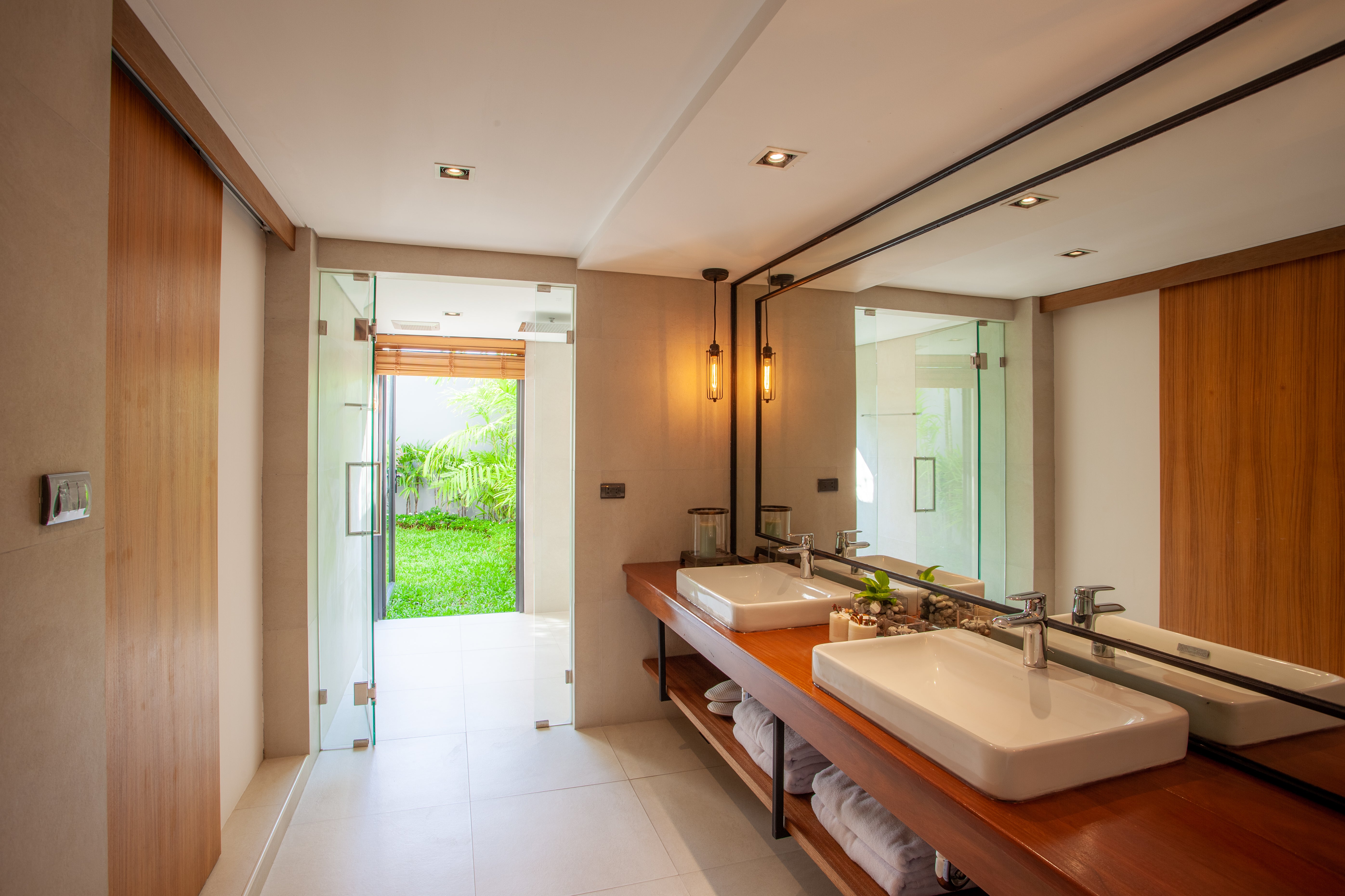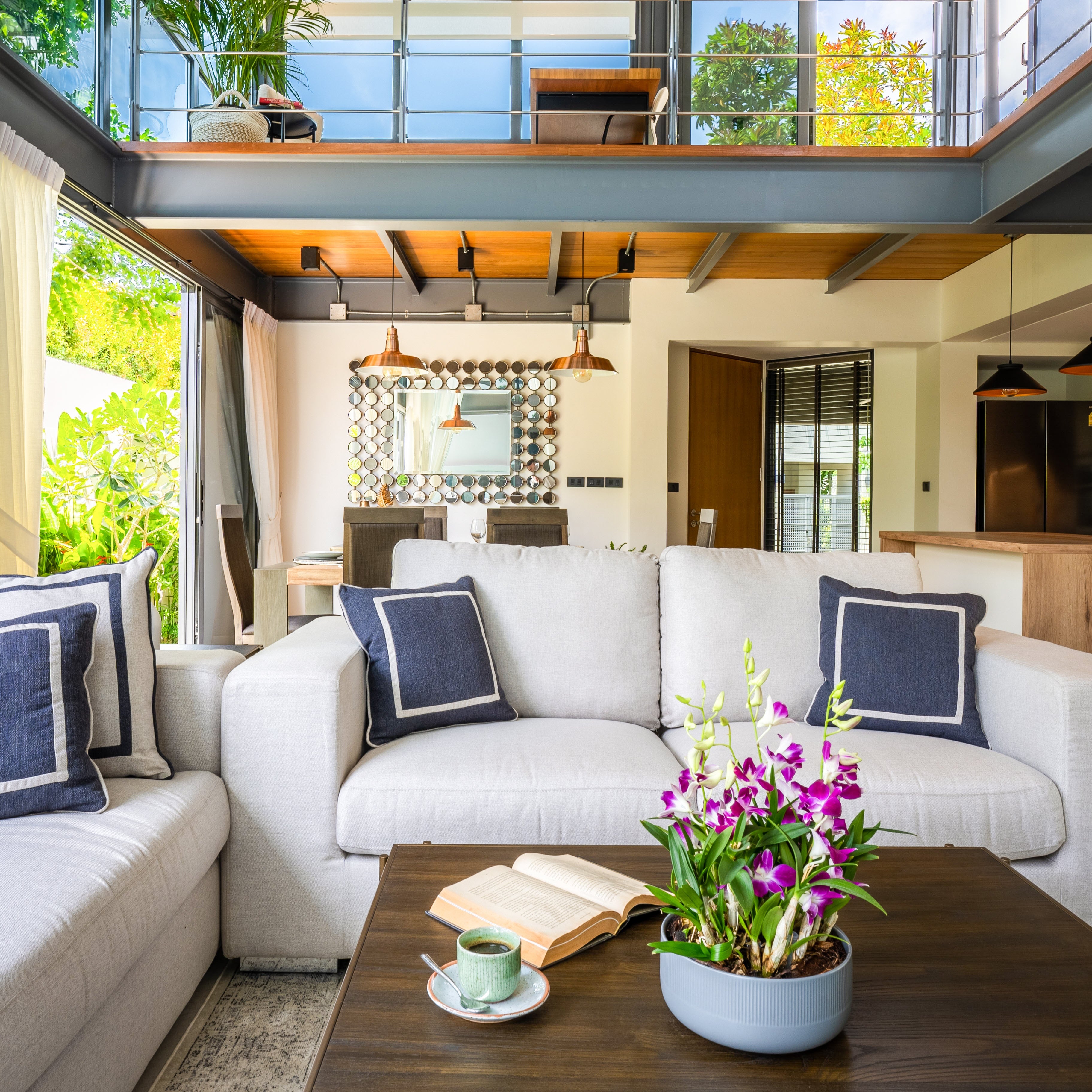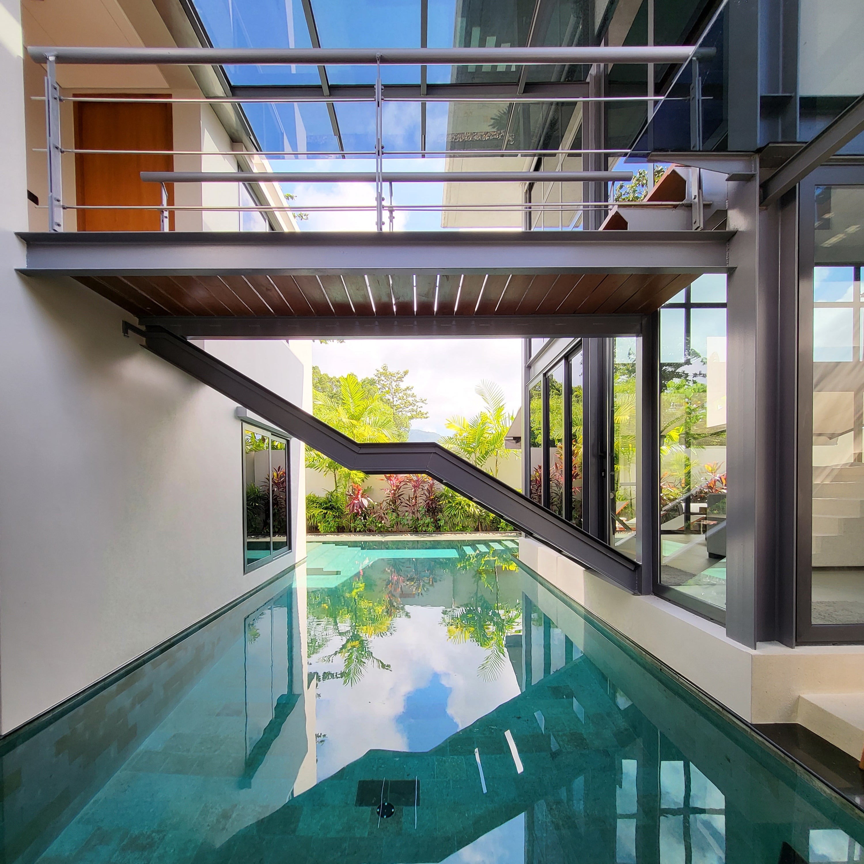 Luxury 3-bedroom 3 bathroom private pool villas for sale in the cosmopolitan Cherngtalay neighborhood of Phuket with easy access to restaurants, shopping, international schools, and recreational amenities. These villas are 100% solar powered, feature smart grid technology, and include a sealed 4,000 liter water storage tank beneath the garage.