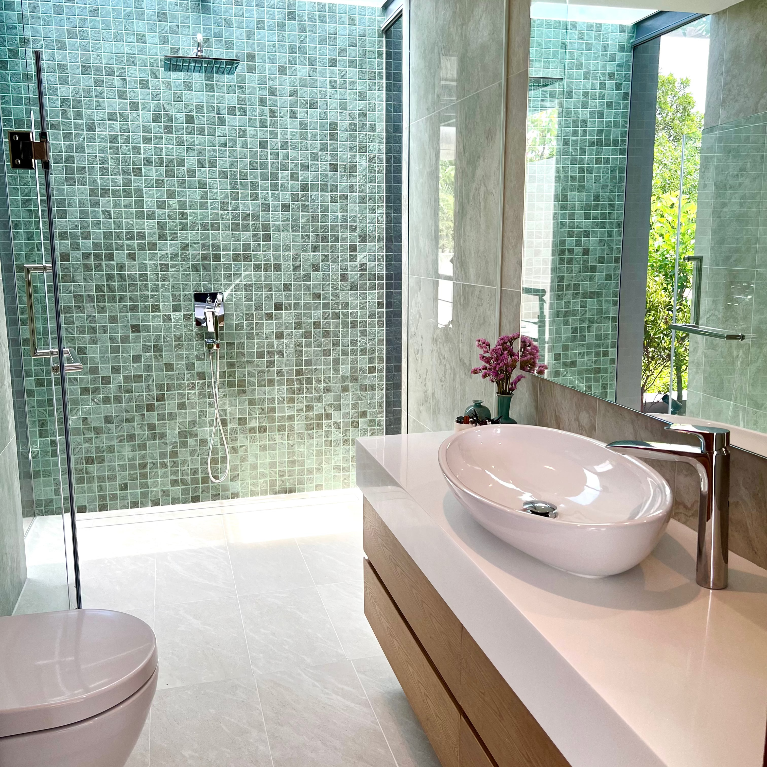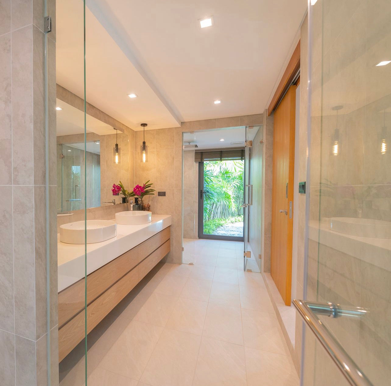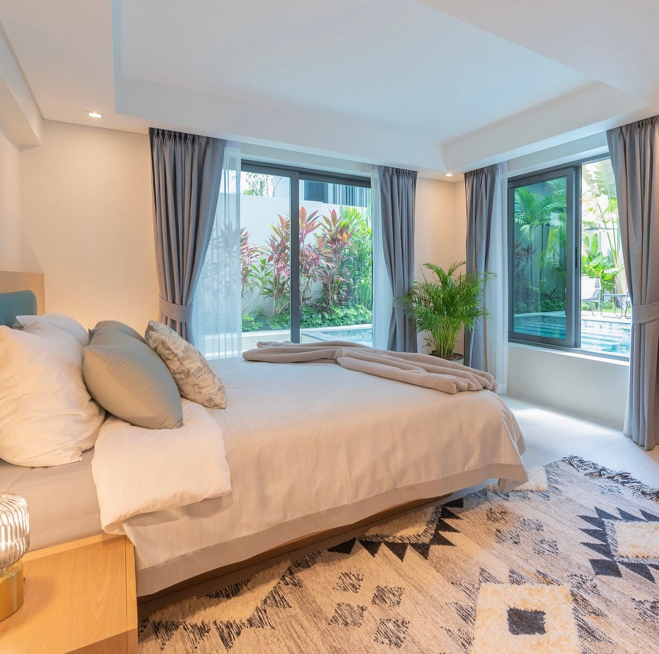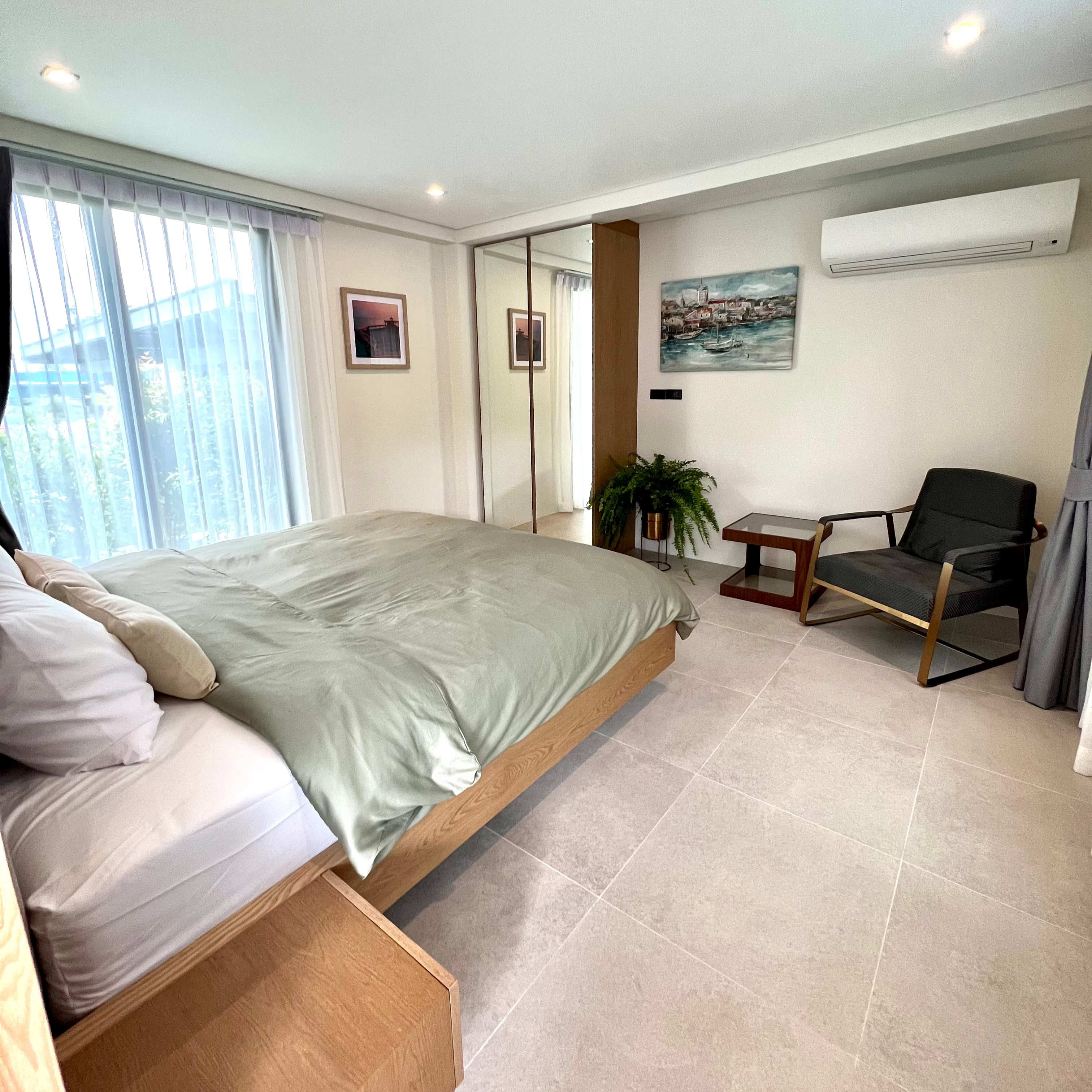 Luxury 3-bedroom 3 bathroom private pool villas for sale in the cosmopolitan Cherngtalay neighborhood of Phuket with easy access to restaurants, shopping, international schools, and recreational amenities. These villas are 100% solar powered, feature smart grid technology, and include a sealed 4,000 liter water storage tank beneath the garage.