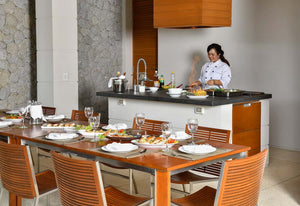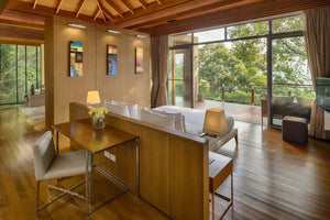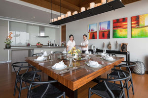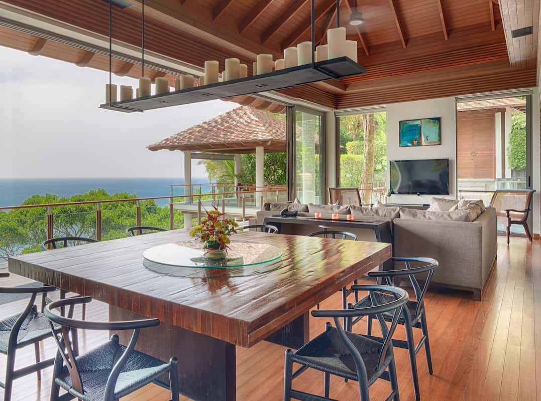 Baan Banyan seamlessly integrates living and dining spaces, with an upper level featuring a fully equipped kitchen, dining room, and a comfortable living room. Open up to the sea breeze or enjoy air-conditioned comfort while relishing in Thai-style alfresco dining amidst lush foliage and breathtakingly stunning ocean views.