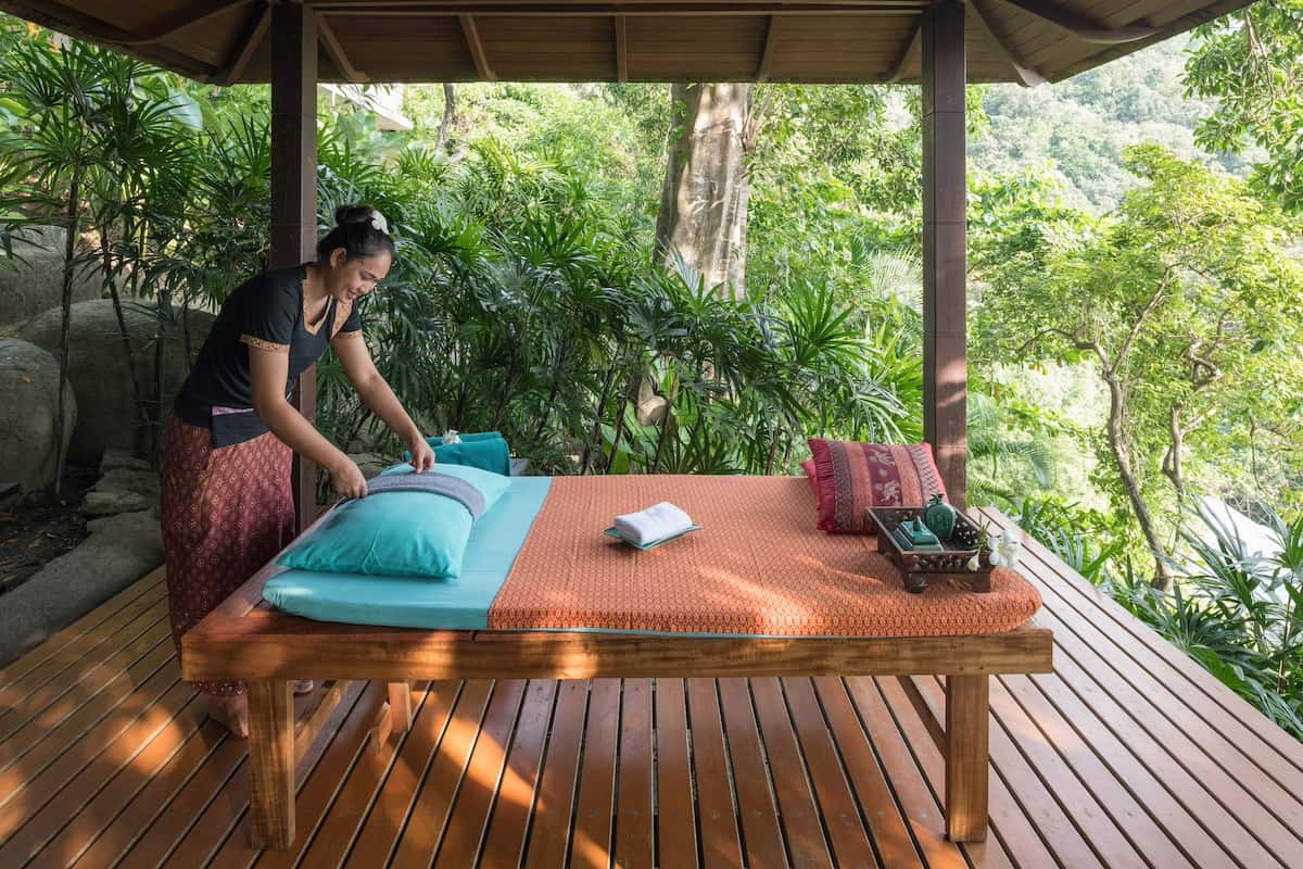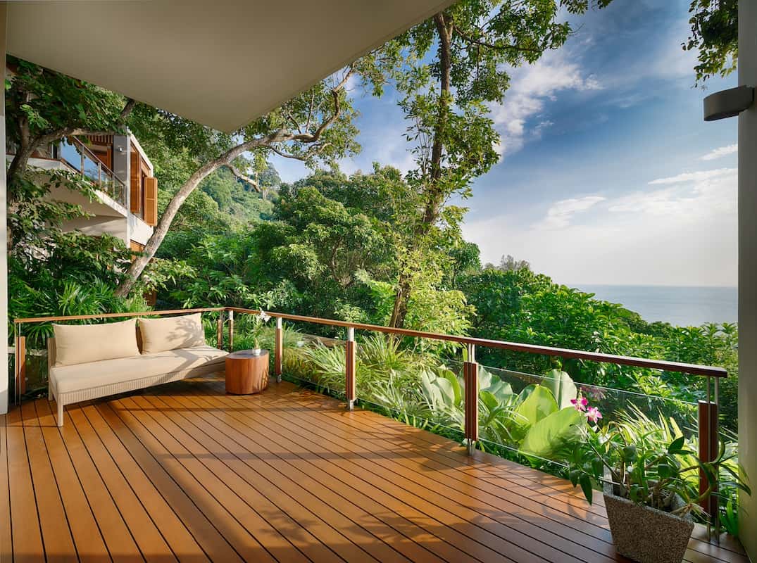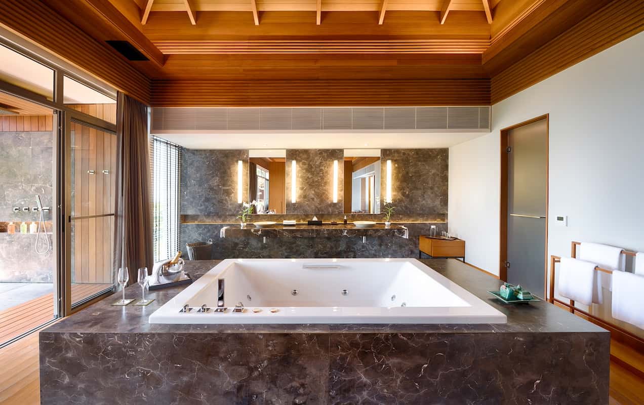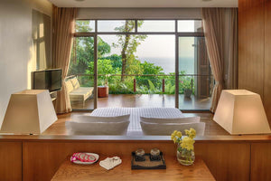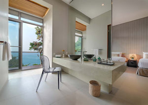 Gaze upon the Andaman Sea from the expansive 19-meter lap pool, indulge in indoor and outdoor lounging, and maintain your fitness regimen in a well-equipped gym. Exclusive access to a rocky bay below enhances the villa’s allure, offering a sea-facing vista that becomes particularly enchanting at sunset.