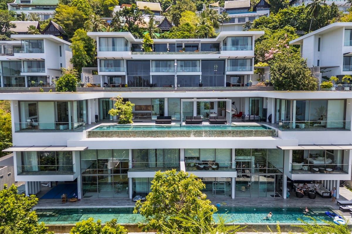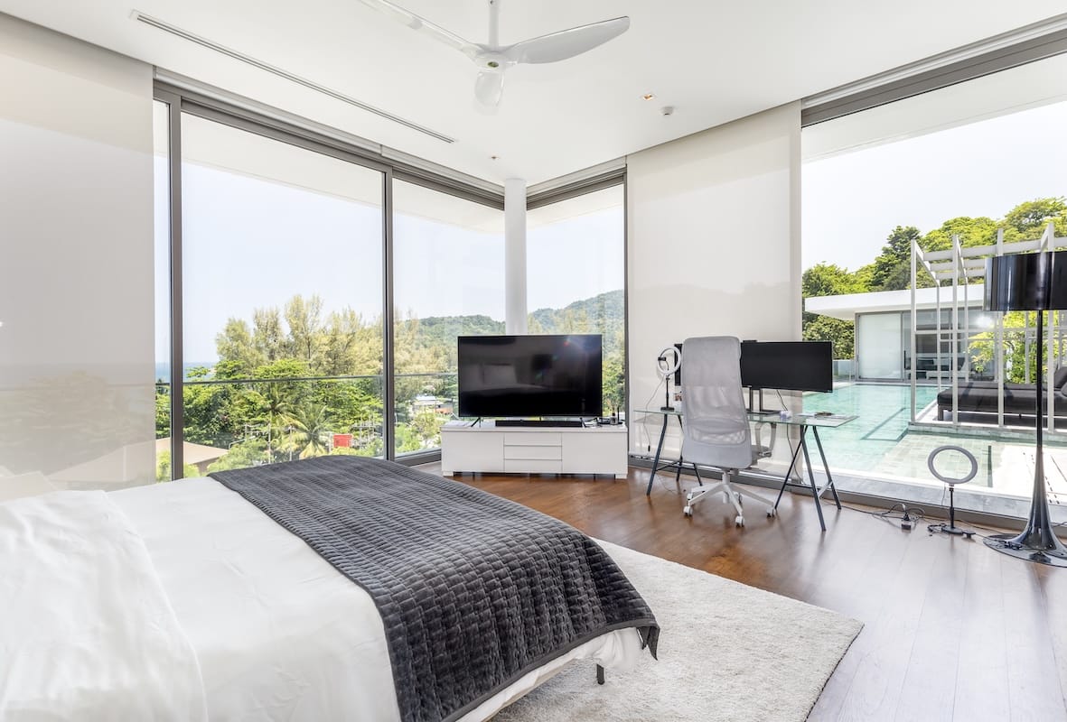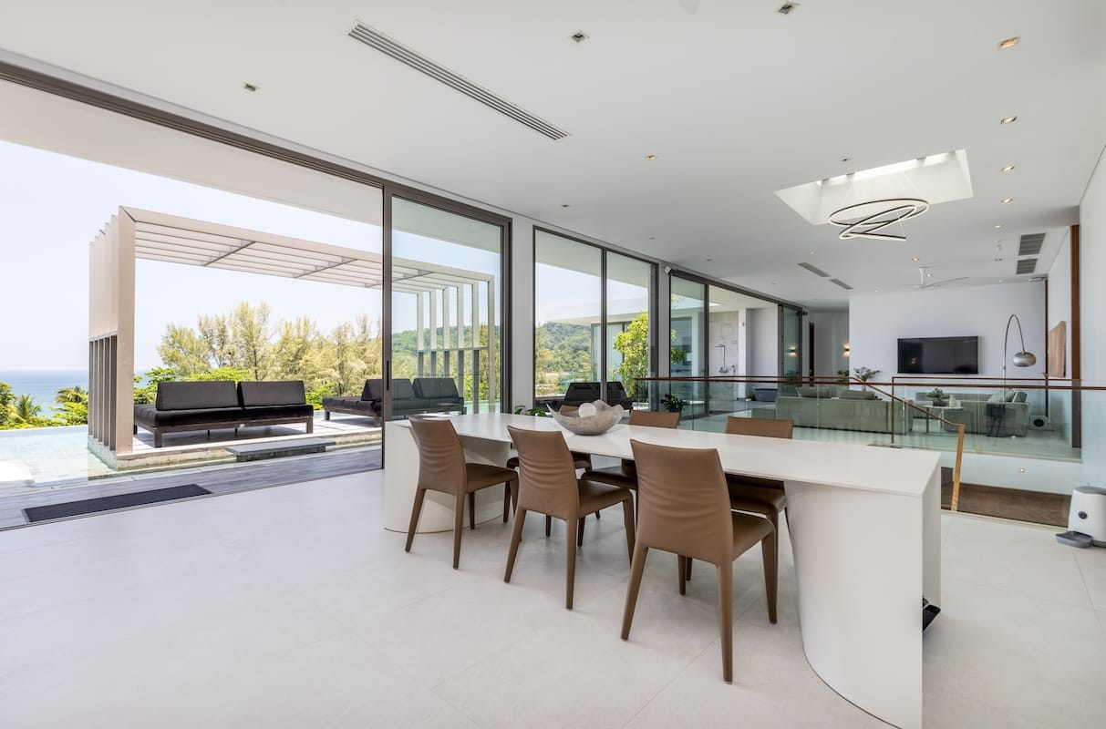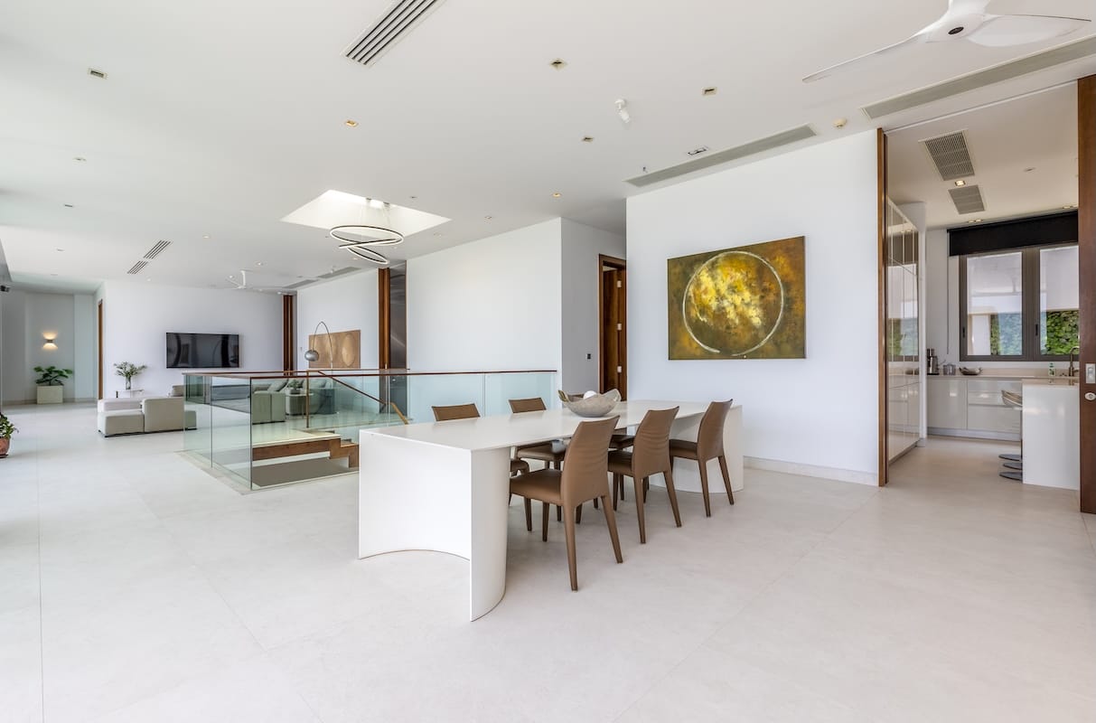 Spanning an impressive 735 square meters of meticulously curated living space, this four-bedroom penthouse is a masterclass in open-concept design. Floor-to-ceiling glass panels invite sweeping vistas of the Andaman Sea into every principal room, infusing the residence with natural light and a constant connection to the ocean beyond.