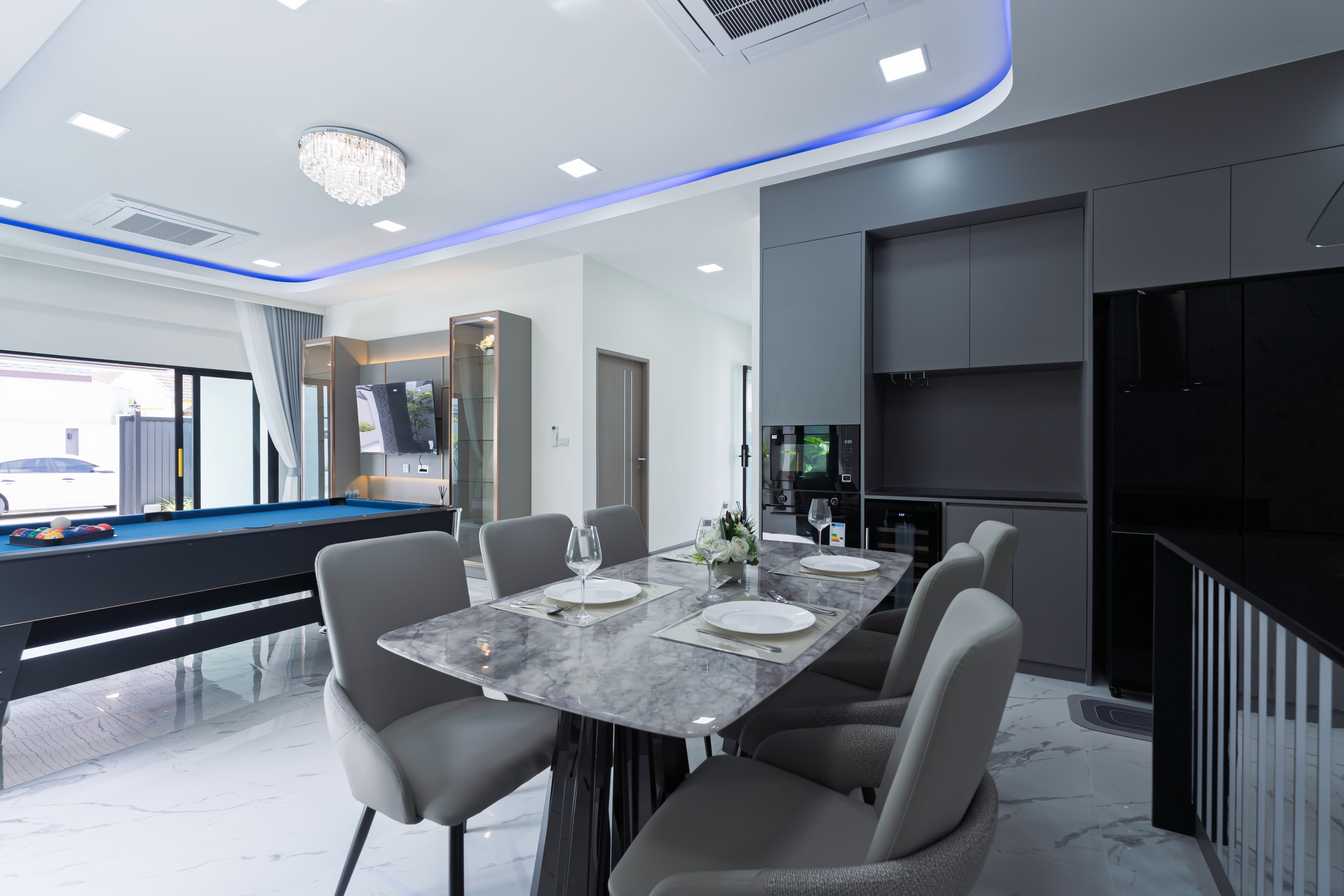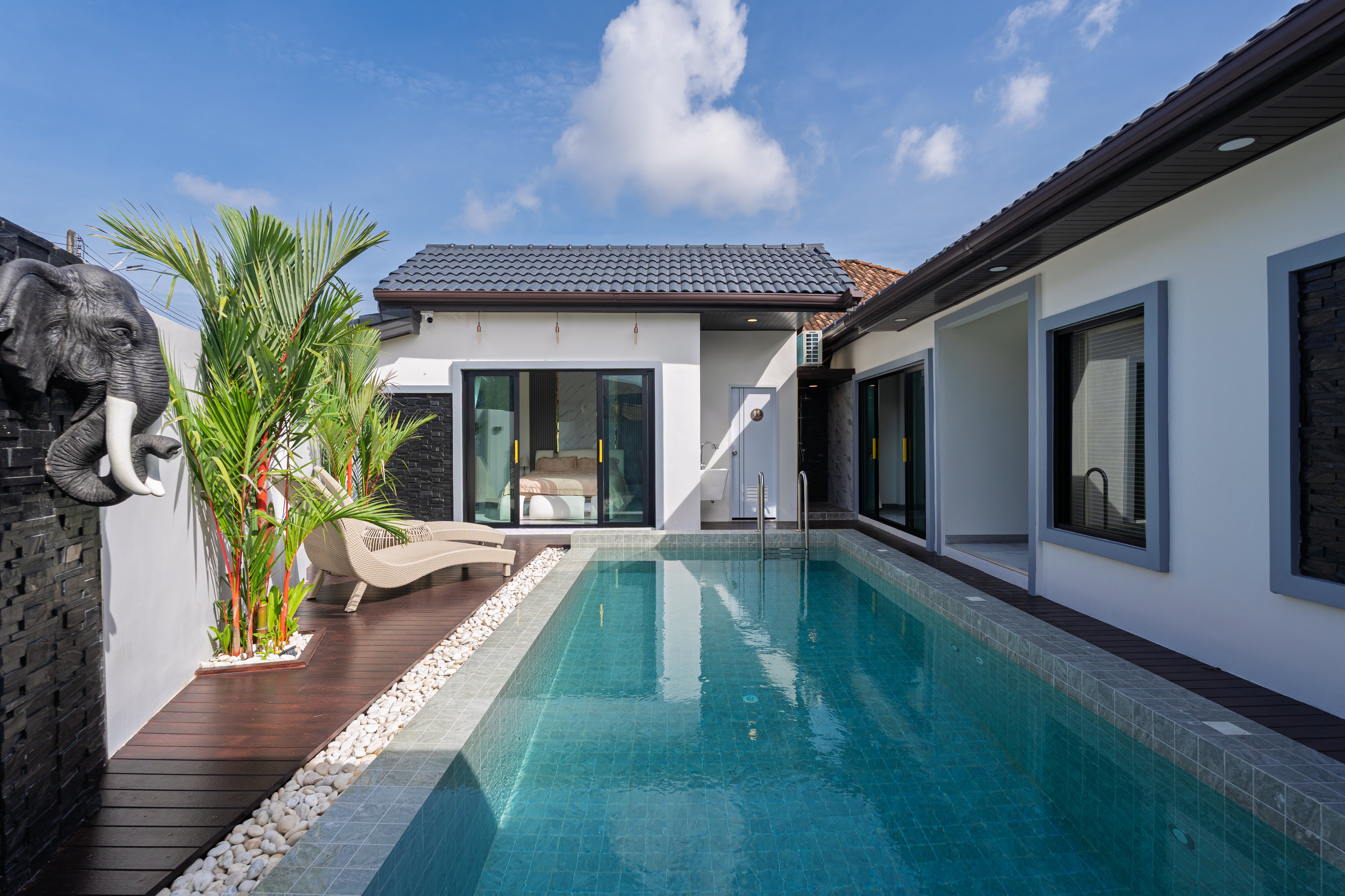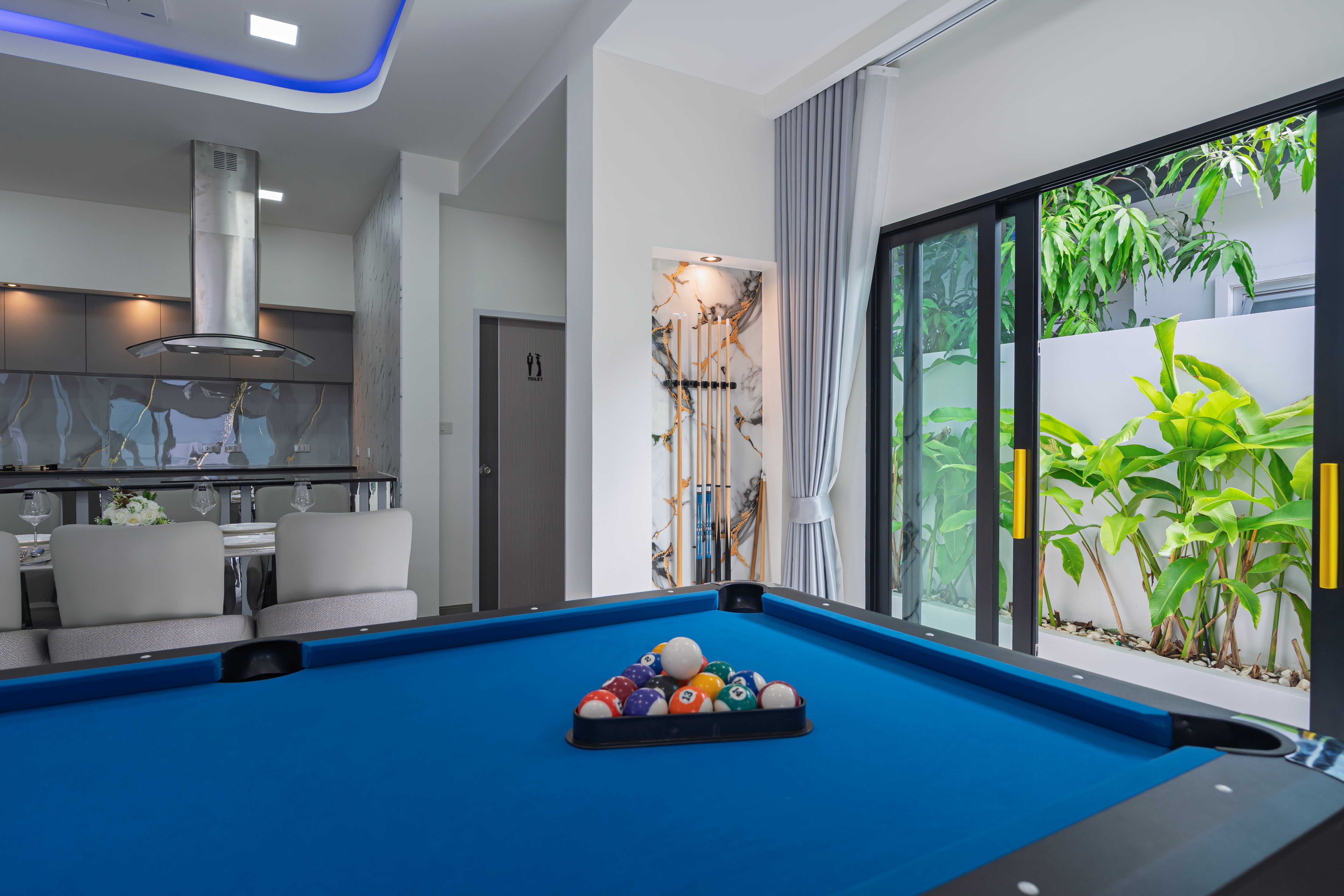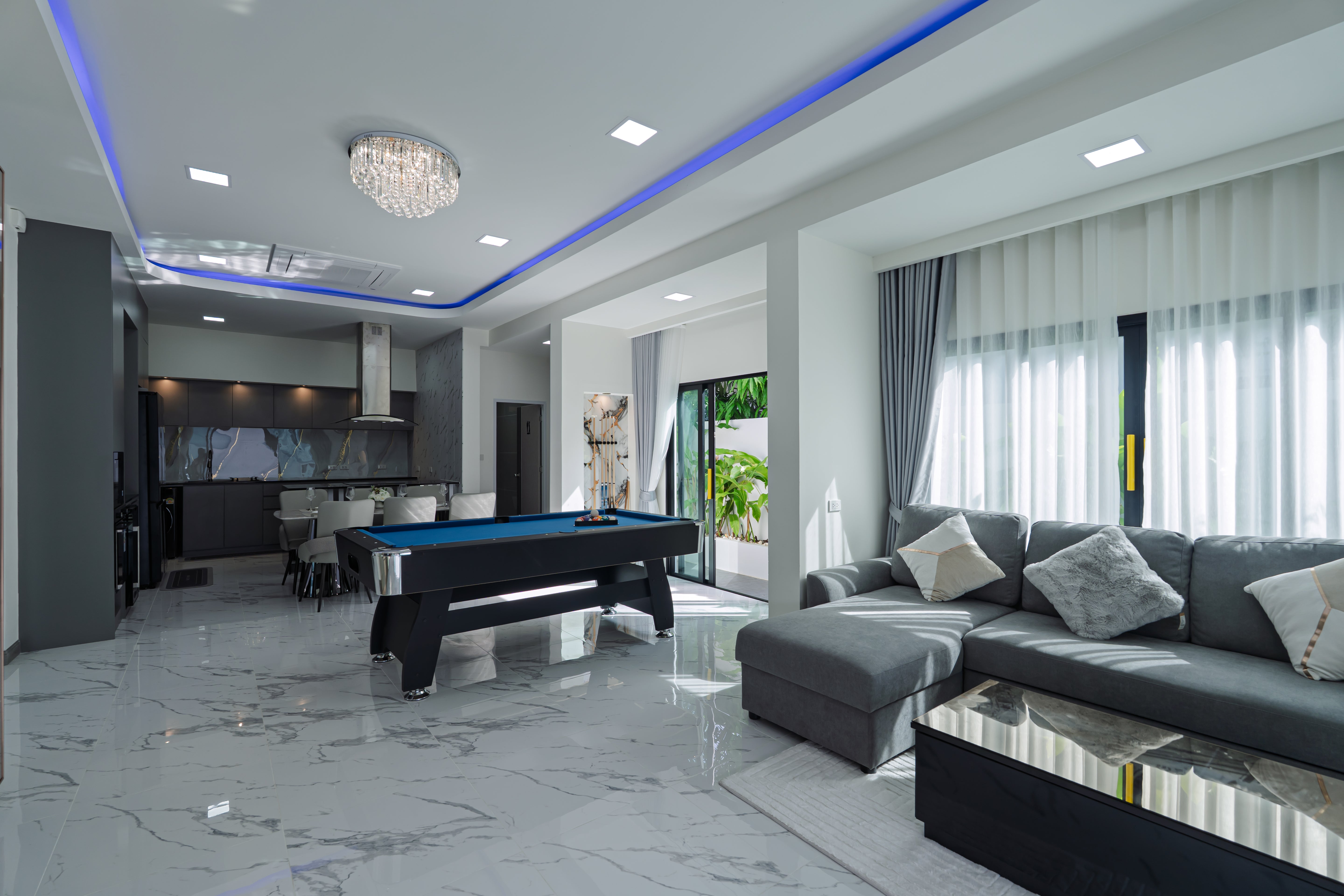 The lifestyle here is defined by ultimate relaxation and entertainment. Step inside to find a welcoming living space that includes a dedicated pool table, offering a fun and unique feature for residents and guests alike. The main attraction, however, is the sparkling private pool, complemented by a serene outdoor sala and a convenient outdoor shower, creating a perfect tropical oasis. This home provides a hassle-free living experience, with services for cleaning, garden, and pool maintenance all included twice per month, along with free Wi-Fi. It is a stunning example of a luxury villa Phuket that promises a refined and effortless life.