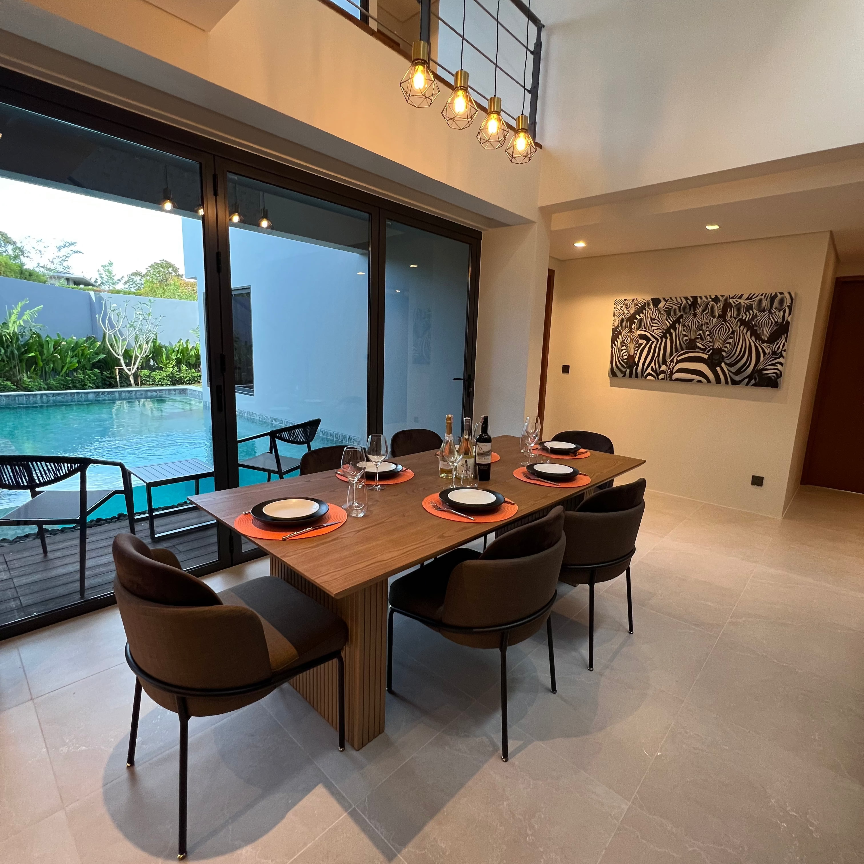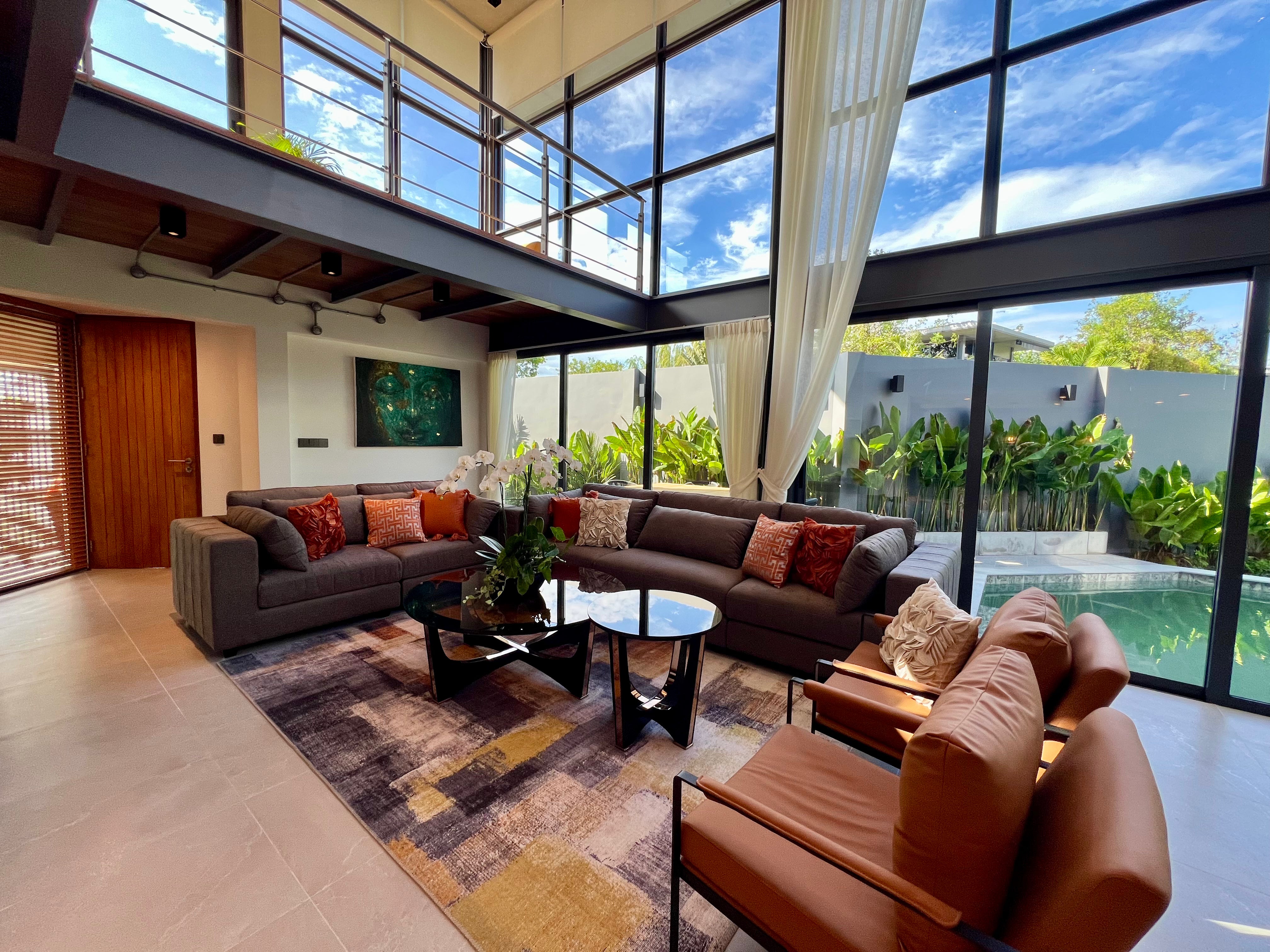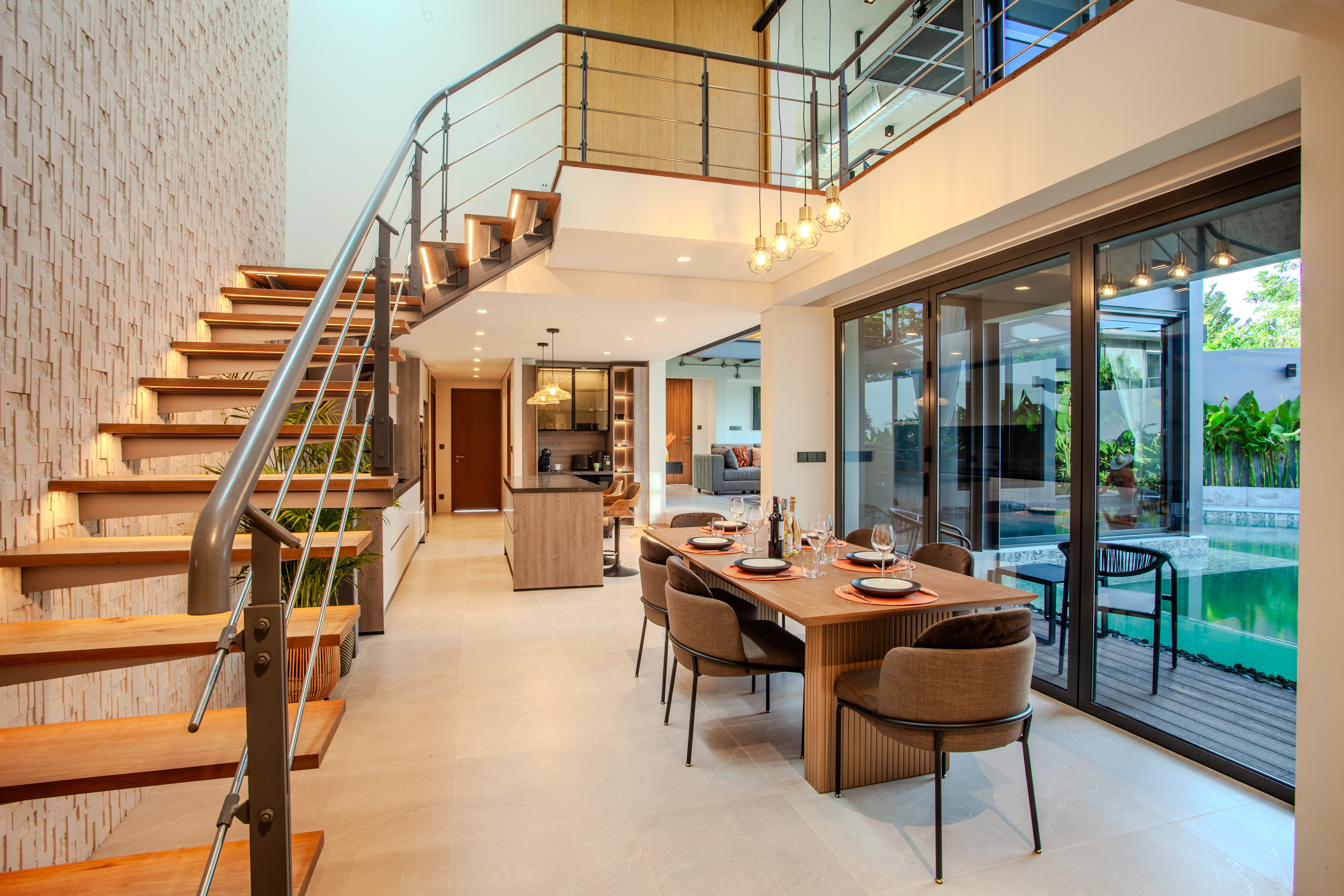 4-bedroom private pool villas for sale with customizable layout can be modified to 2–3 bedrooms. Fully off-grid and 100% solar-powered with smart grid tech and private water supply (4,000L tank). Includes open European kitchen, large living/dining, laundry, loft, and saltwater pool.Features: 2-car garage, centralized hot water, VRV aircon, dehumidifiers, LED step lights, fiber internet. Eco-friendly, efficient, and fully equipped for modern luxury living.