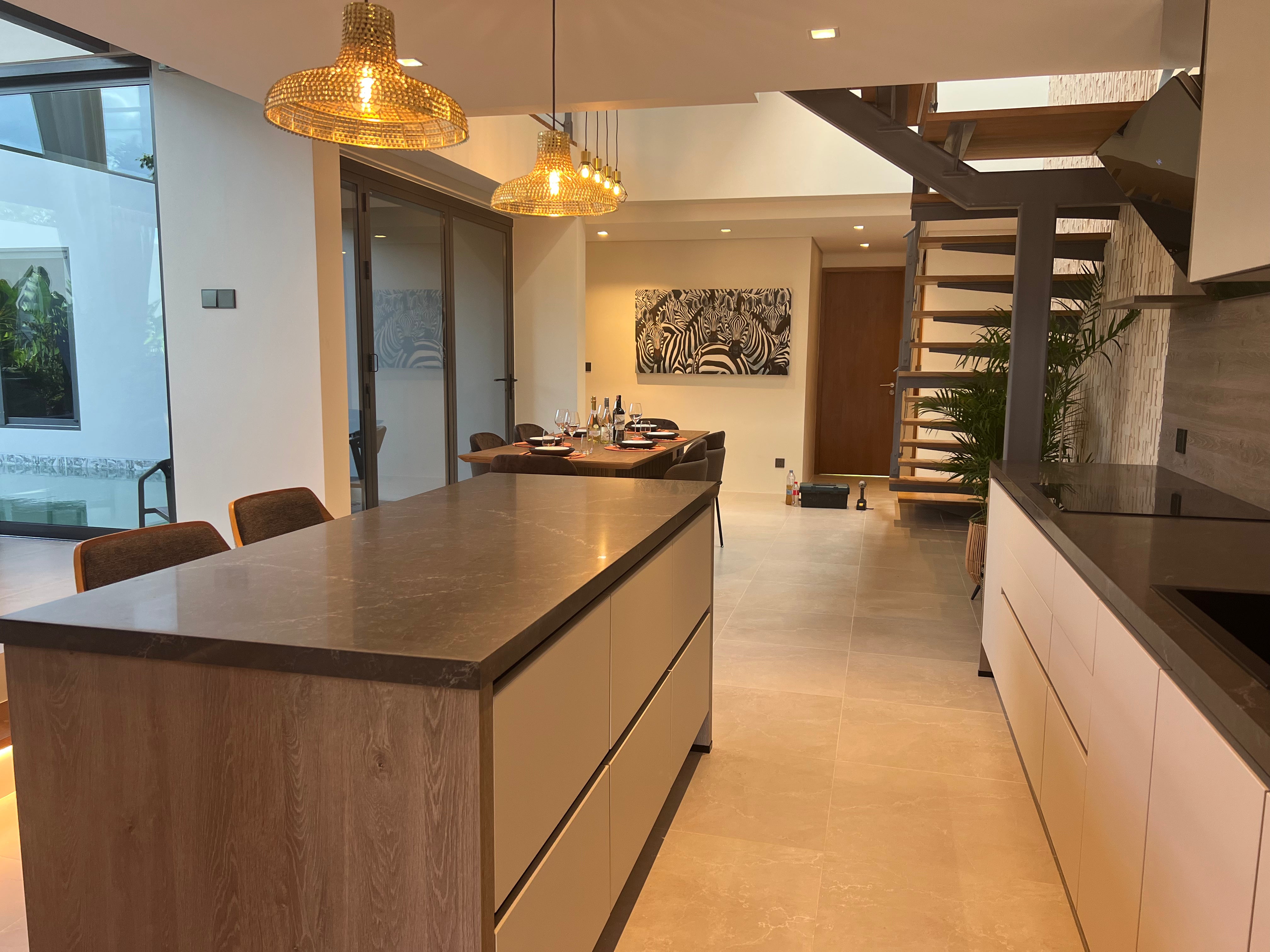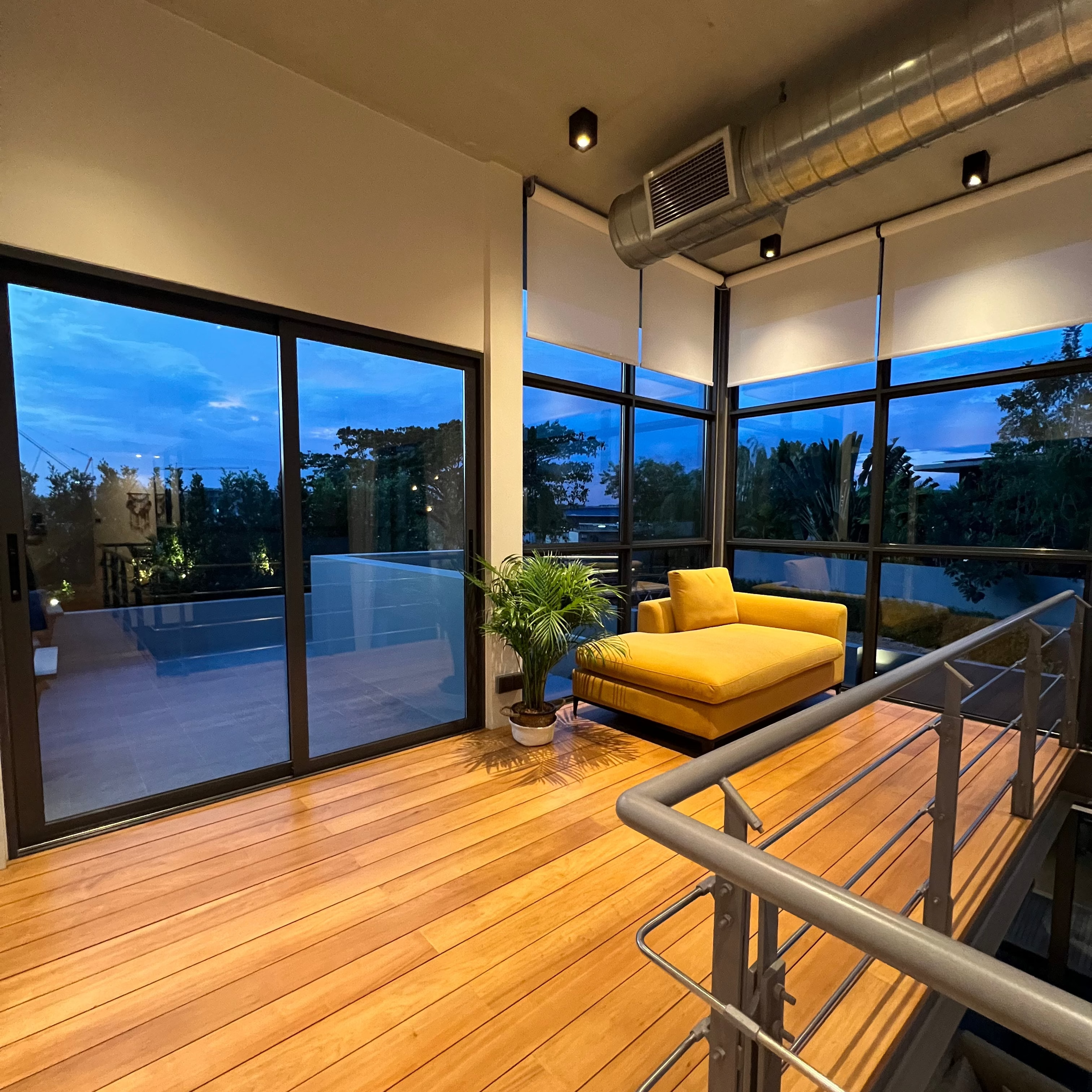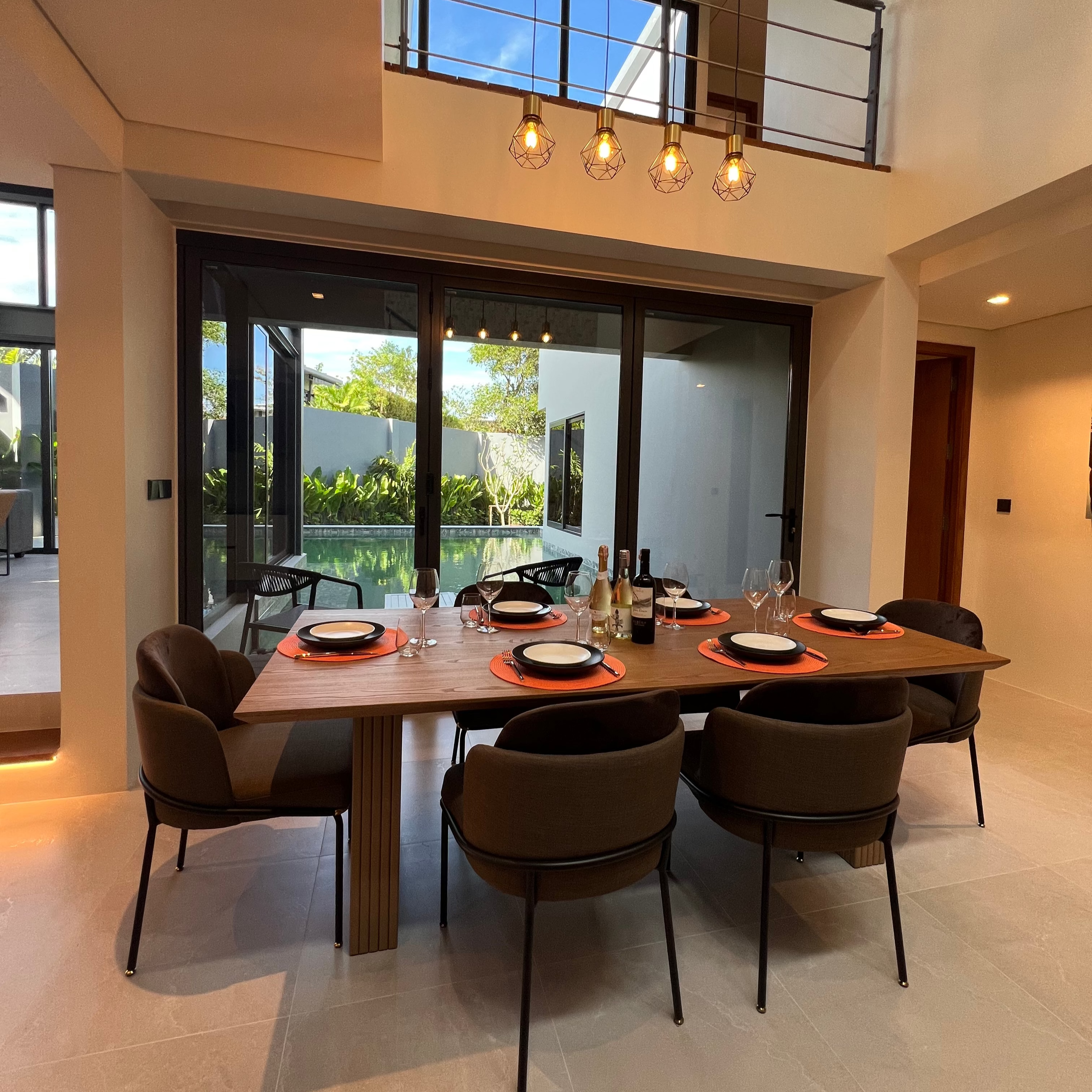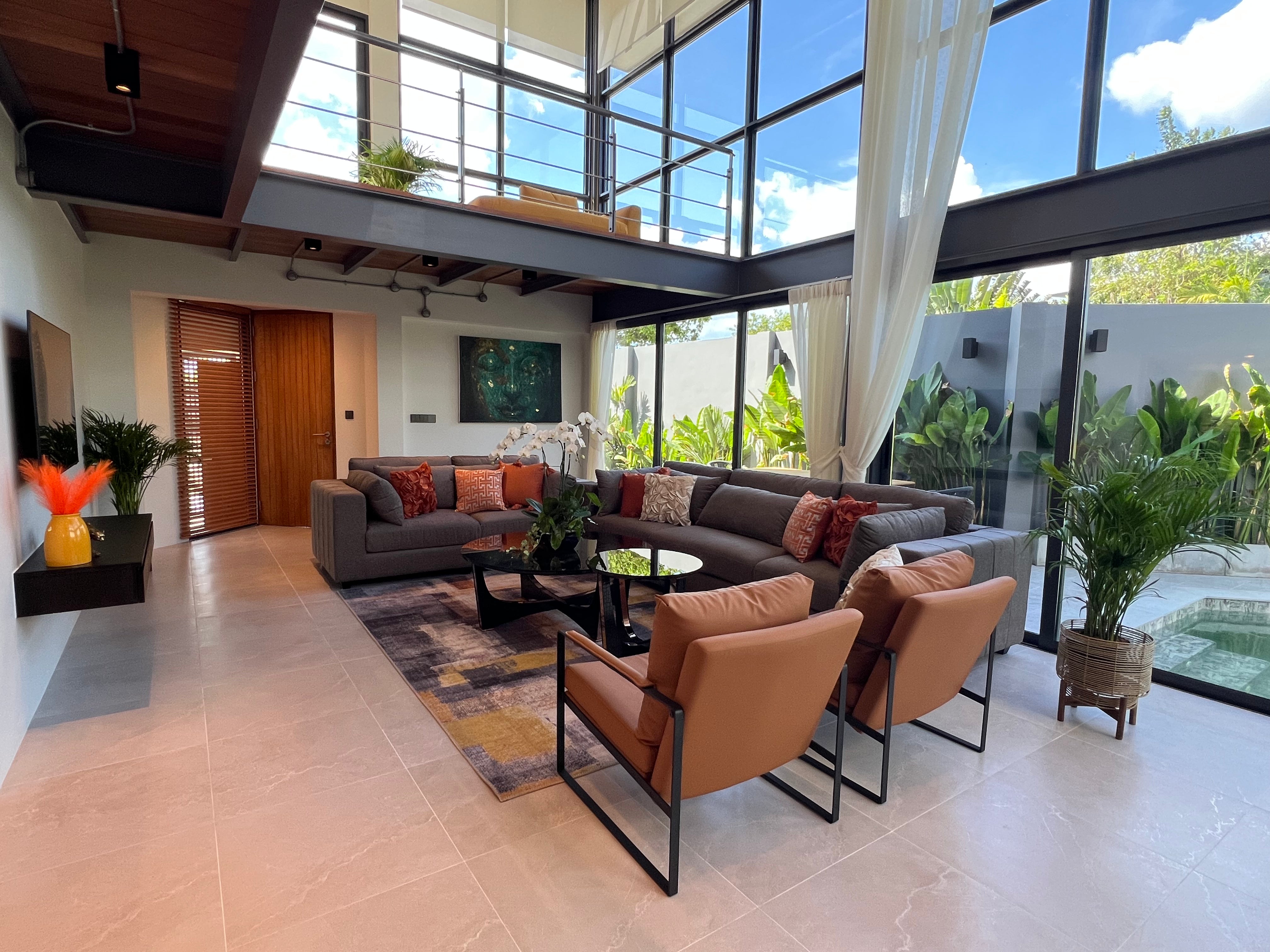 4-bedroom private pool villas for sale with customizable layout can be modified to 2–3 bedrooms. Fully off-grid and 100% solar-powered with smart grid tech and private water supply (4,000L tank). Includes open European kitchen, large living/dining, laundry, loft, and saltwater pool.Features: 2-car garage, centralized hot water, VRV aircon, dehumidifiers, LED step lights, fiber internet. Eco-friendly, efficient, and fully equipped for modern luxury living.
