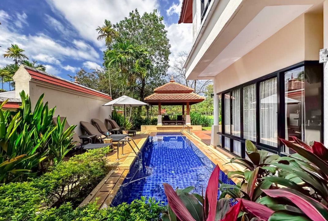The villa is located in the largest complex of Laguna - Angsana Villas Phuket, which features a fitness center, two shared pools, two children's pools, green lawns, and walking paths. The Laguna area also includes several five-star hotels, a golf course, tennis courts, spa salons, shops, and a large number of restaurants.