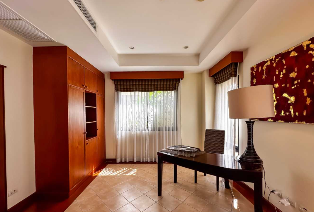This two-story villa comes with its own pool and features three bedrooms in the main house and one bedroom in a separate pavilion for the maid. The kitchen is equipped with all necessary appliances, utensils, and tableware.