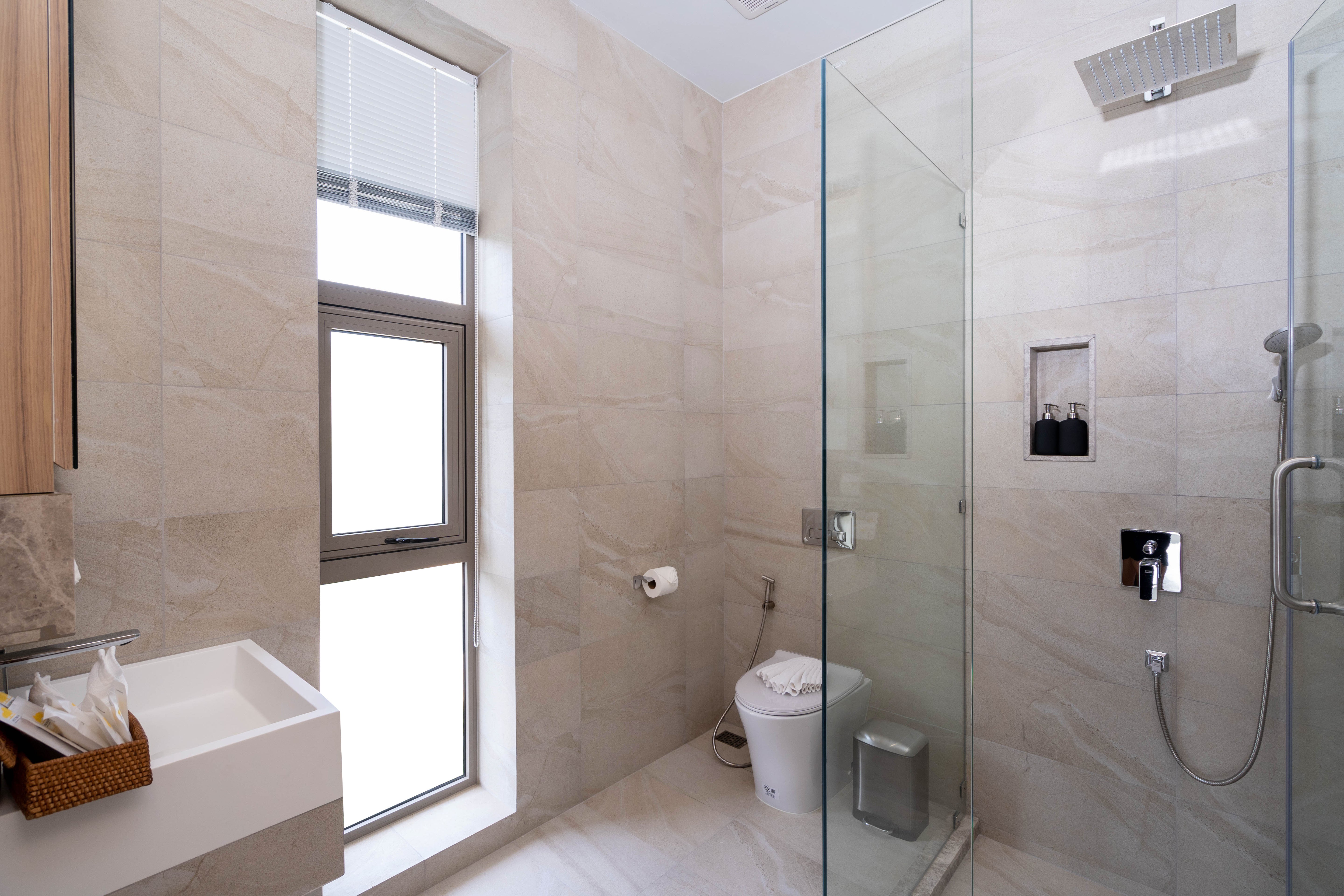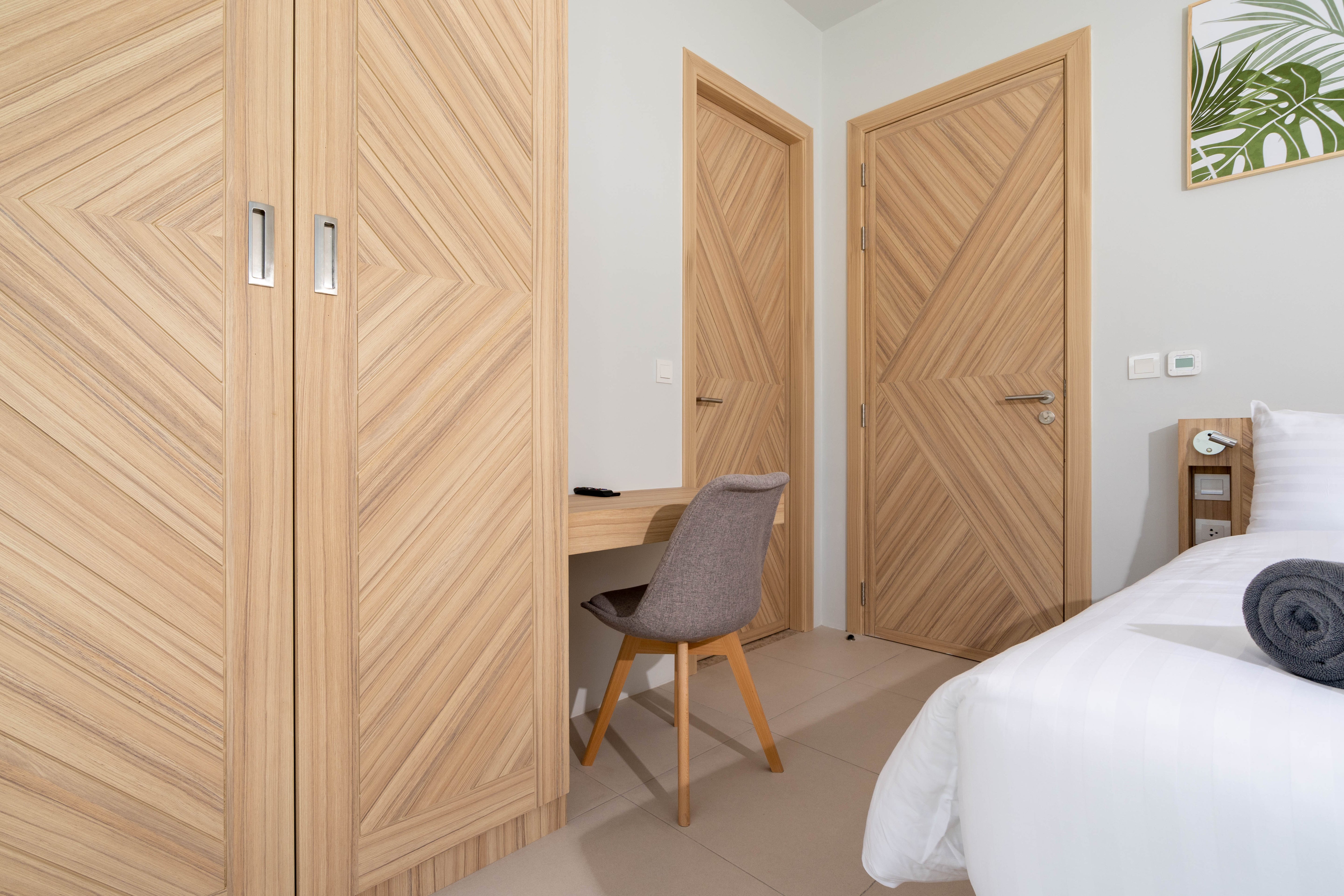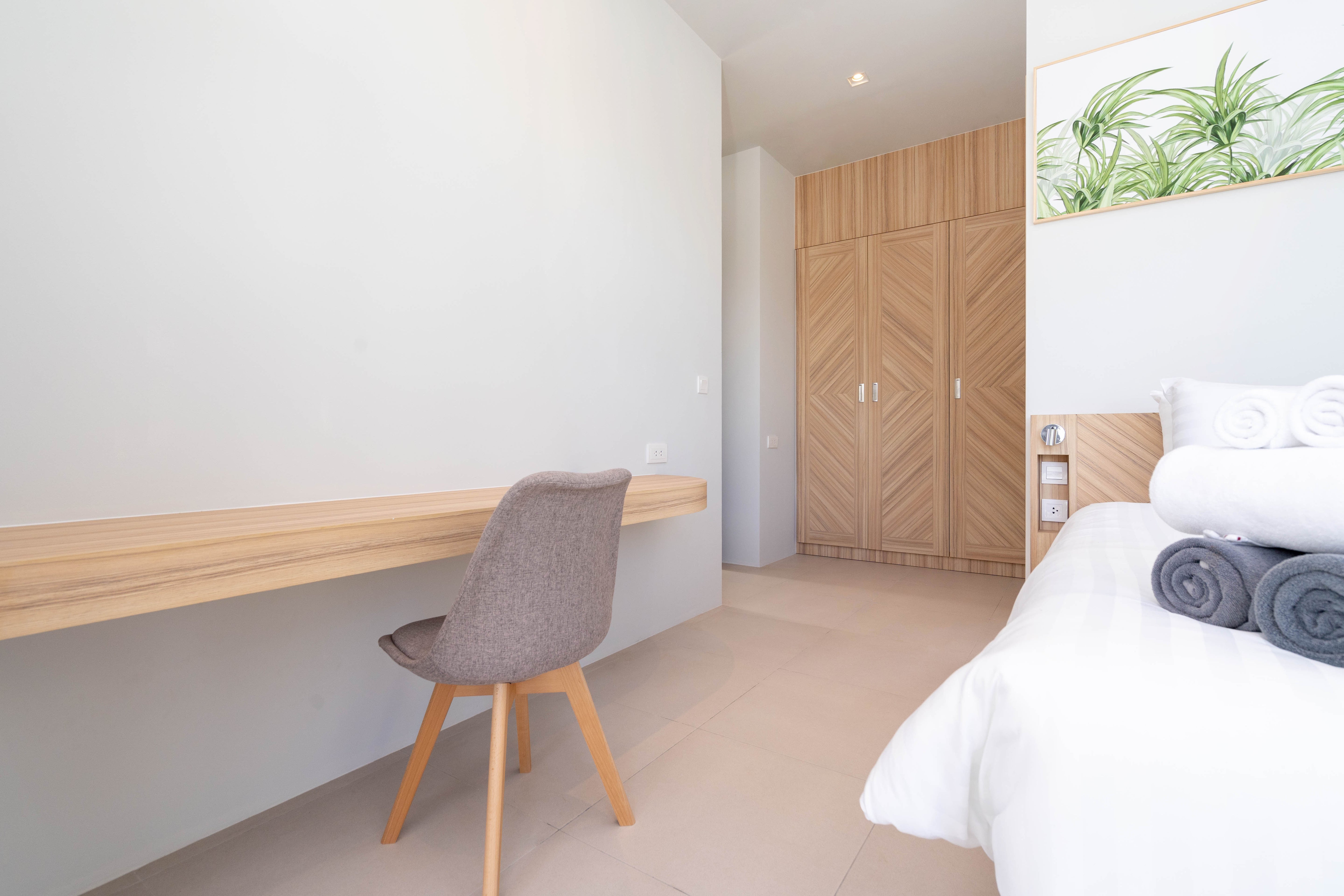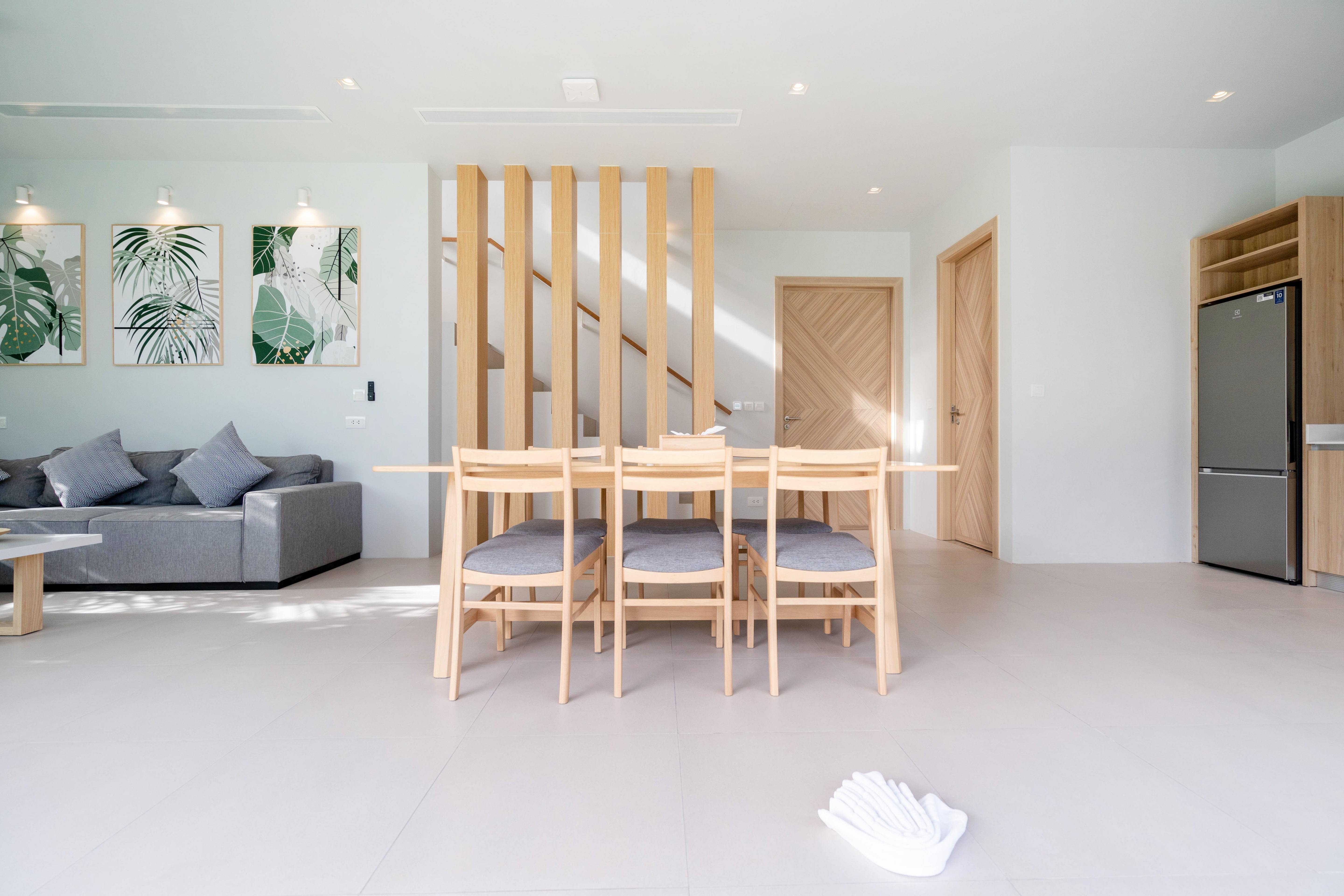 The 2-Bedroom villa is located in the Muslim part of Kamala, Phuket. The 2 story villa has its own private pool and its modern tropical style with white cream colours and light wooden features to suit the tropical environment and climate in Phuket. The eco-energy design with the large windows and doors allows natural airflow throughout the building creating a natural way of cooling it down.