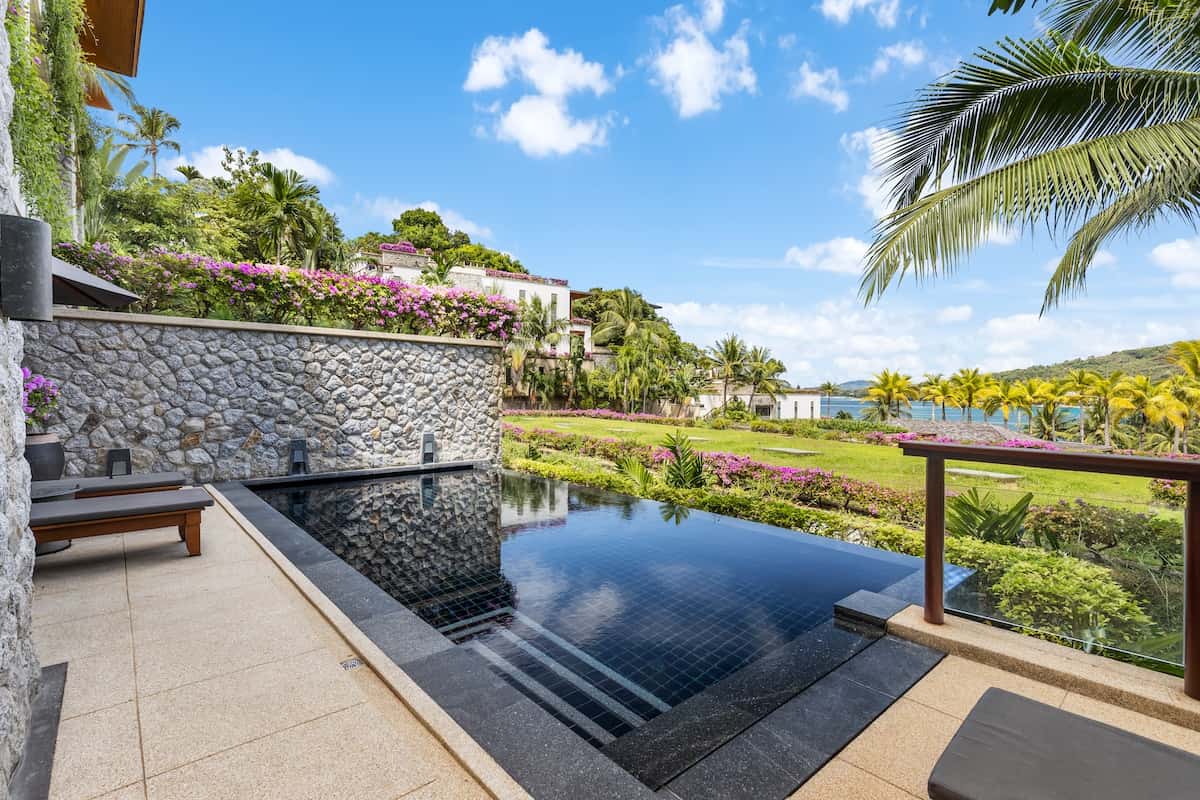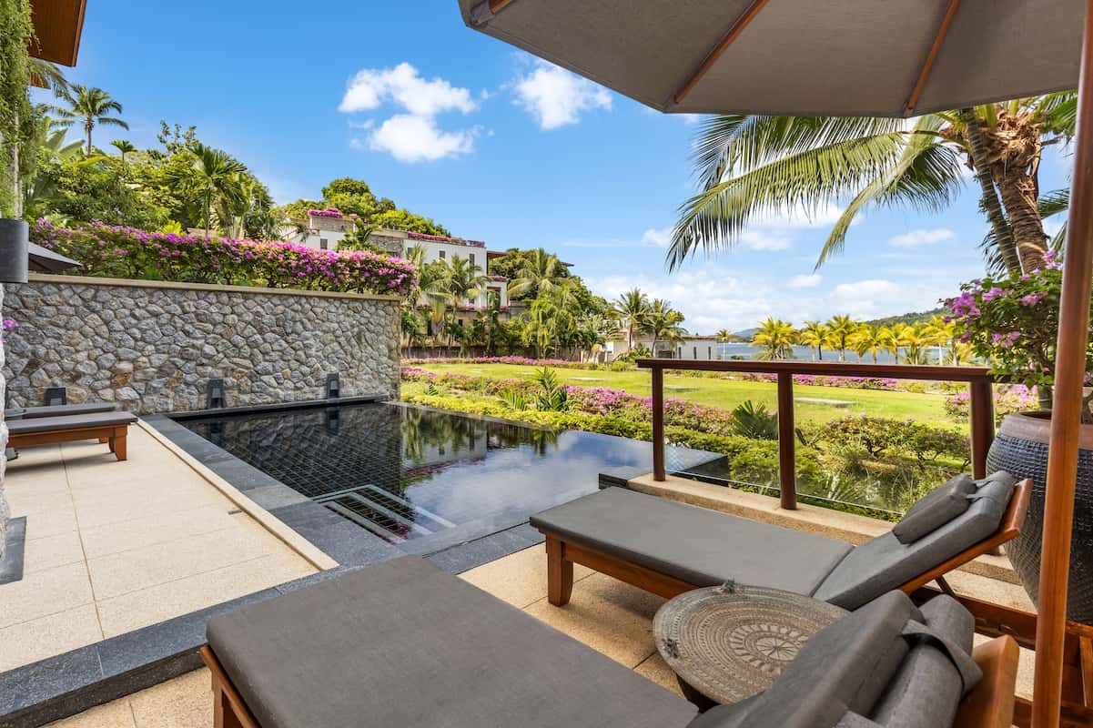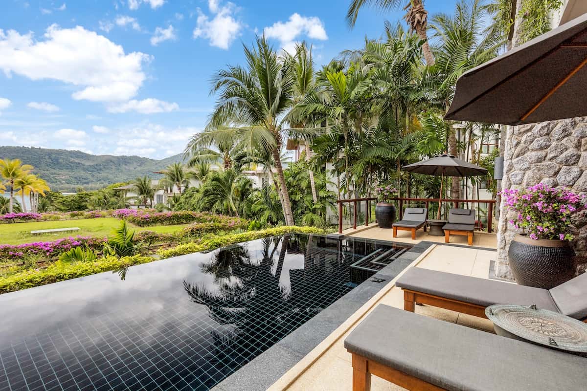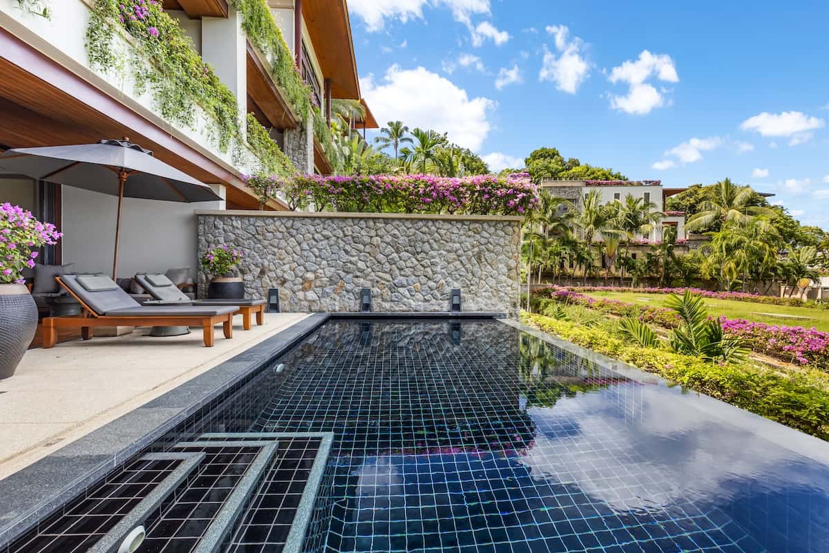 This exquisite Three Bedroom Pool Residence Andara Kamala presents a wealth of luxurious amenities, including a secluded terrace, a pristine swimming pool, and meticulously landscaped gardens, all accompanied by breathtaking sea views.