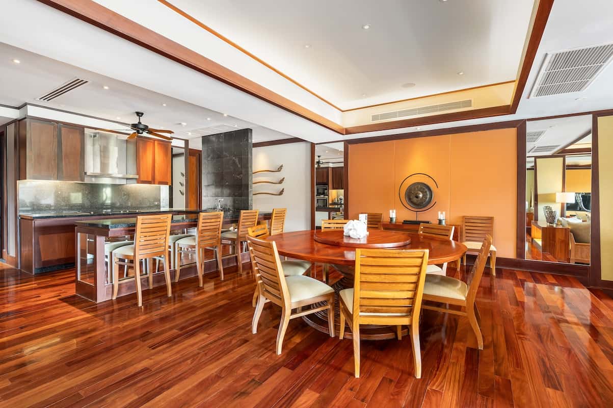 Conveniently situated within a leisurely stroll of Kamala Beach, widely acclaimed as one of southern Thailand’s most picturesque coastal stretches, this expansive three-bedroom, four-bathroom apartment features an open-plan living, dining, and kitchen space.