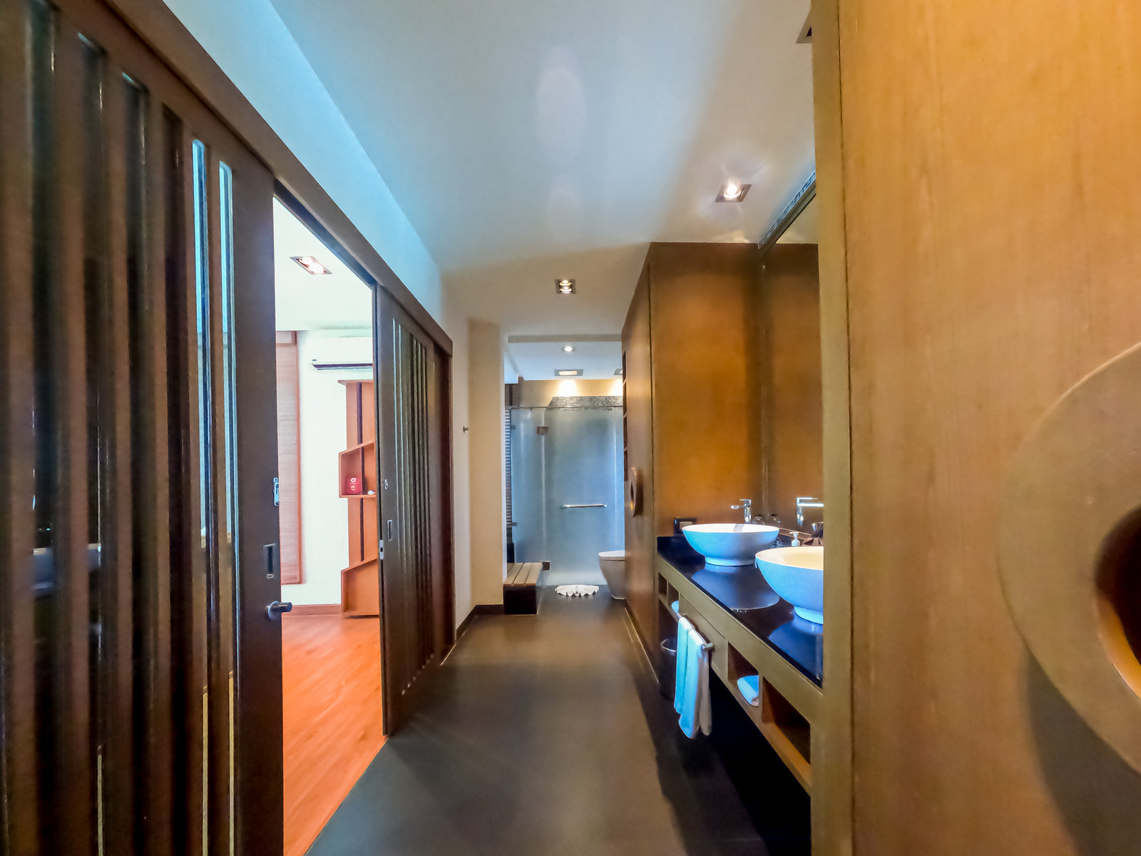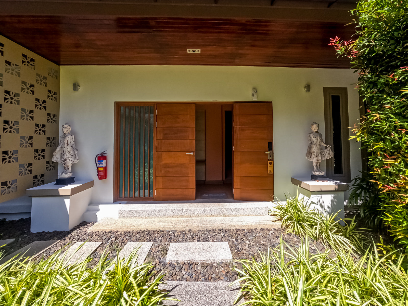 Villa V1 Three Bedroom Pool. the villa is positioned downhill from the access road and the private carport, the main entrance is located at the upper level together with the two double guest bedrooms and their ensuite bathrooms.