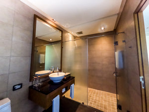 At First Floor living in kitchen, master bedroom (with Jacuzzi), Guest Bathroom with shower. Open area sheltered and pool deck.