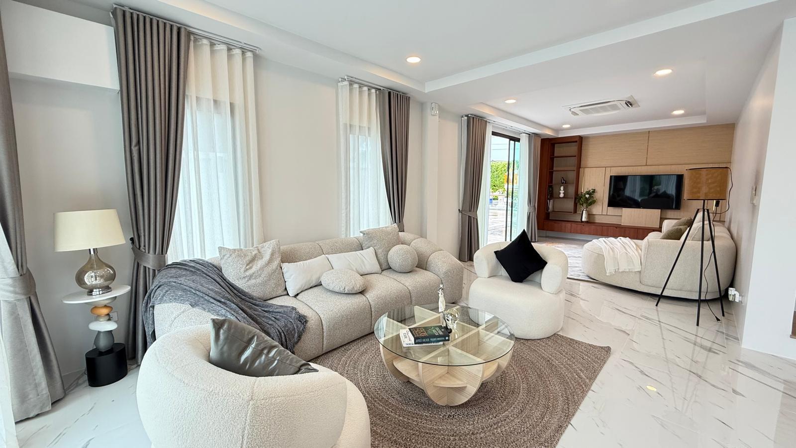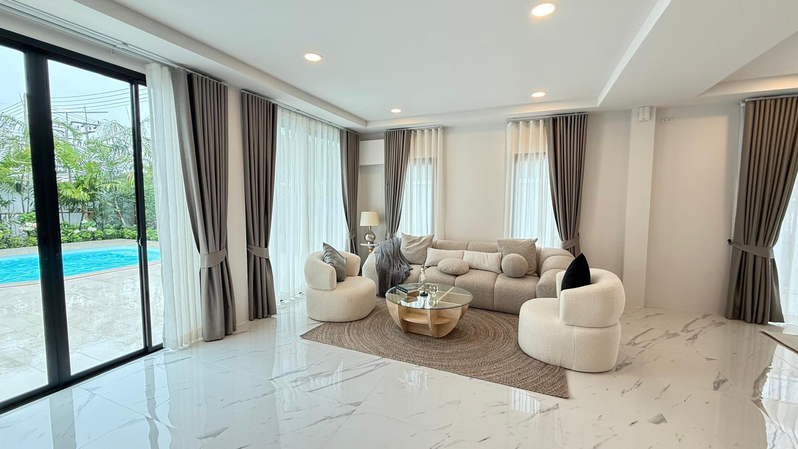Every detail of this villa reflects modern sophistication, from the well-equipped kitchen and ample storage space to the seamless indoor-outdoor transitions created by expansive glass doors. With 24-hour security and the privacy of a gated community, residents can enjoy peace of mind while surrounded by premium finishes and resort-style amenities. This home truly represents one of the best opportunities in the Phuket real estate market.
