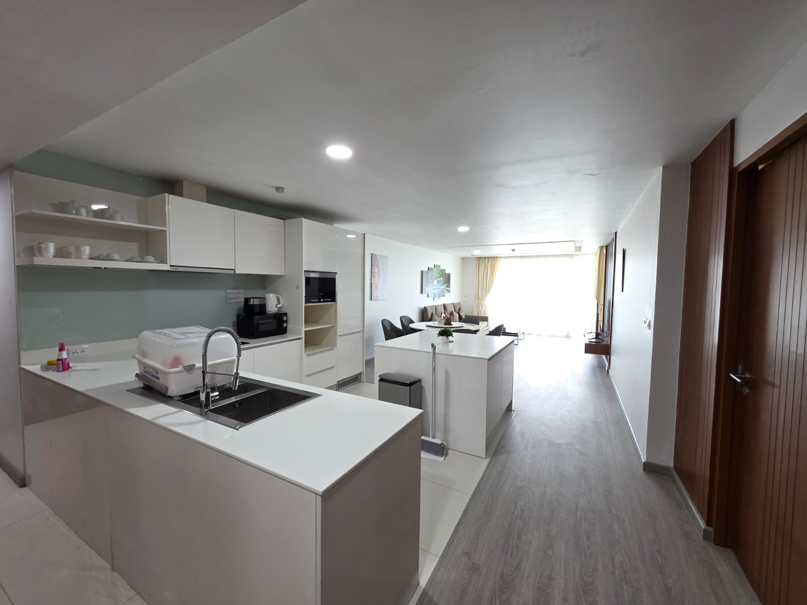This spacious condo spans a generous 153 square meters. It features two comfortable bedrooms and two modern bathrooms. Additionally, the layout includes a practical Western kitchen. The living area is both bright and inviting. Therefore, it is perfect for relaxing after a busy day.