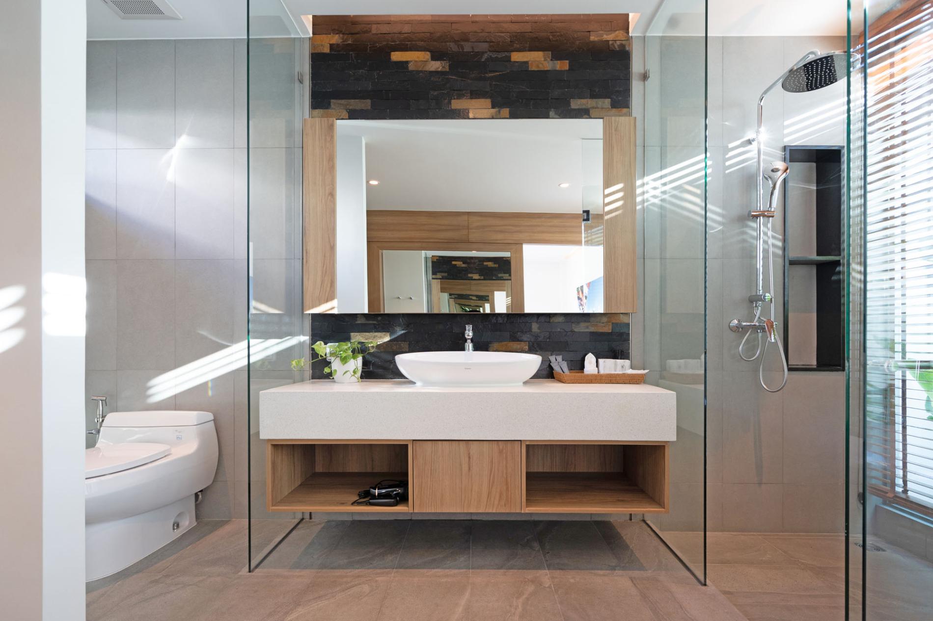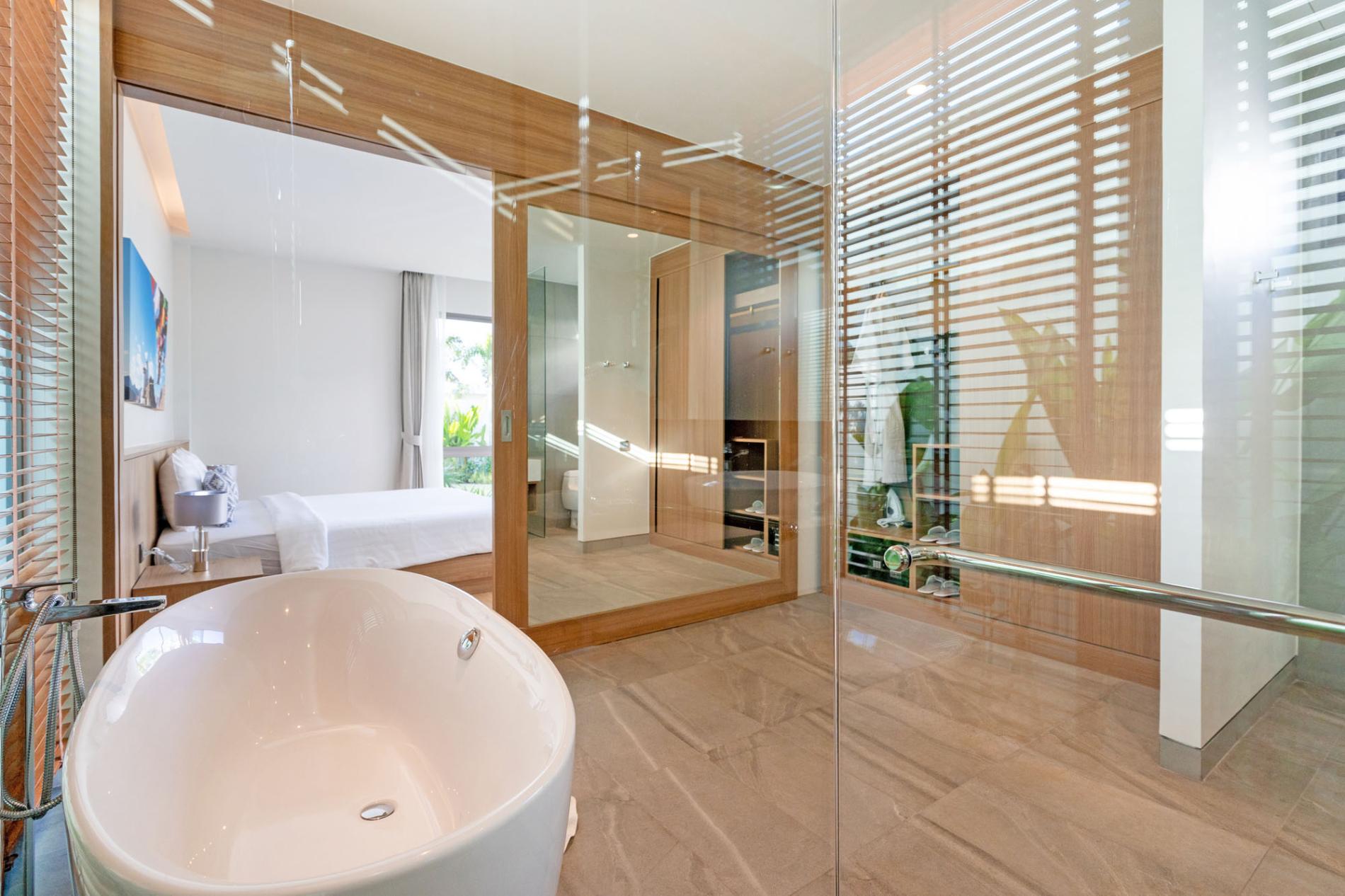 The 2 Bedroom Deluxe Garden Pool Villa at Shambhala Grand Villa is a spacious 480m² and features floor-to-ceiling windows, a fully functional kitchen and comfortable living area. For guest's viewing pleasure, there is a Smart TV and free WiFi throughout the villa. The two bedrooms have king-size beds and plush linens. The bathrooms have an en-suite bathtub. The villa boasts pool views and a nice area for relaxing on the terrace surrounding the private swimming pool and a big garden.