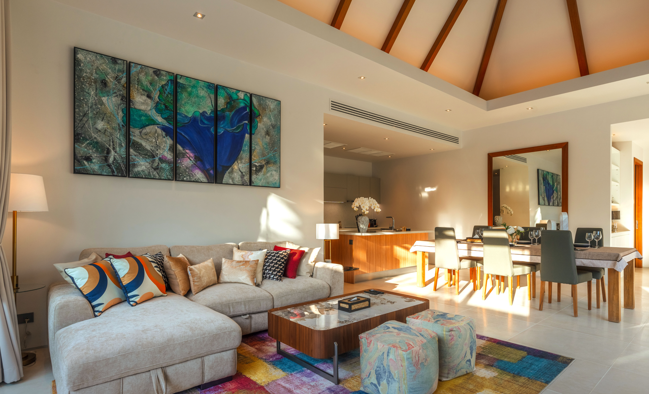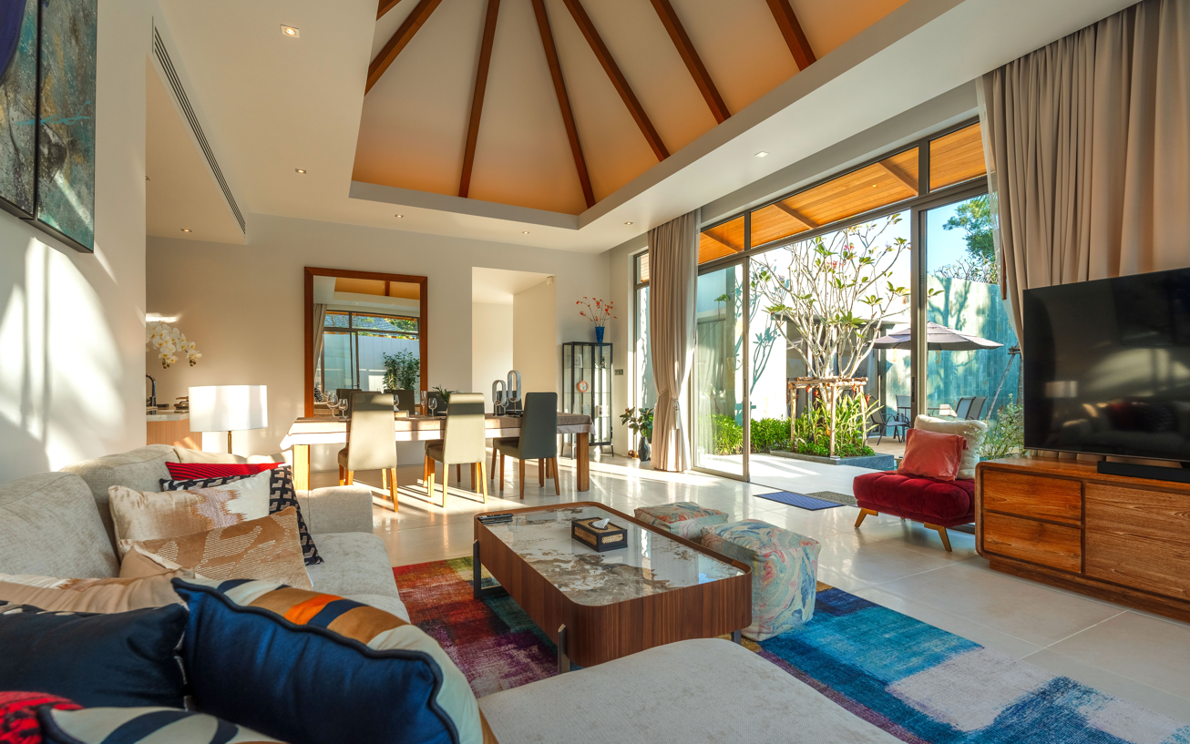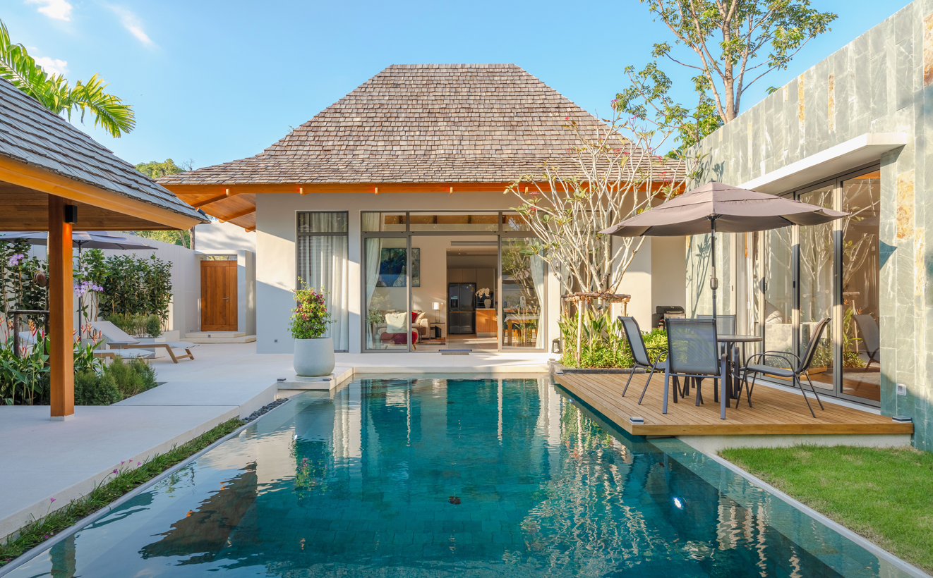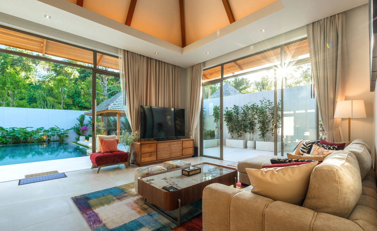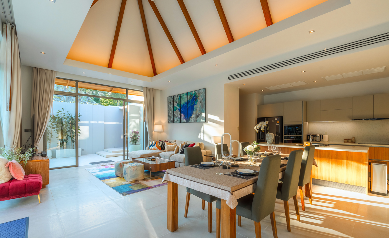 This exceptional holiday home seamlessly blends luxury and warmth amidst breathtaking natural surroundings. Ideally located near Bang Tao, Layan, and Nai Thon beaches, it offers convenient access to the prestigious Laguna area on Phuket’s west coast. Villa Flora is nestled within one of Phuket’s newest upscale residential zones, providing easy and quick access to both Layan and Bang Tao beaches.