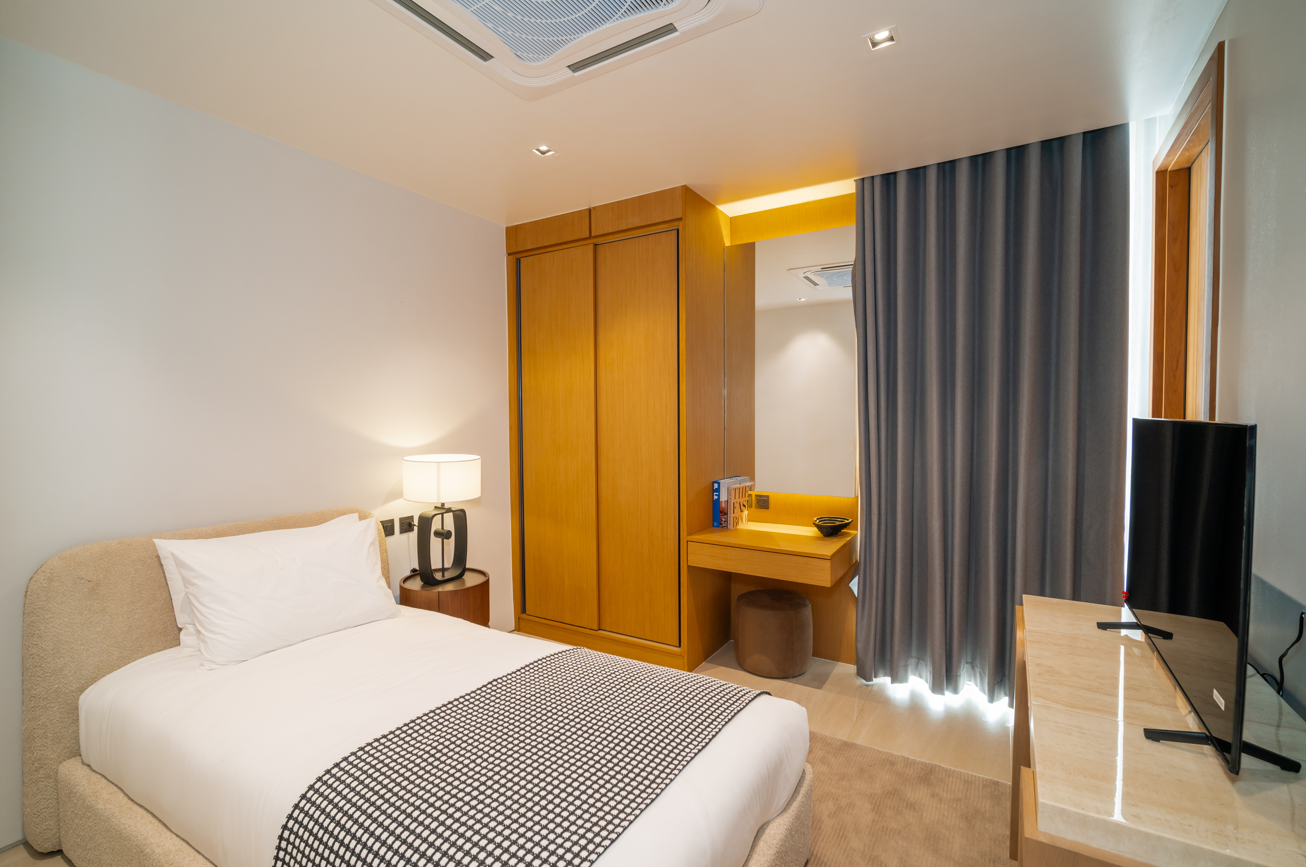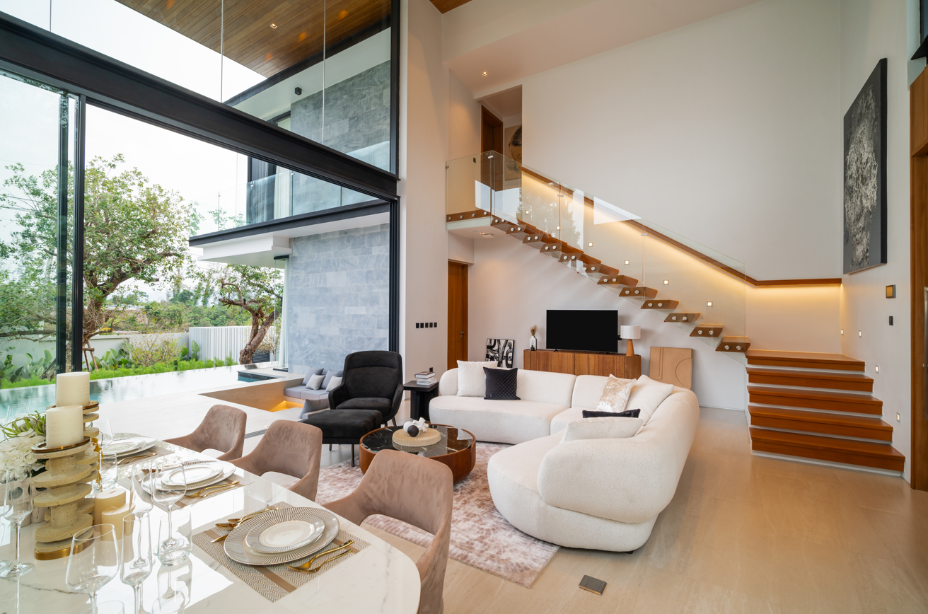 Nestled in the tranquil surroundings of Layan, this location offers a peaceful escape from the hustle and bustle of the city. Just a 10-minute drive brings you to the pristine Layan Beach, while the charming Boat Avenue is nearby with its wide selection of restaurants and retail shops. The renowned Laguna resort complex, featuring an 18 hole golf course, is also conveniently accessible. For more extensive shopping needs, Lotus's Thalang and Makro are just 15 minutes away by car. Phuket International Airport is approximately 20 minutes away, ensuring smooth and convenient travel connections.