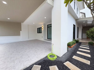 This two-storey townhouse for sale in Phuket offers a unique blend of comfort, functionality, and prime location. Situated in Koh Kaew, one of the island’s most convenient residential areas, the property is ideal for families seeking a permanent home or investors looking for strong rental potential in the Phuket real estate market. The corner position adds privacy and space, with a land area of 31.4 sq.w. and a thoughtfully designed layout. Inside, the home features three well-appointed bedrooms, three bathrooms, and spacious living areas that balance modern comfort with practical use. The open-plan design ensures abundant natural light, while recent extensions, such as a fitted kitchen with counter, roofed carport, and side balcony, enhance the property’s value. The garden area has been landscaped, creating a serene retreat for outdoor relaxation.