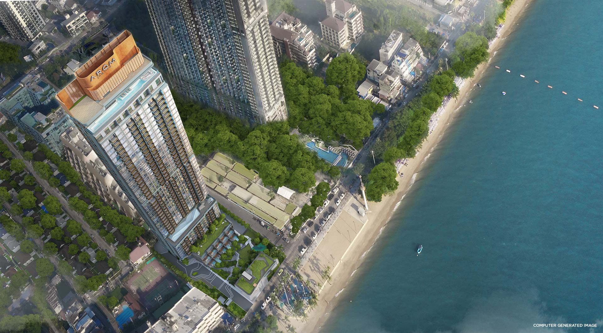Set in the exclusive Wongamat area, just minutes from central Pattaya, Terminal 21, Central Marina, and the Temple of Truth, this development grants direct beach access and effortless proximity to upscale dining and shopping