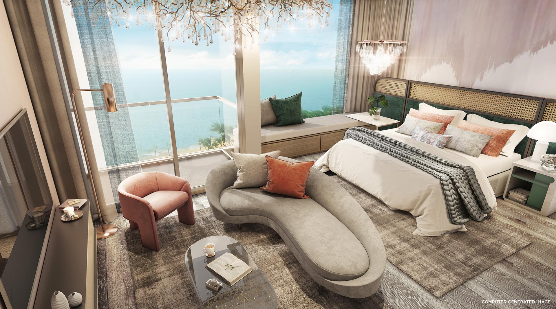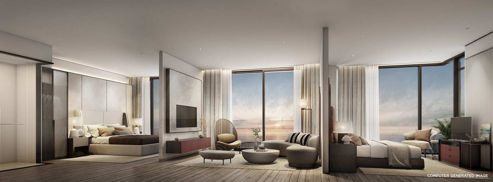 With only 319 units in the tower and just seven per floor, this project ensures a private, villa-like atmosphere. Meticulous architectural design radiates elegance and modern sophistication • Interior spaces utilize sustainable materials for comfort and style