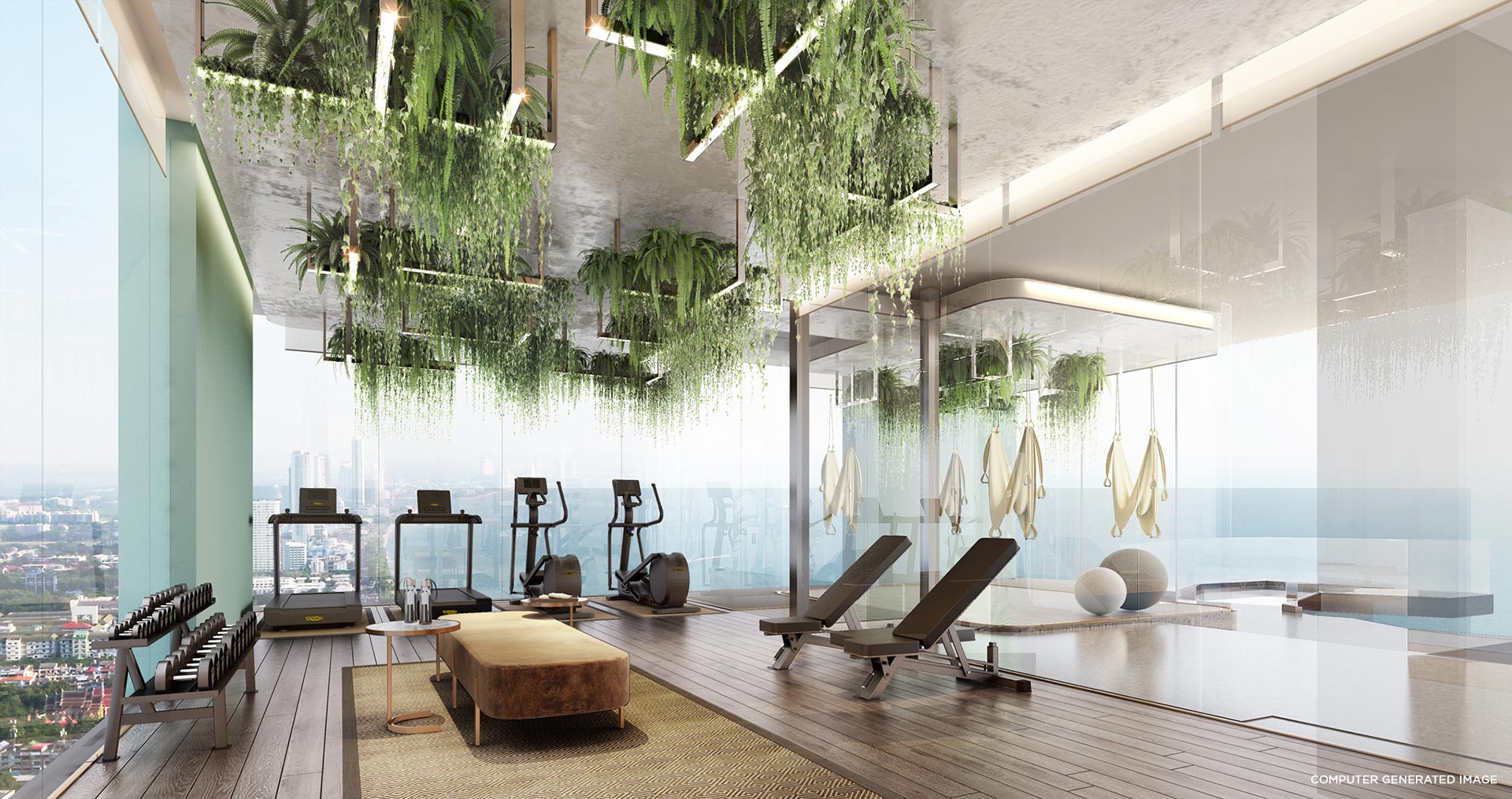 An infinity rooftop pool, sky lounge & Jacuzzi, fitness center, spa & onsen, sauna, steam room, cinema, co-working space, kids' play area, and lush landscaped gardens. Security and exclusivity are ensured with 24-hour surveillance and access cards