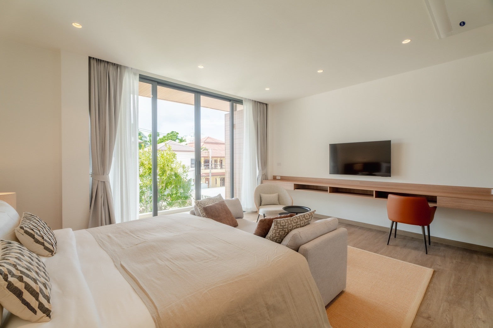 The interiors are beautifully modern, featuring contemporary amenities and tasteful decor. Its serene ambiance and spacious outdoor area complement Phuket's sunny climate, promising relaxation. With an ideal location, upscale amenities, and a tranquil vibe, this residence stands surrounded by prominent tourist attractions.