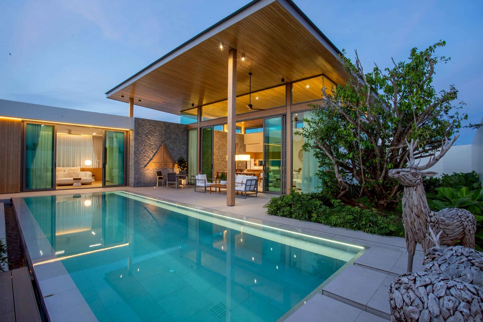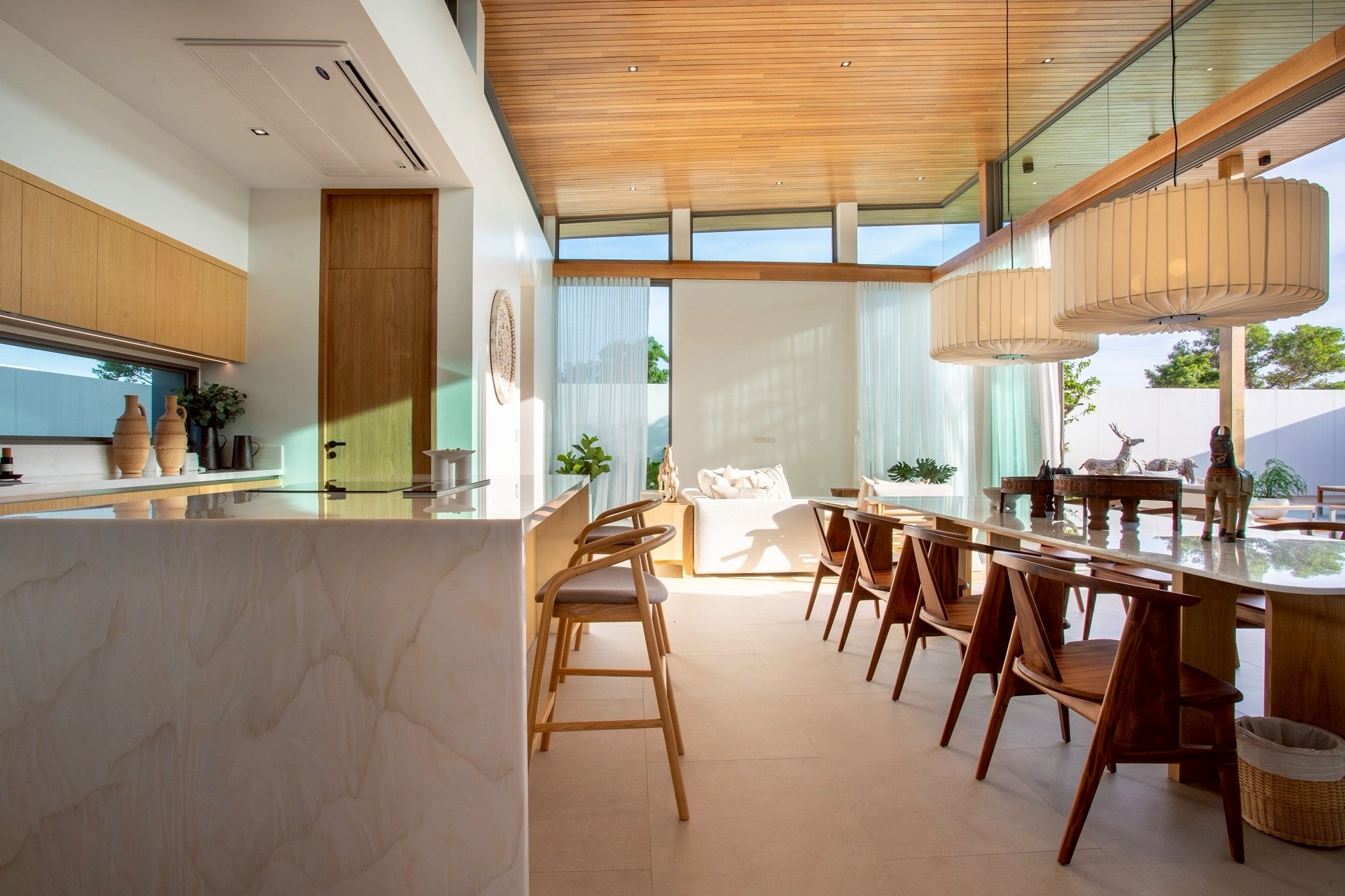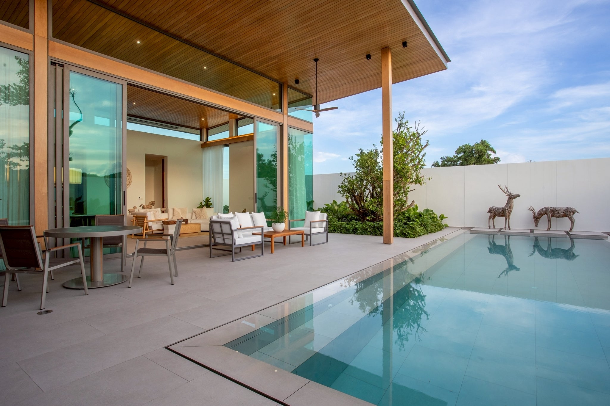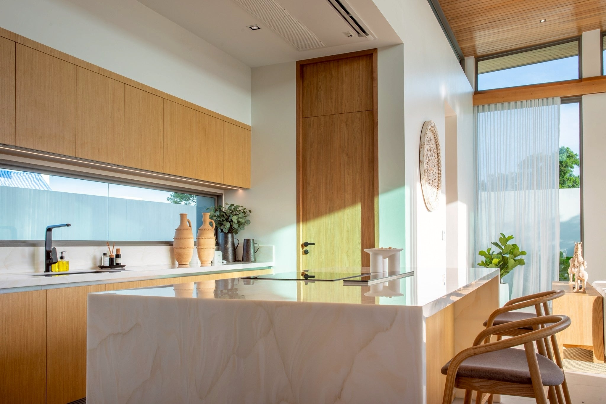 The villa’s amenities are designed to enhance the residents’ living experience. The integration of smart home systems provides modern conveniences, while the fully equipped kitchen caters to the culinary needs of even the most discerning homeowner. Built-in wardrobes add a touch of convenience, perfectly blending functionality with aesthetics. Poolside lounges, sundecks and gardens add charm to the outdoor spaces, creating a perfect balance between indoor and outdoor living. Stone accents add a touch of sophistication.