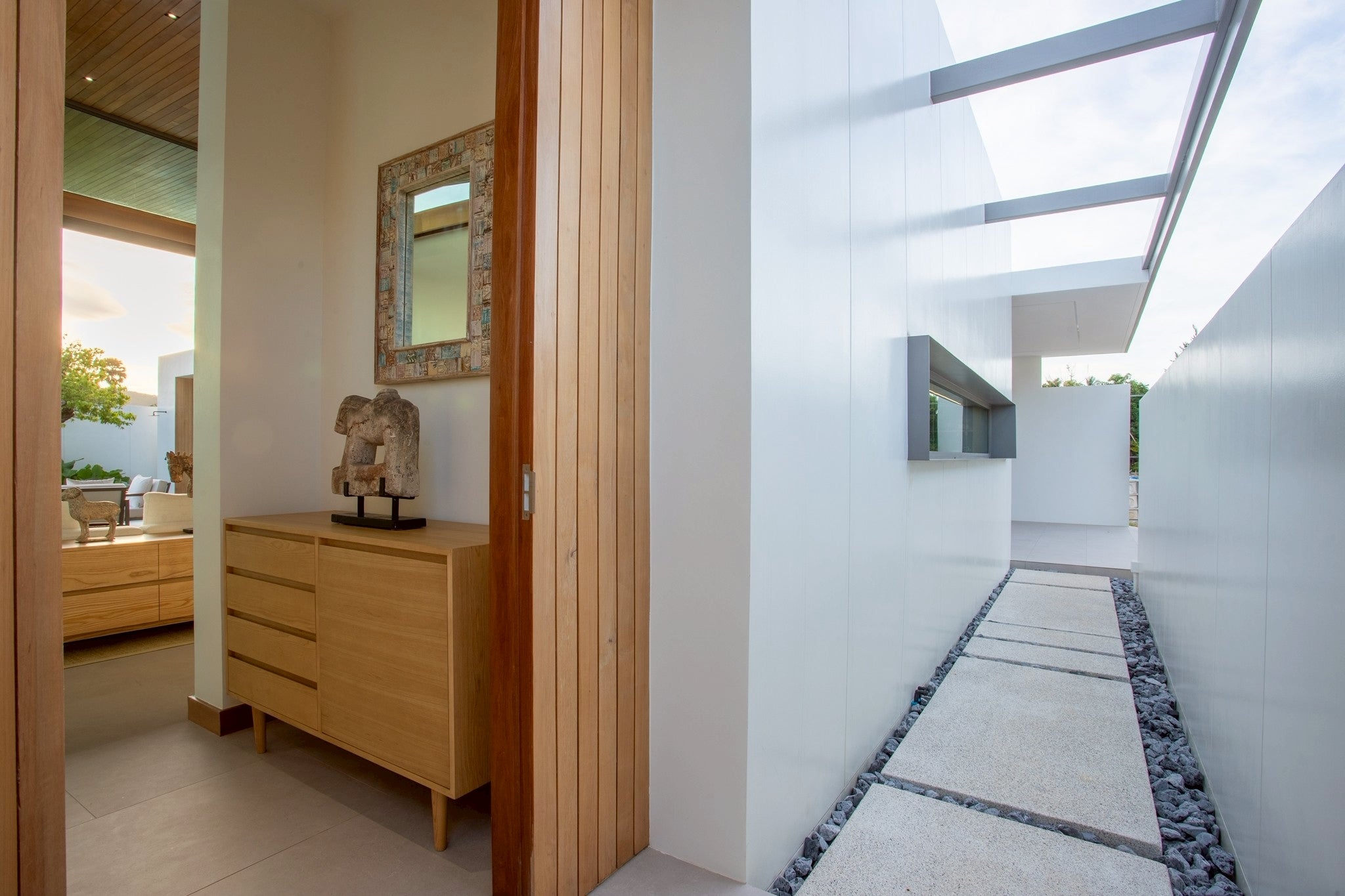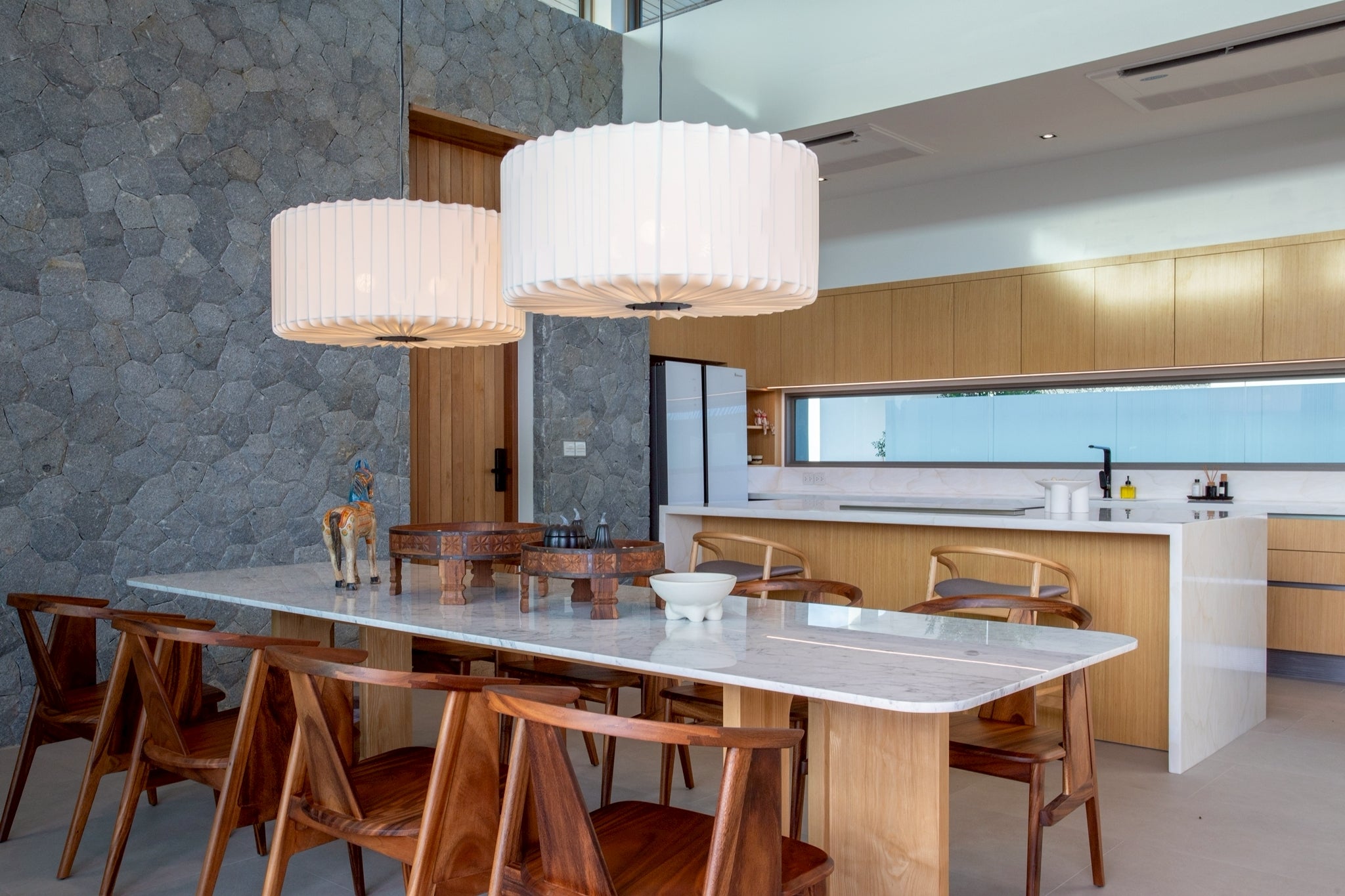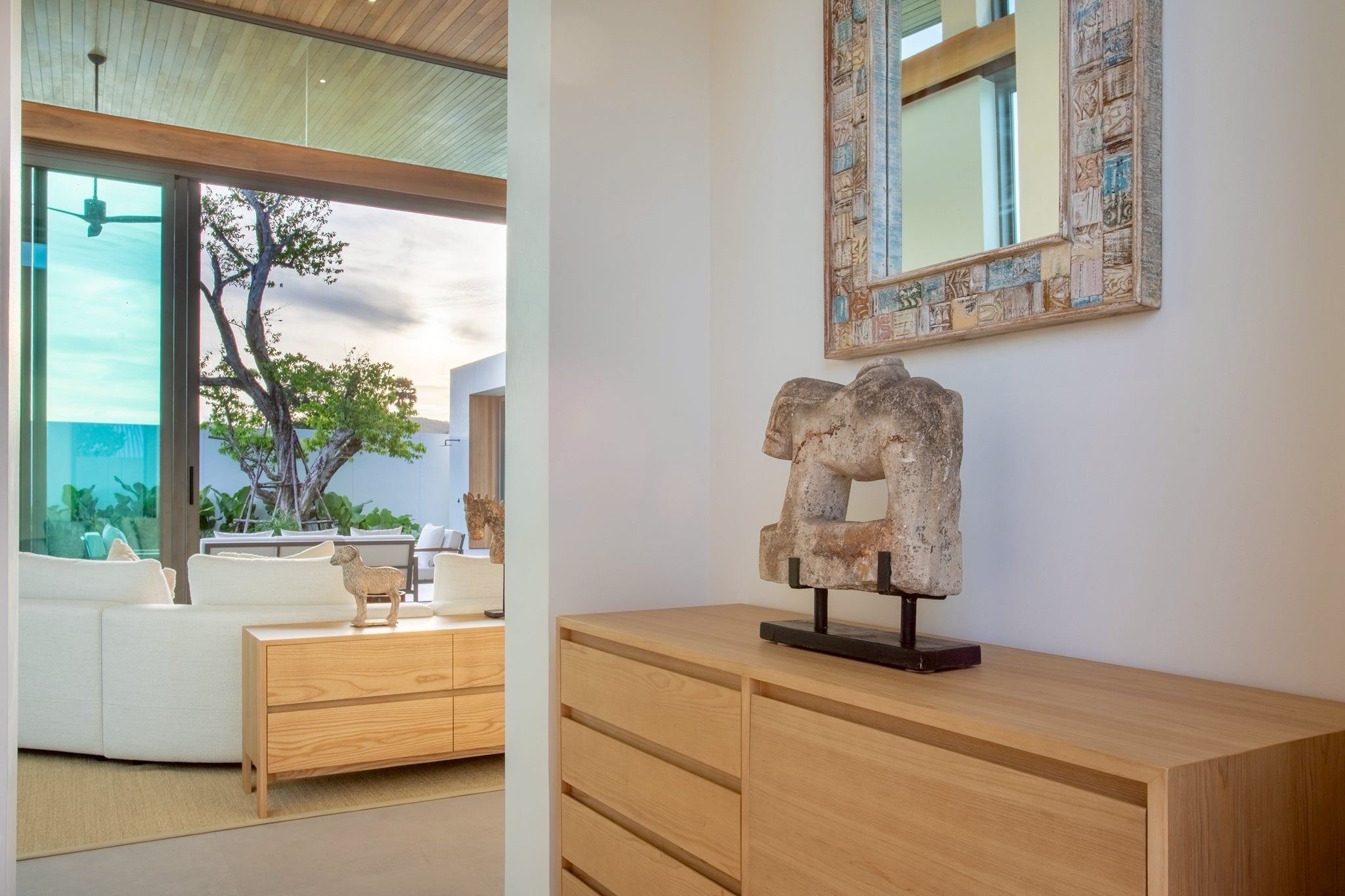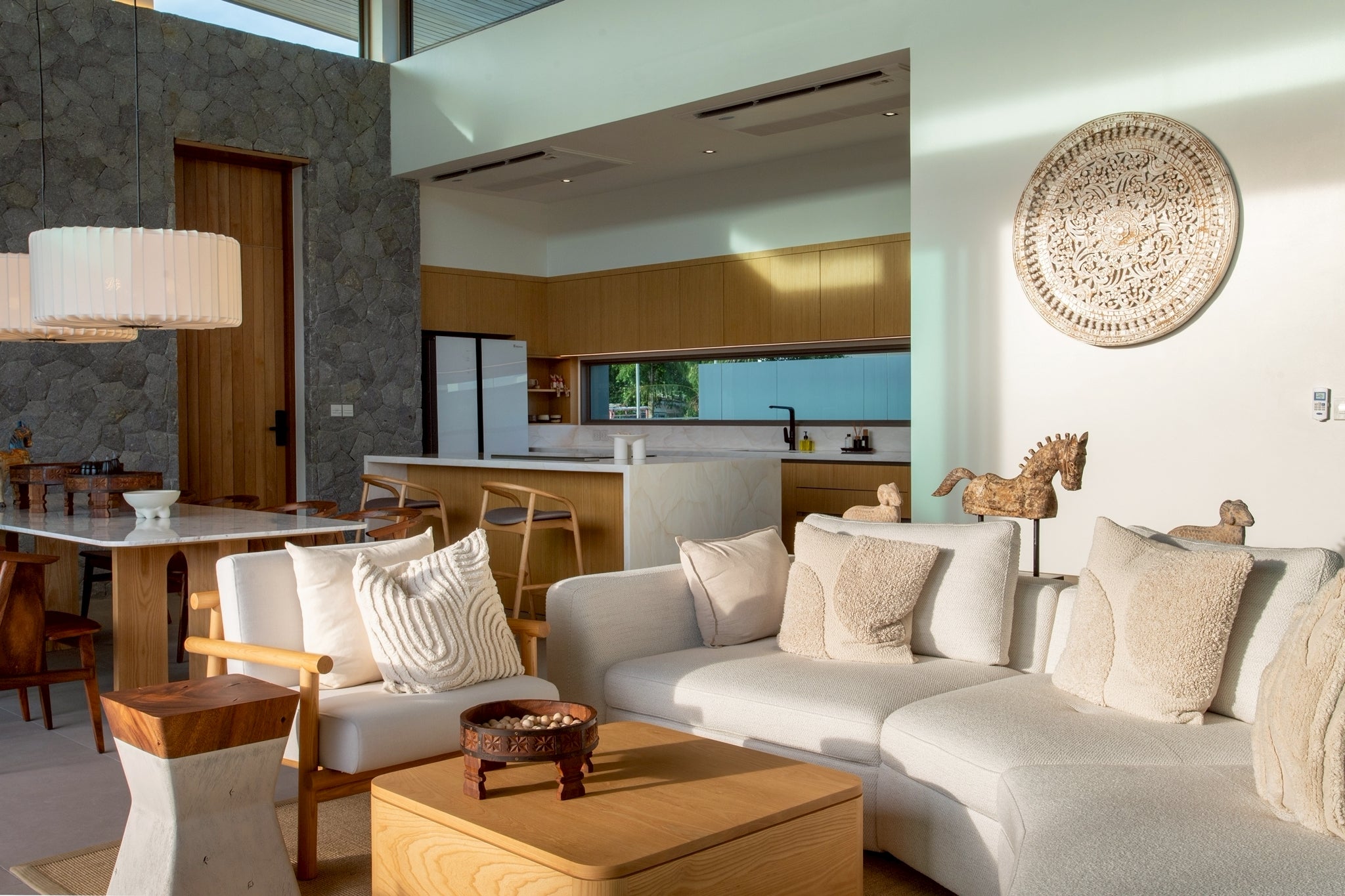 The villa’s amenities are designed to enhance the residents’ living experience. The integration of smart home systems provides modern conveniences, while the fully equipped kitchen caters to the culinary needs of even the most discerning homeowner. Built-in wardrobes add a touch of convenience, perfectly blending functionality with aesthetics. Poolside lounges, sundecks and gardens add charm to the outdoor spaces, creating a perfect balance between indoor and outdoor living. Stone accents add a touch of sophistication.