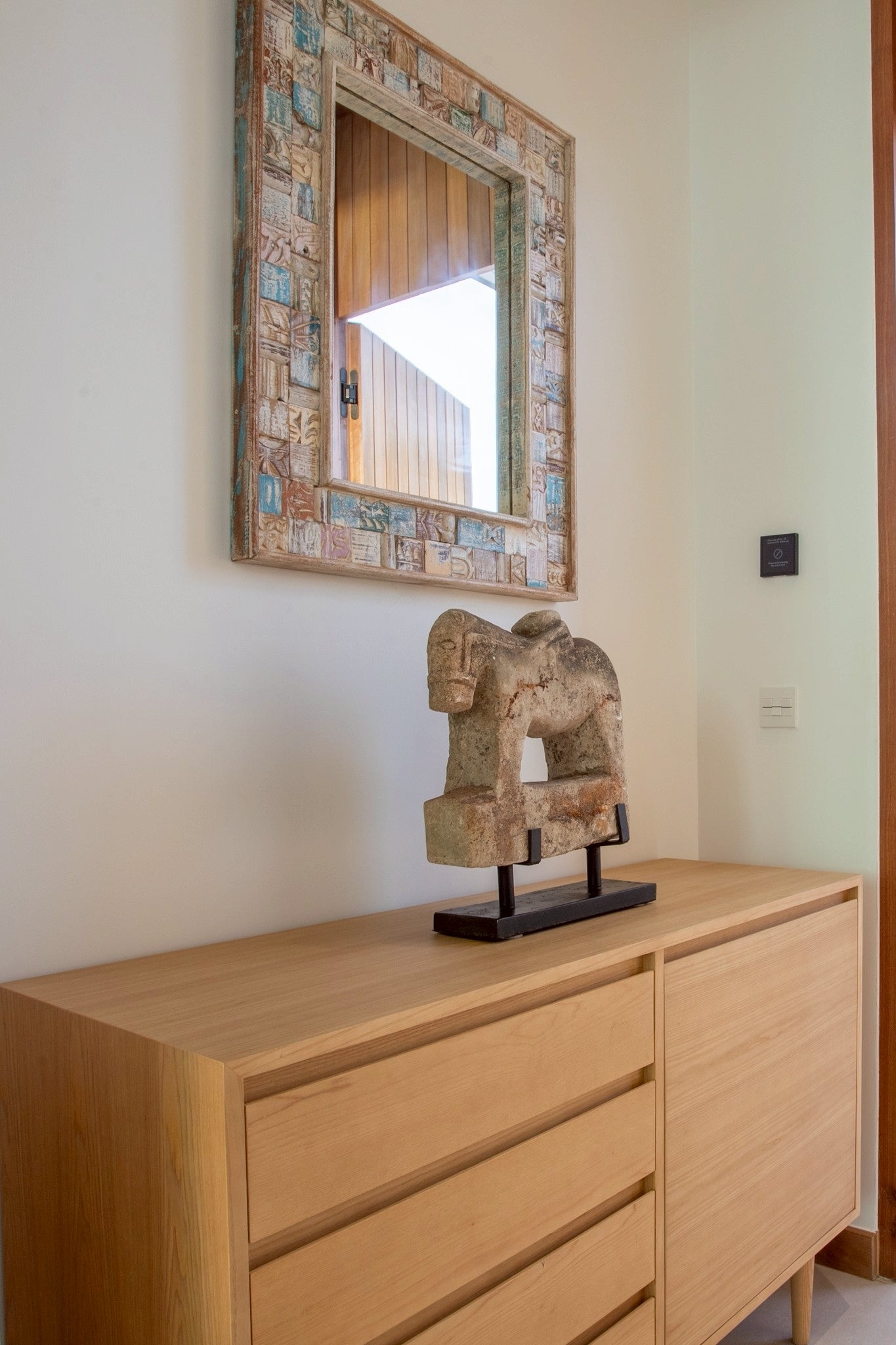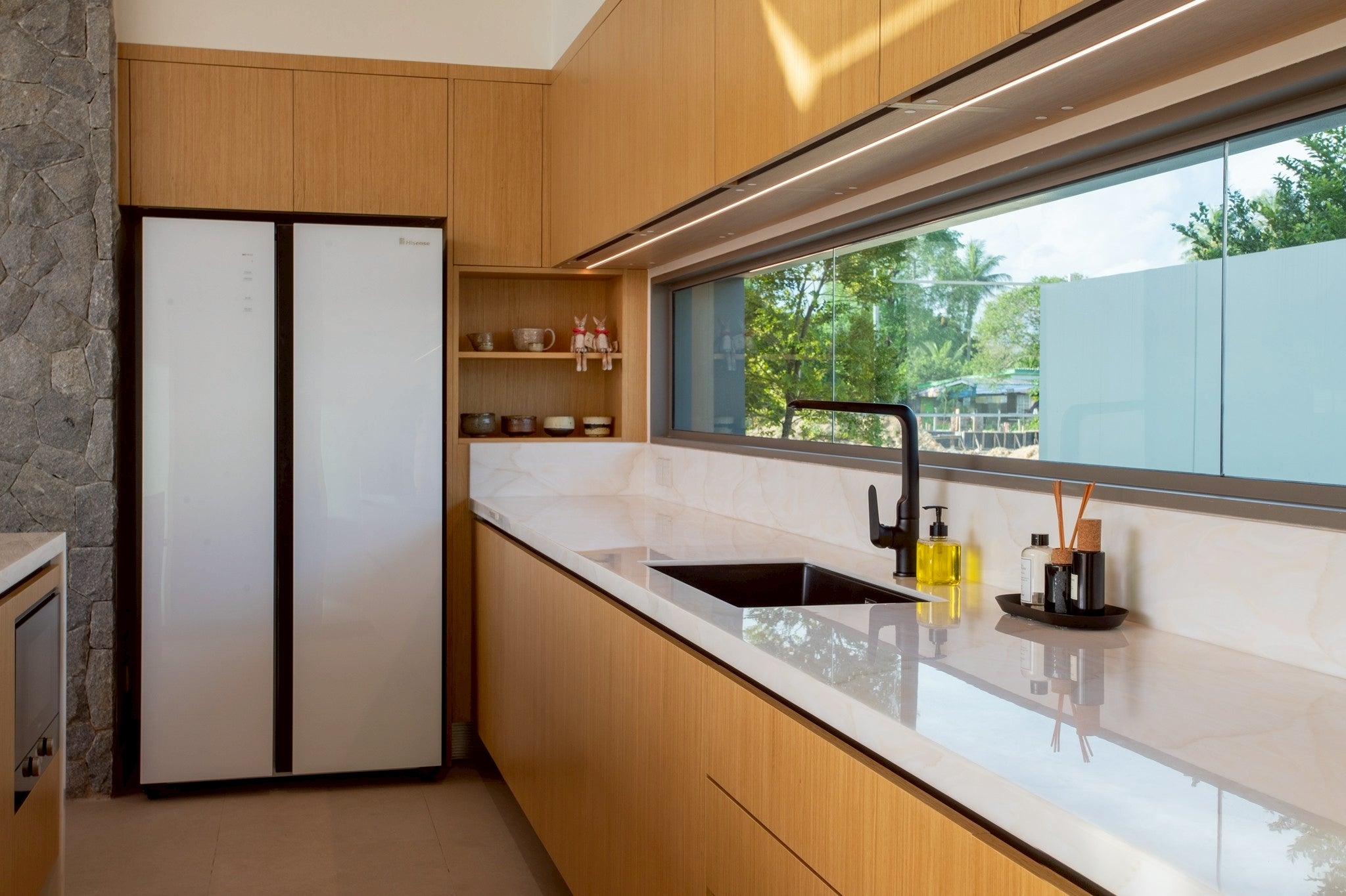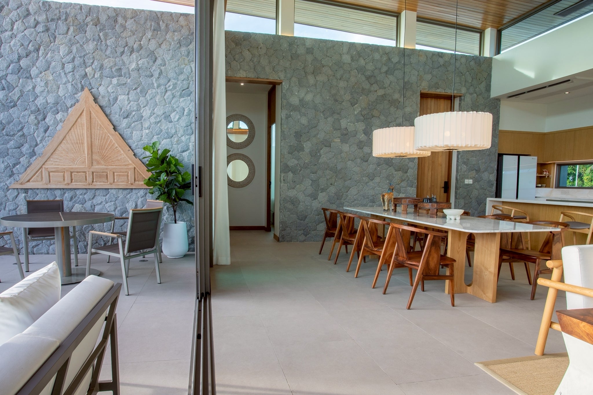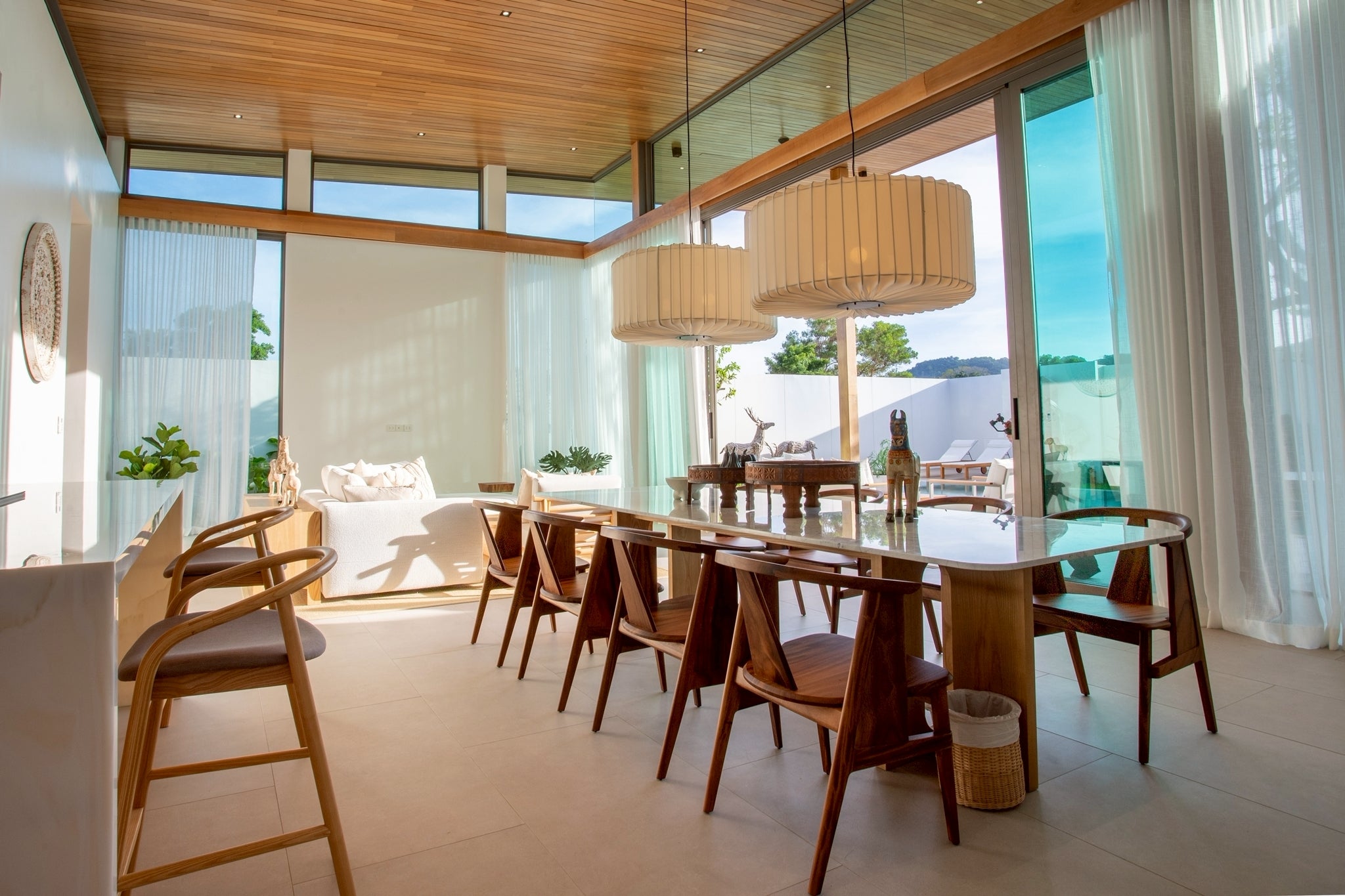 The villa’s amenities are designed to enhance the residents’ living experience. The integration of smart home systems provides modern conveniences, while the fully equipped kitchen caters to the culinary needs of even the most discerning homeowner. Built-in wardrobes add a touch of convenience, perfectly blending functionality with aesthetics. Poolside lounges, sundecks and gardens add charm to the outdoor spaces, creating a perfect balance between indoor and outdoor living. Stone accents add a touch of sophistication.