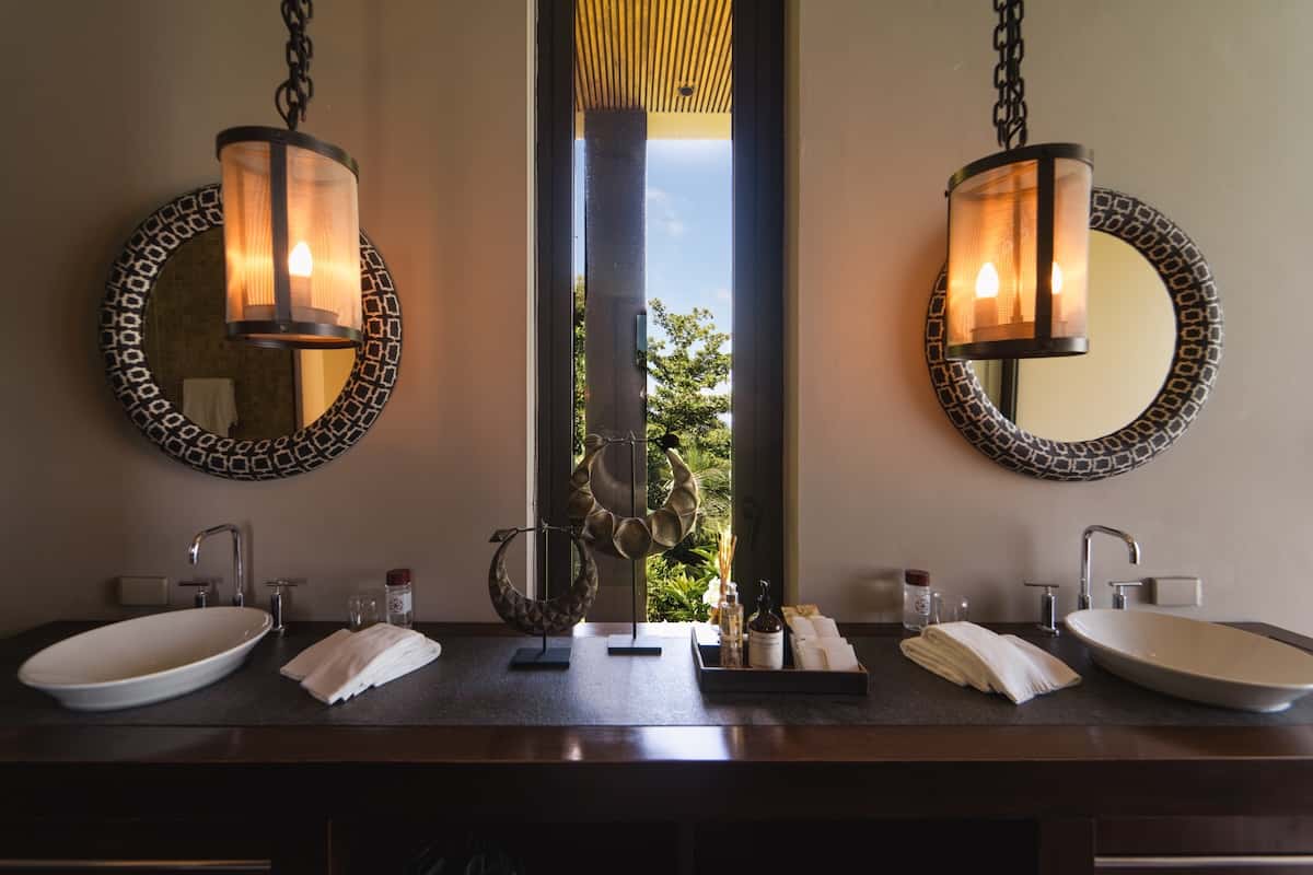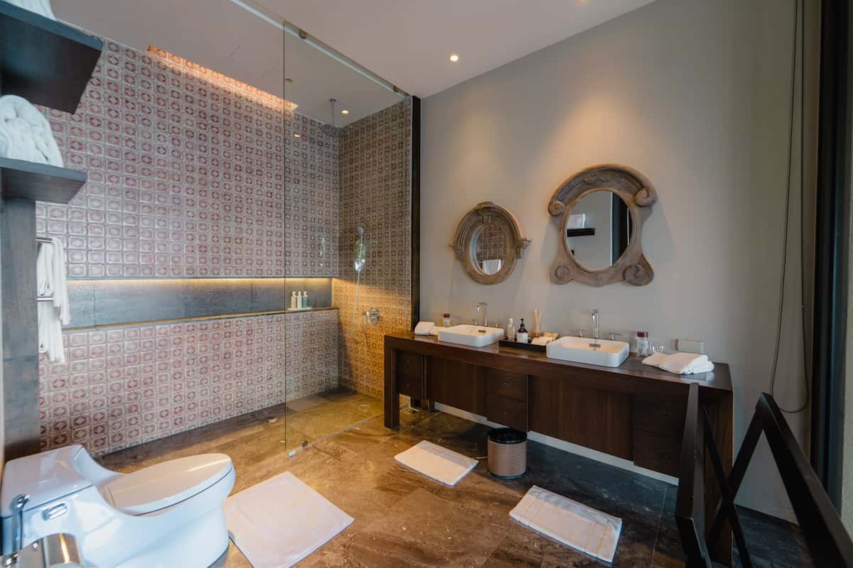 All five bedrooms in Villa are designed to offer the ultimate in luxury and comfort. With wooden floors and ceiling-high glass sliding doors, each room opens onto a private balcony—some with stunning sea views, others with tranquil garden vistas. Every suite is uniquely decorated, featuring spacious Moroccan-tiled ensuite bathrooms with double vanities.