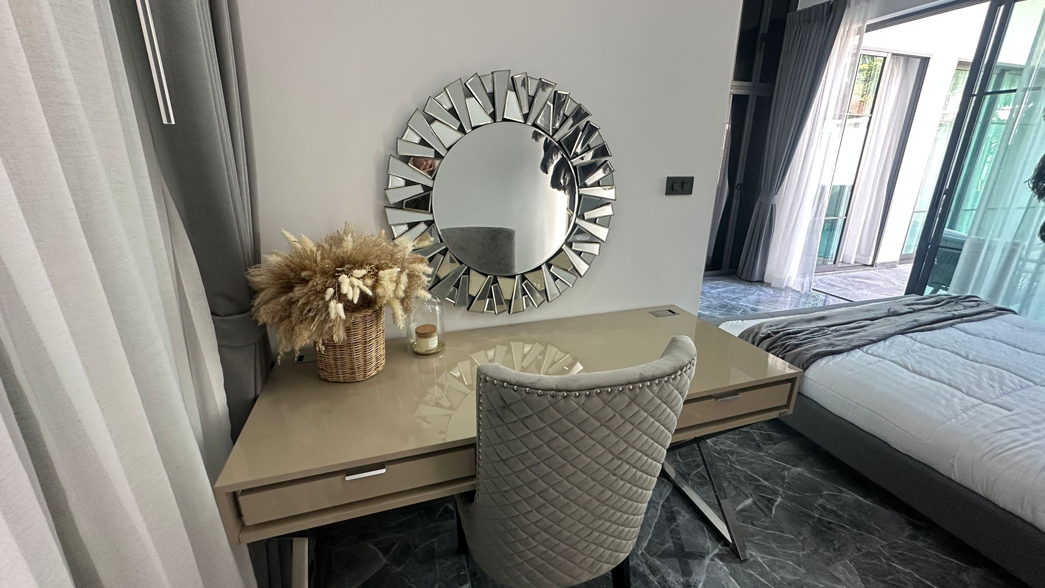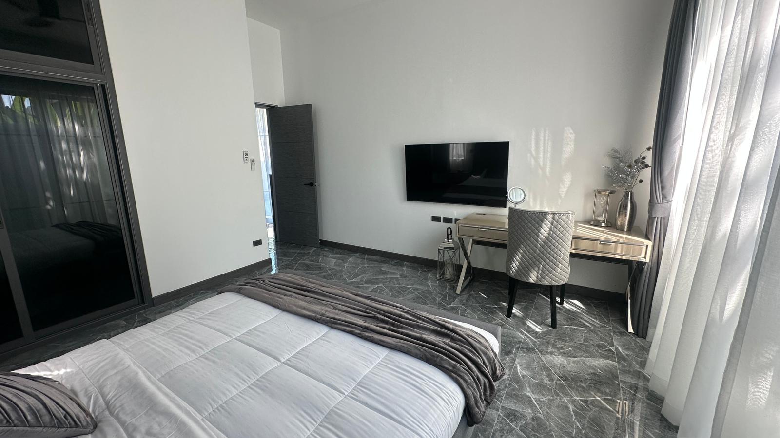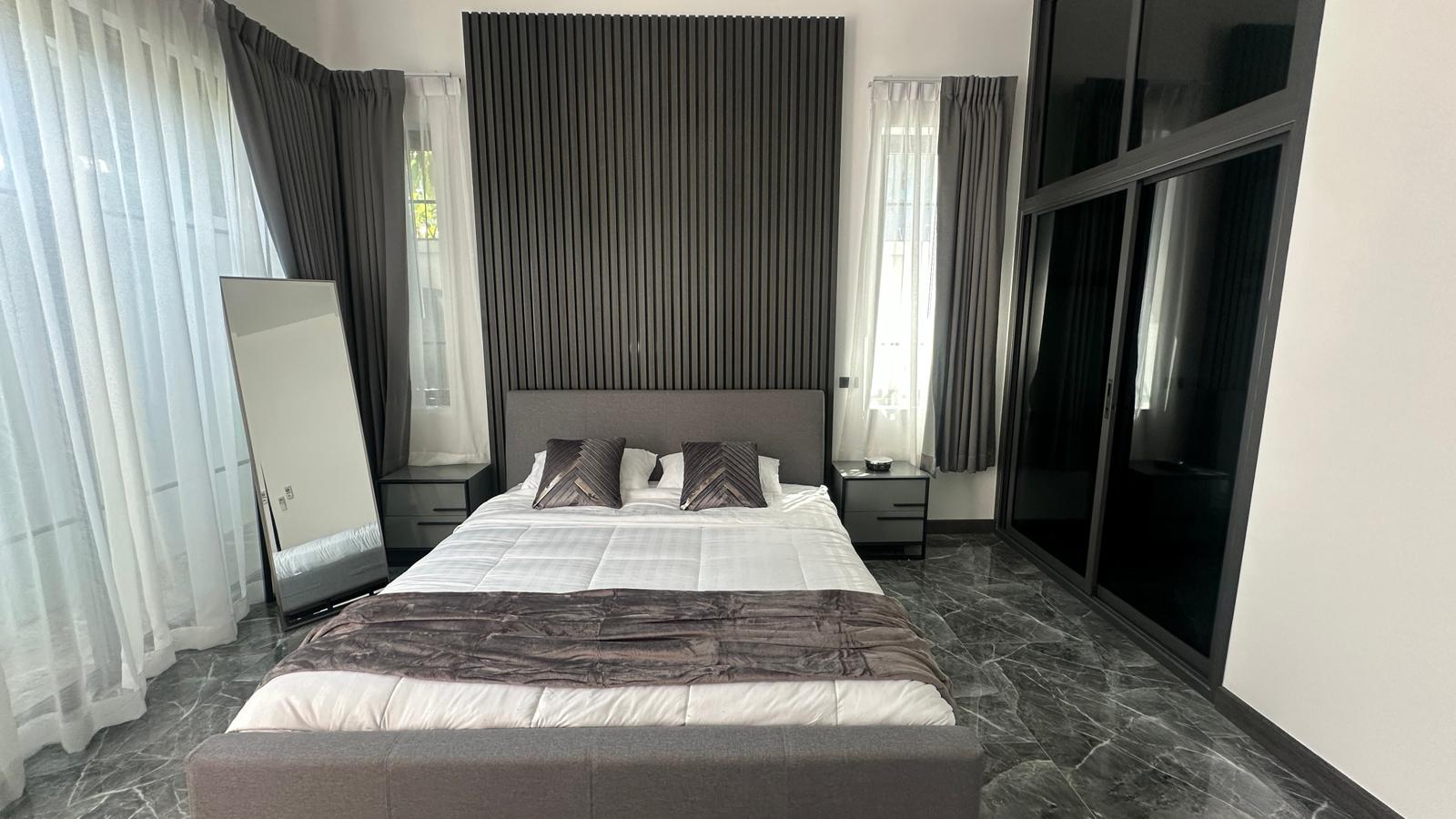This modern villa in Rawai, Soi Tokdum, just 7 minutes from Nai Harn Beach, sits on a 200 sqm plot with 129 sqm of living space. Ready to move in, it includes built-in furniture and comes fully furnished with elegant modern fittings, a Western-style kitchen, two bedrooms, two bathrooms, and a spacious living room.