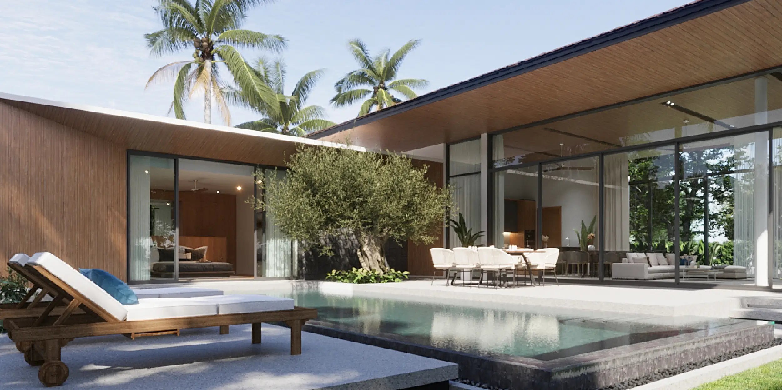 Experience new beginnings, joy, and optimism. The design reflects a harmonious blend of simplicity and beauty inspired by the Zen style. Infused with the warmth of the season, the space exudes tranquility and seamlessly connects with nature. Natural wood is thoughtfully incorporated into the design, and the open-plan layout is emphasized, creating a serene atmosphere complemented by lush green gardens that mimic a secluded oasis.