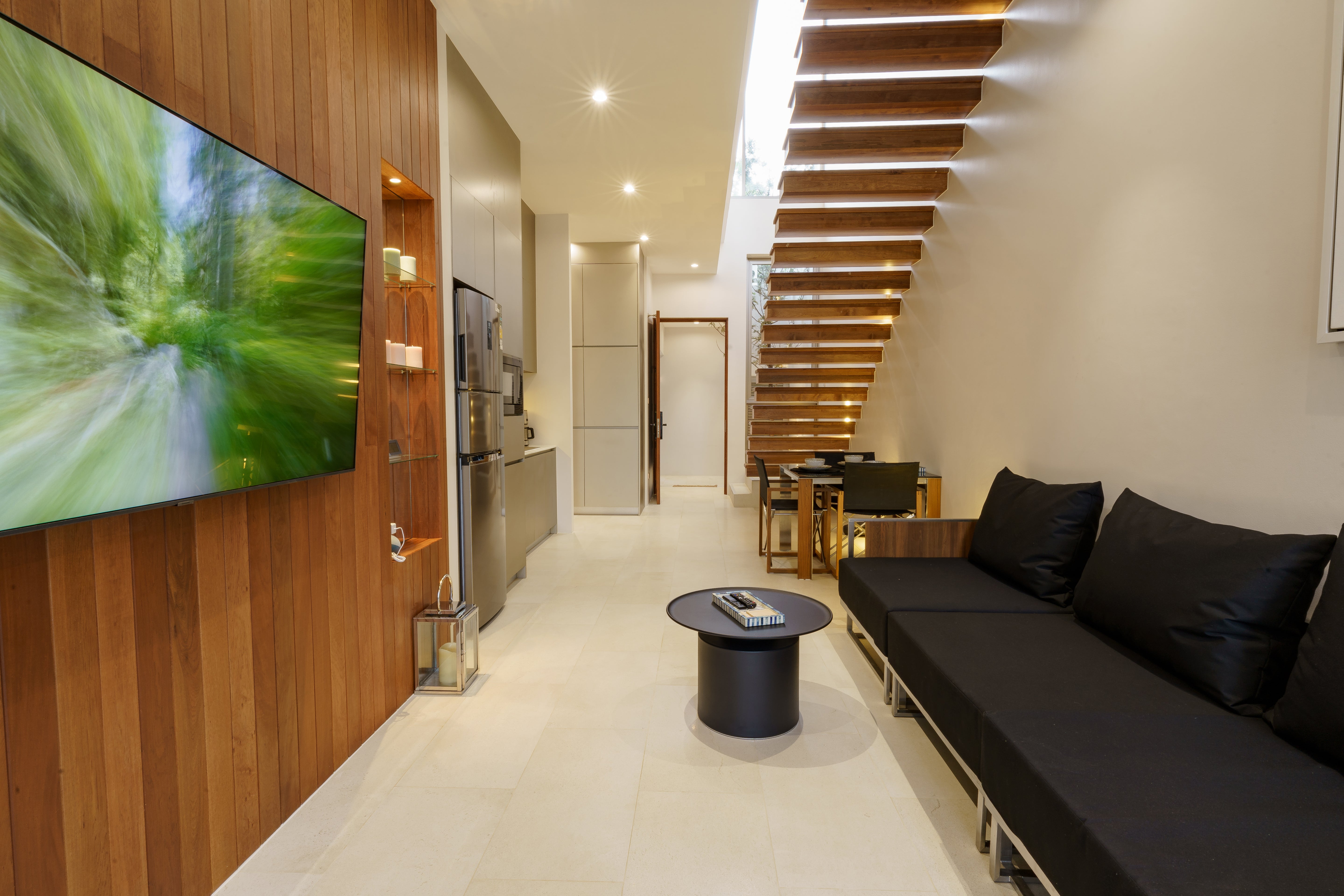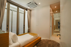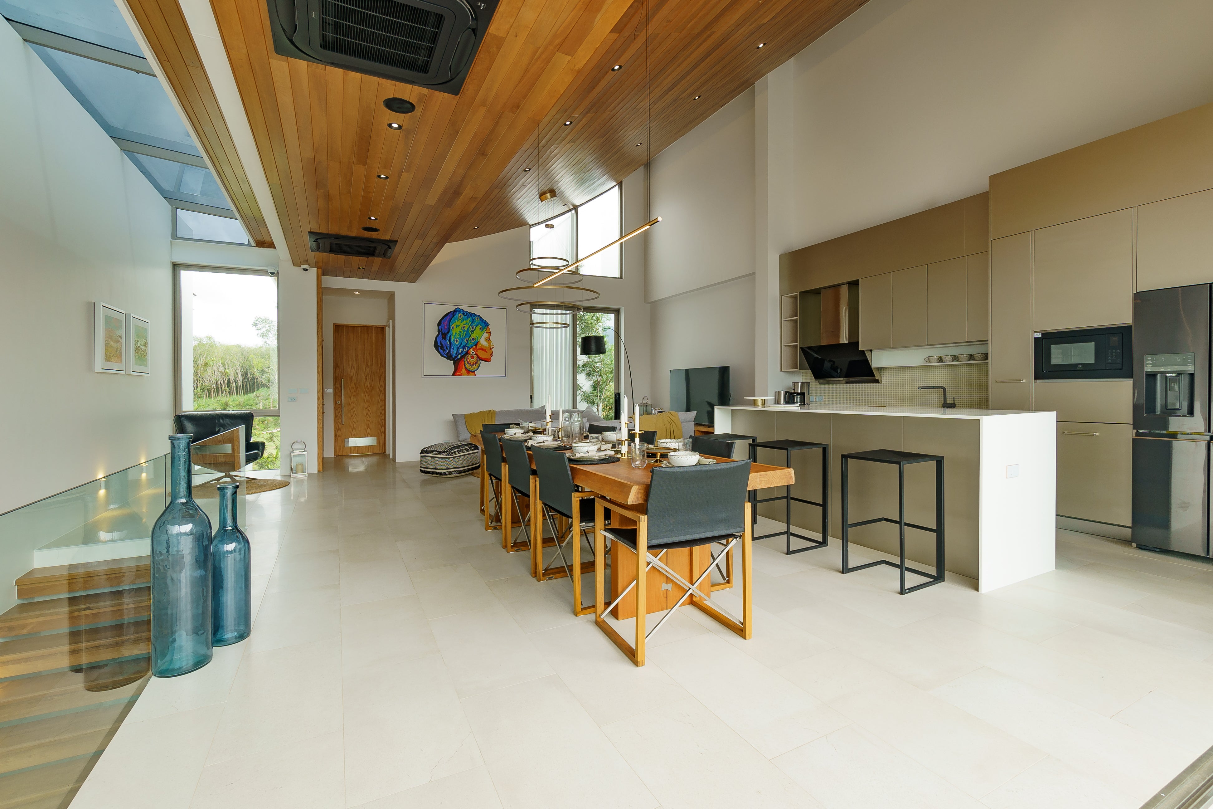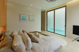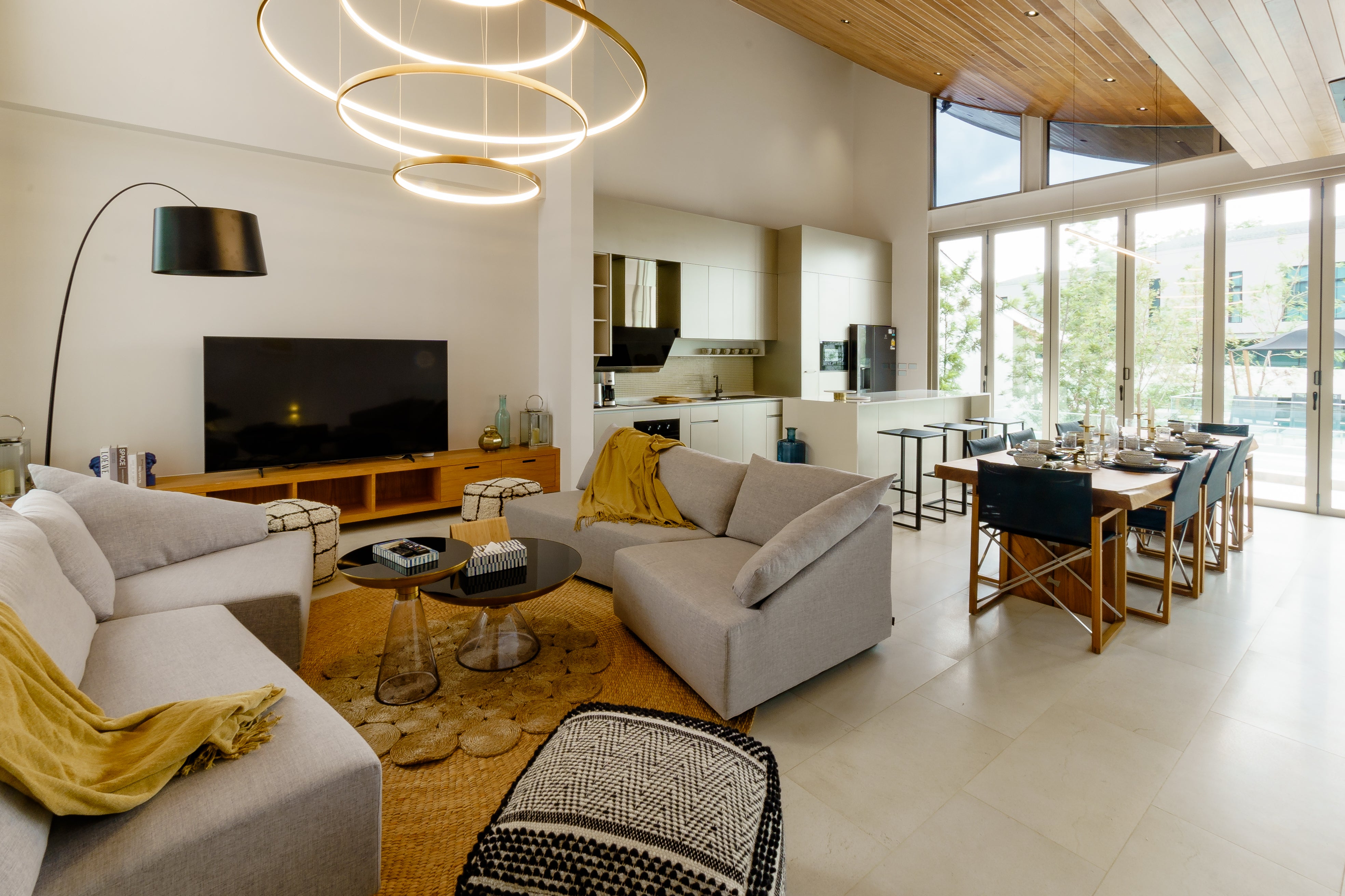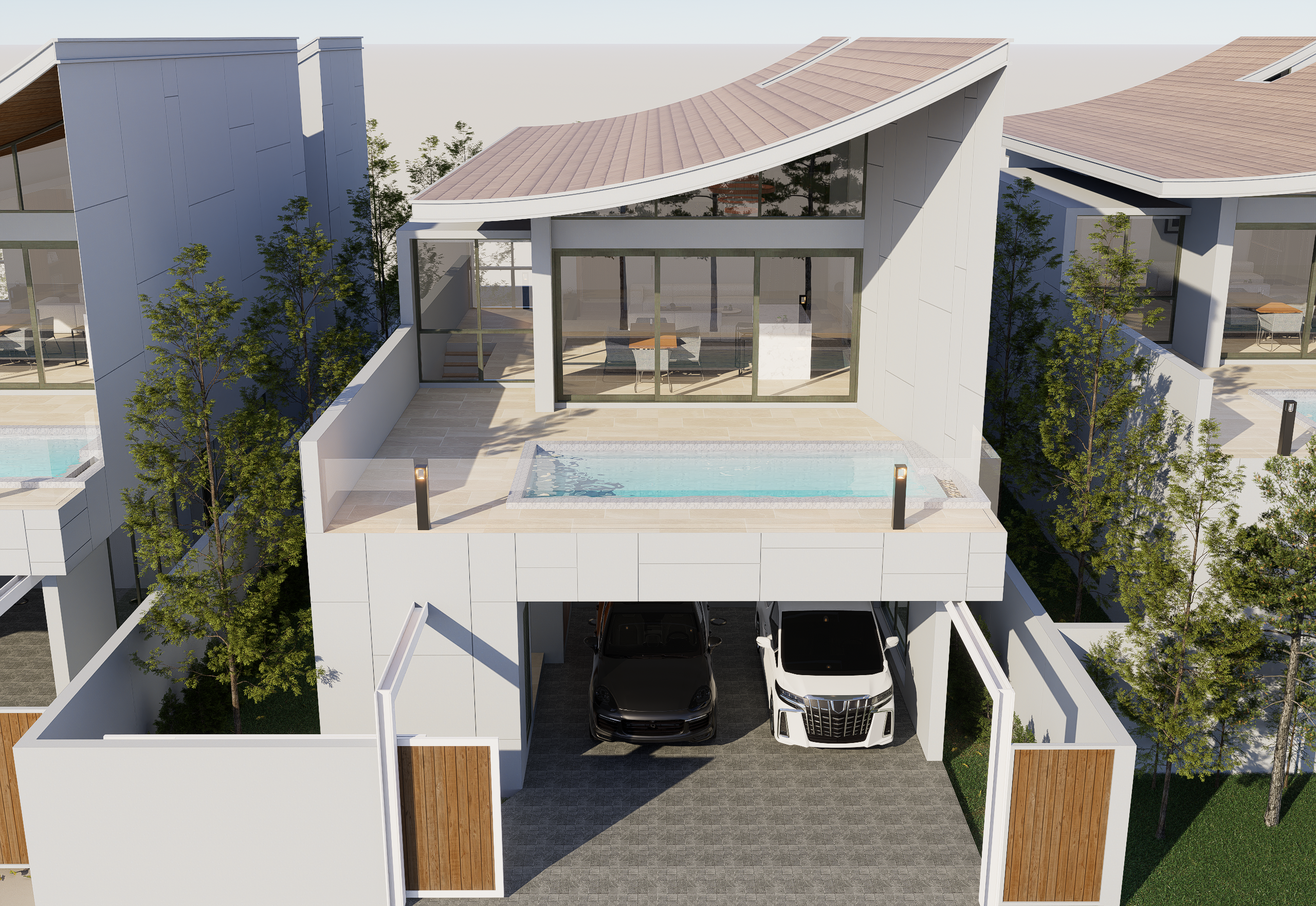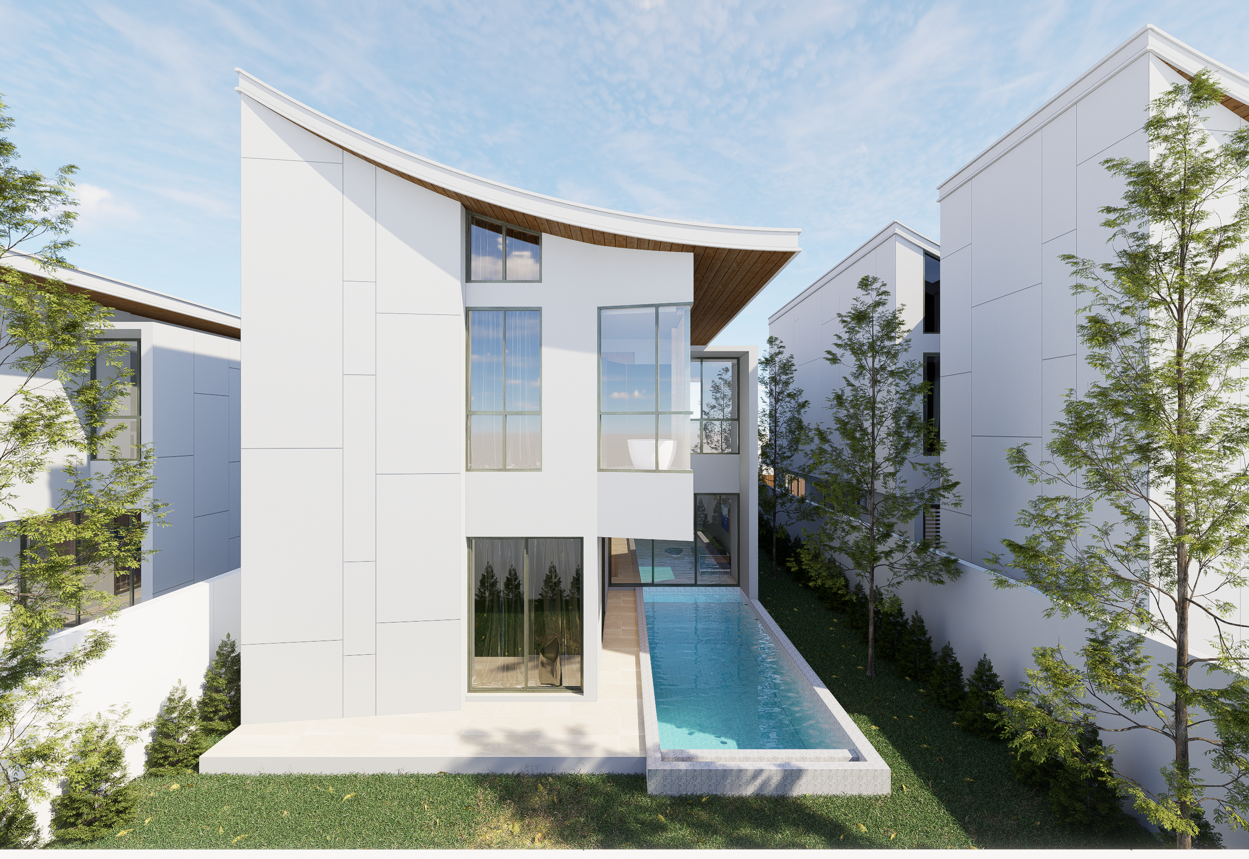Village is a stylish modern contemporary pool villa that combines elements of modernism, minimalism, and Art Deco, creating a harmonious blend of luxury, tranquility, and nature. With its unique curved roof design, spacious living areas, and high ceilings, the villa offers an open, airy space ideal for family gatherings and entertaining.
