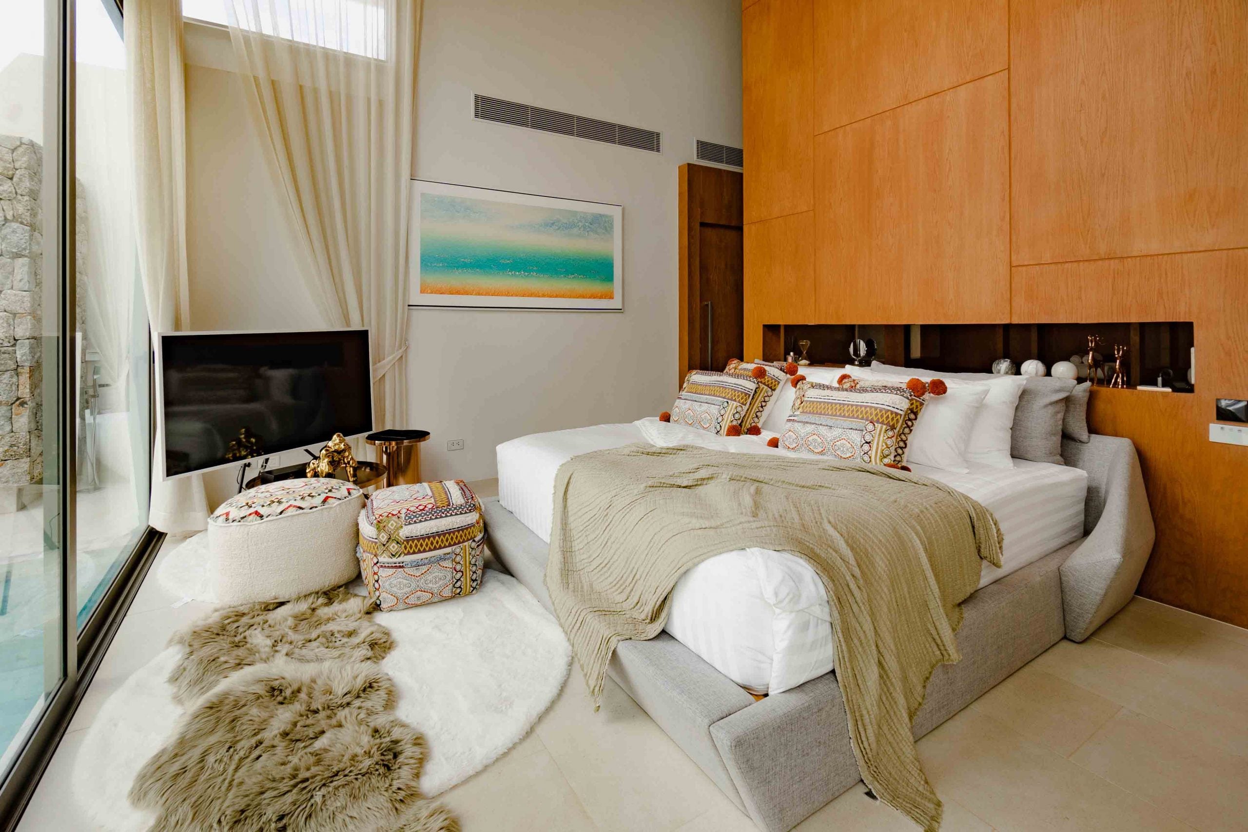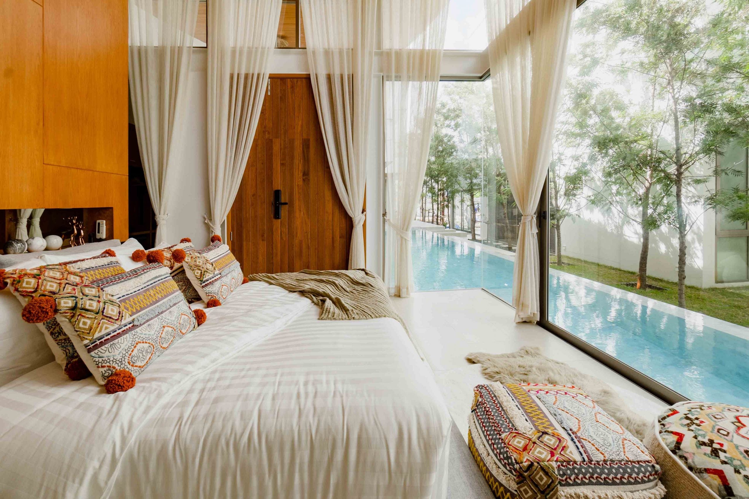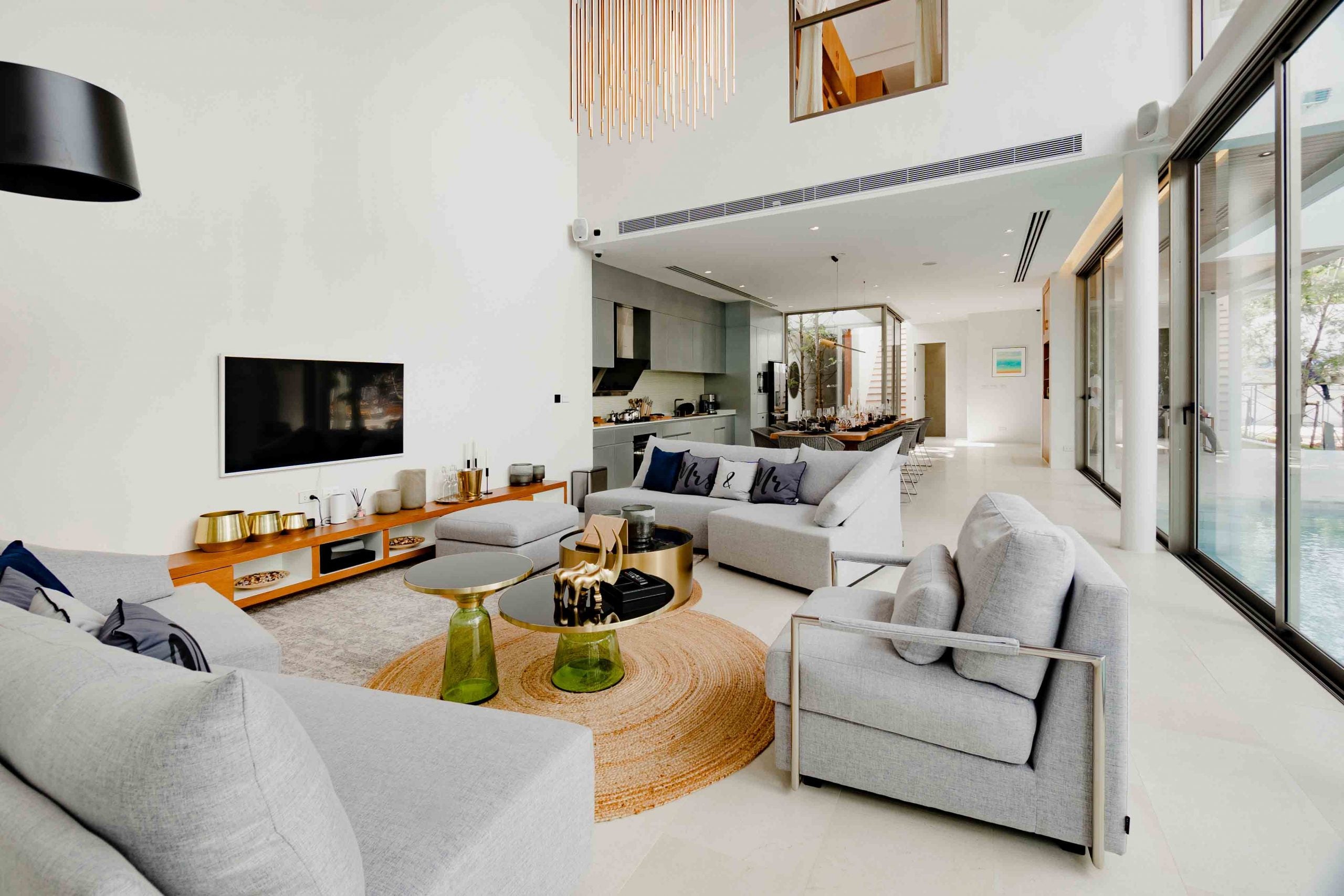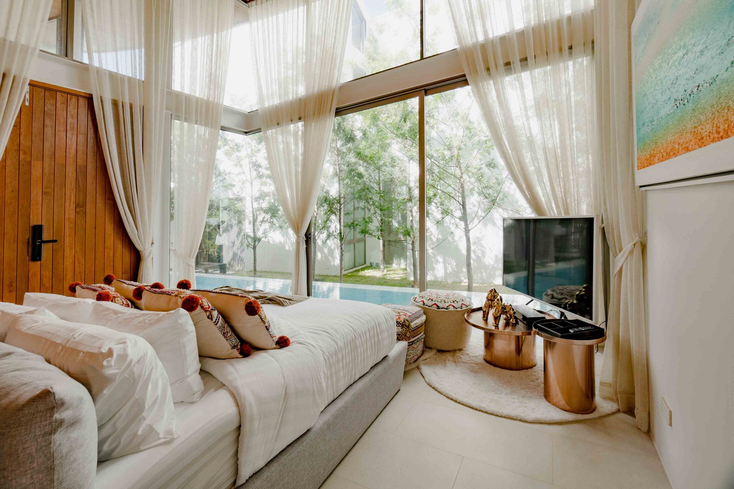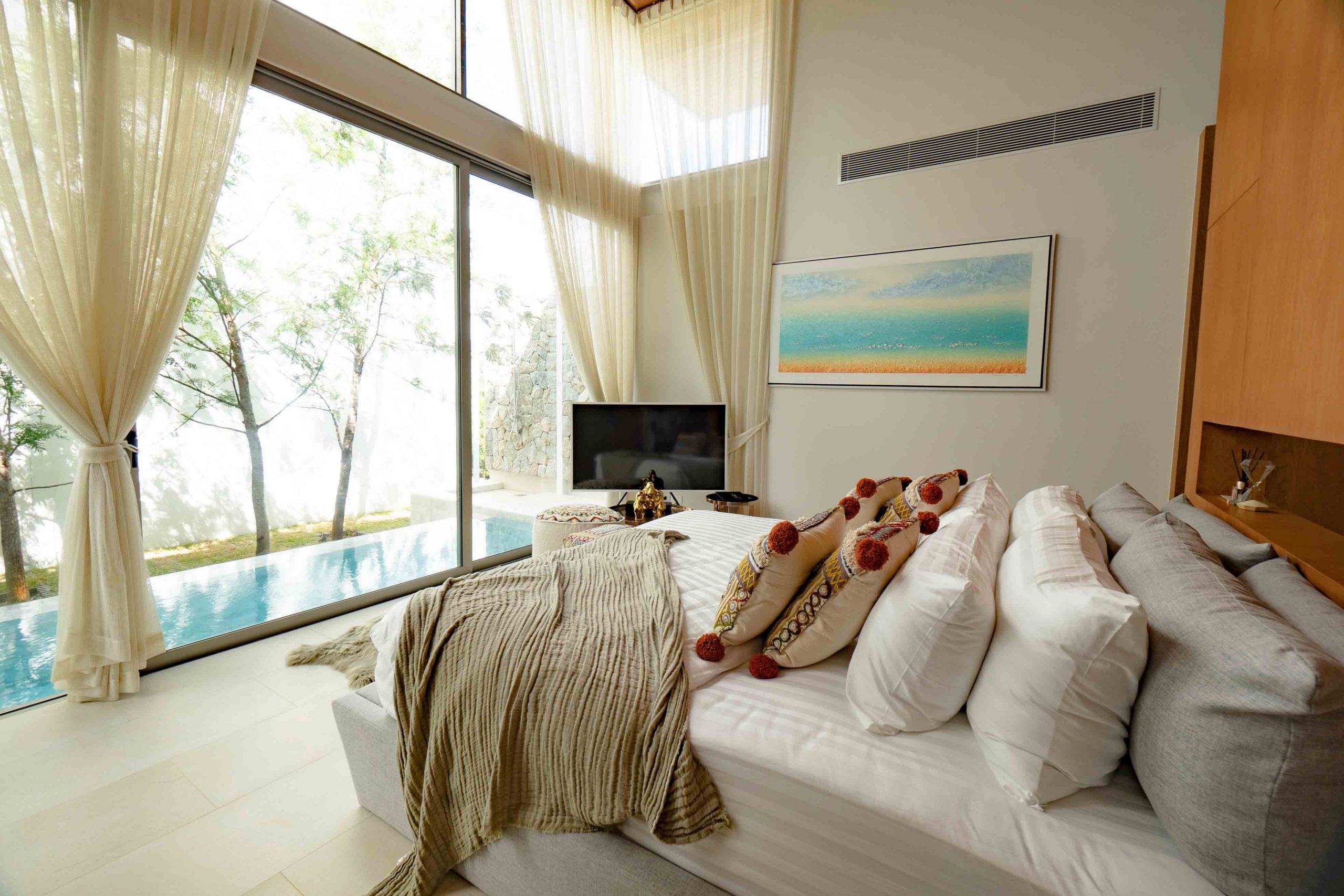 This modern contemporary pool villa blends modernism, minimalism, and Art Deco to create a luxurious and serene living space. Featuring a distinctive curved roof, high ceilings, and floor-to-ceiling windows, the design emphasizes natural light, air circulation, and a connection to nature. Two floor plan options offer privacy and spacious layouts ideal for families.